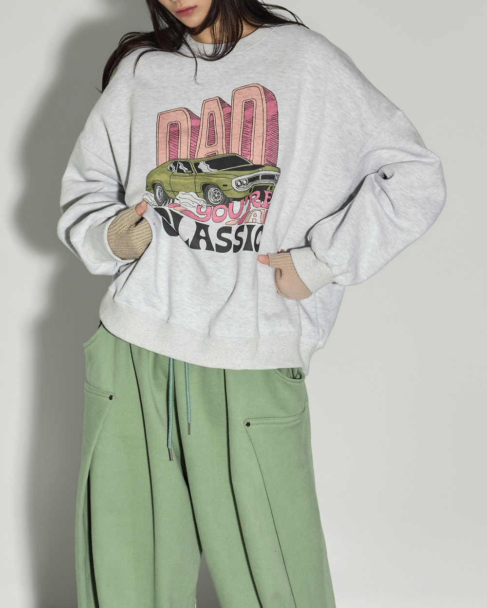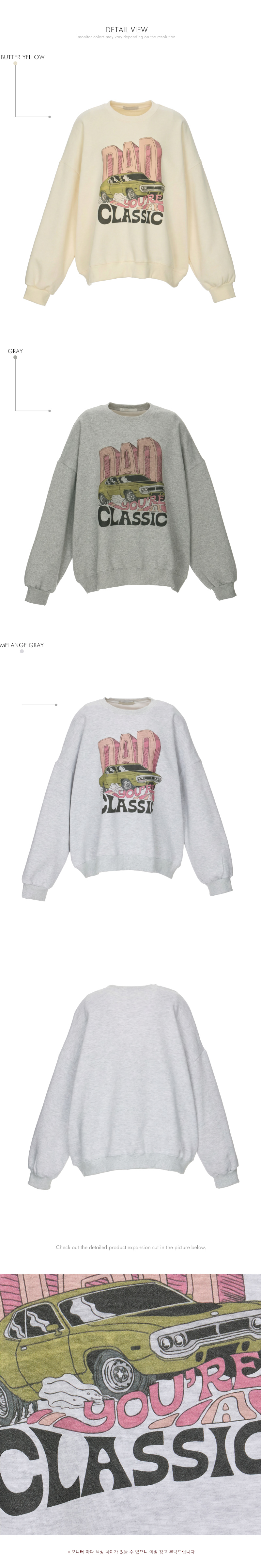 캐주얼한 무드의 기모 맨투맨입니다.