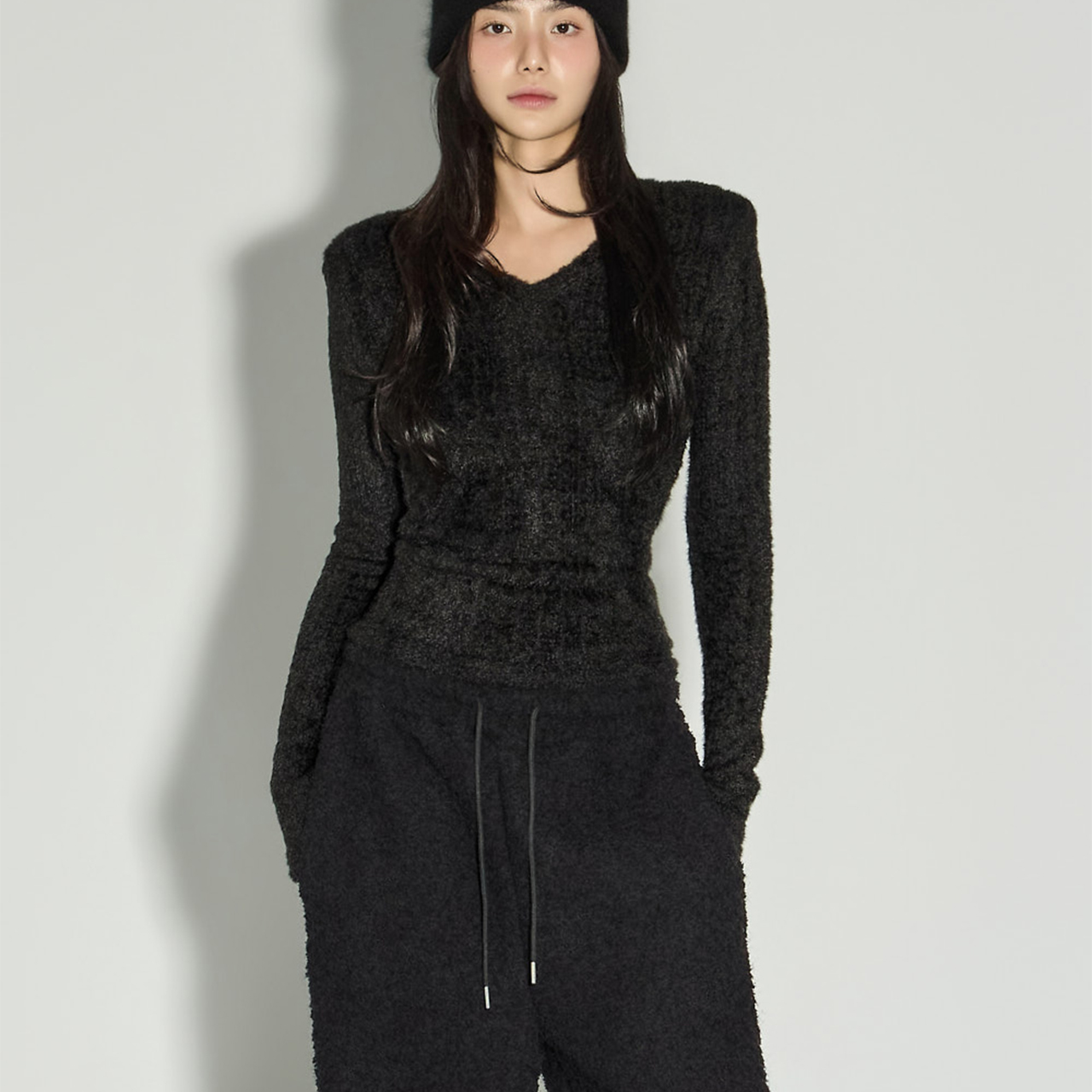 슬림한 핏의 브이넥 디자인이 목선과 쇄골 라인을