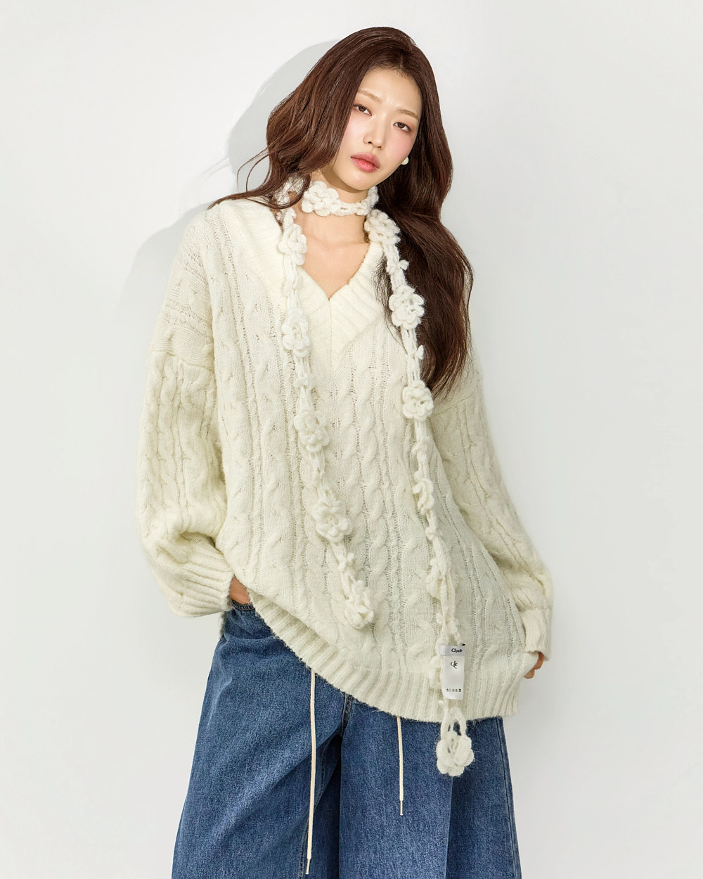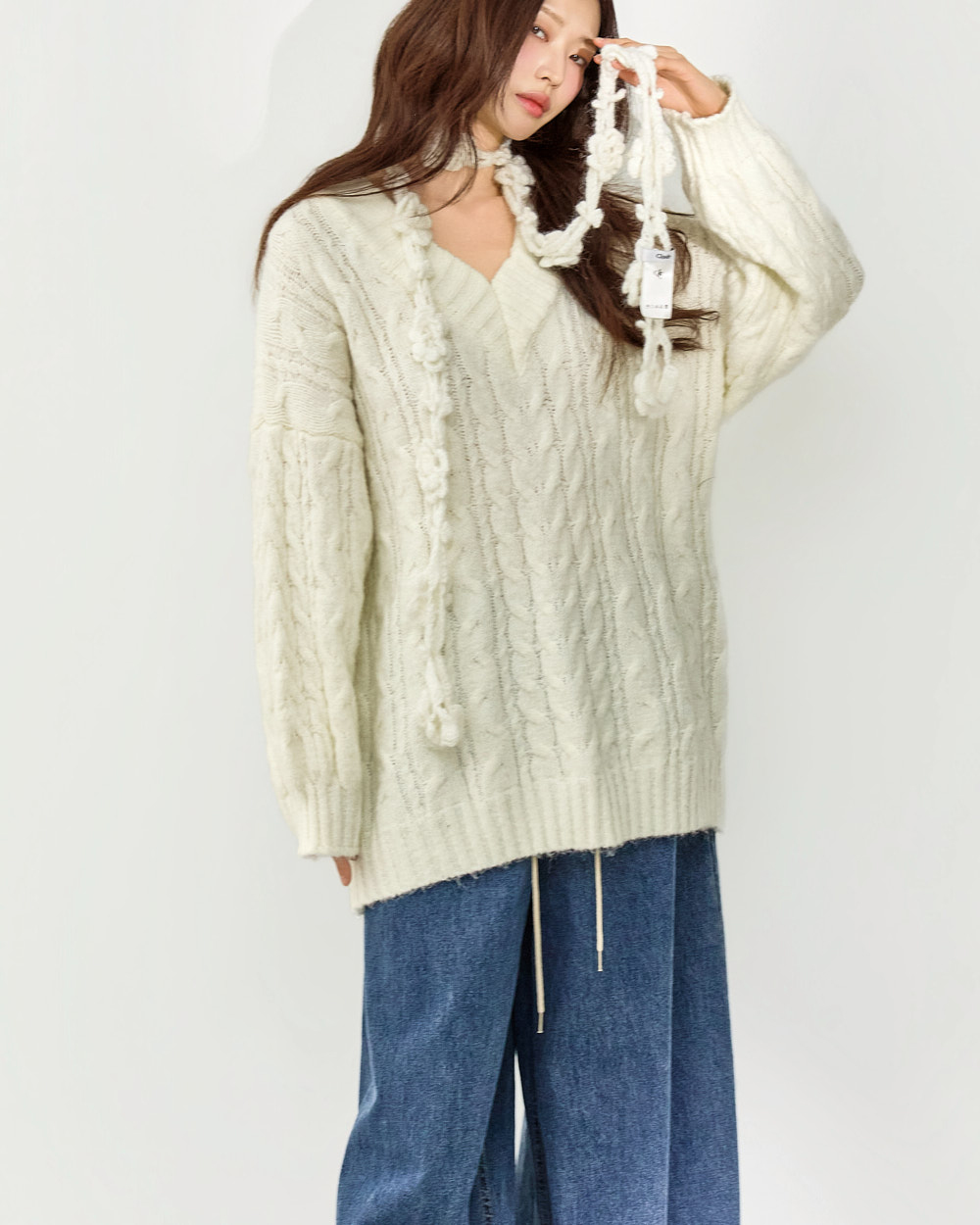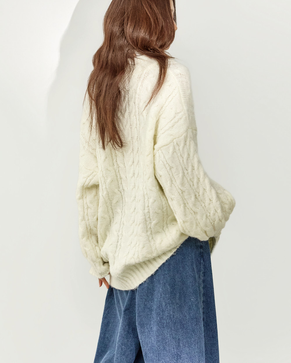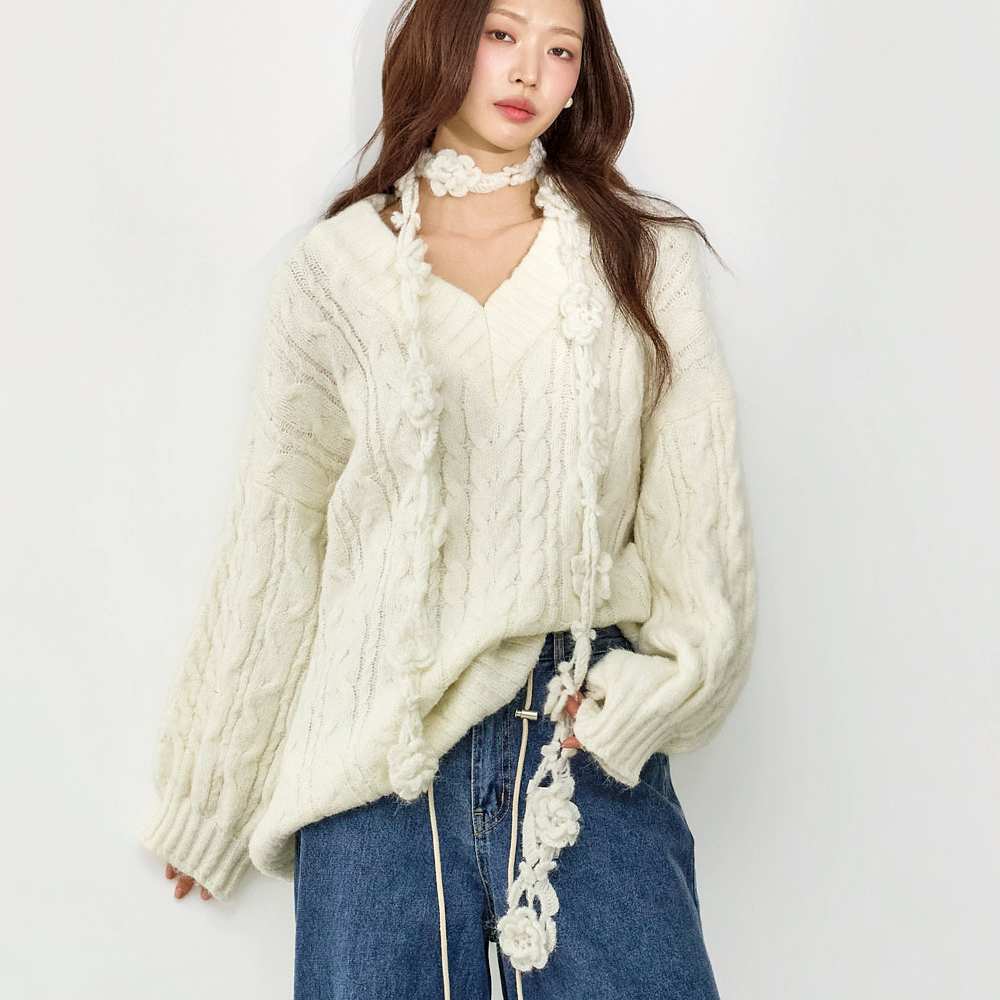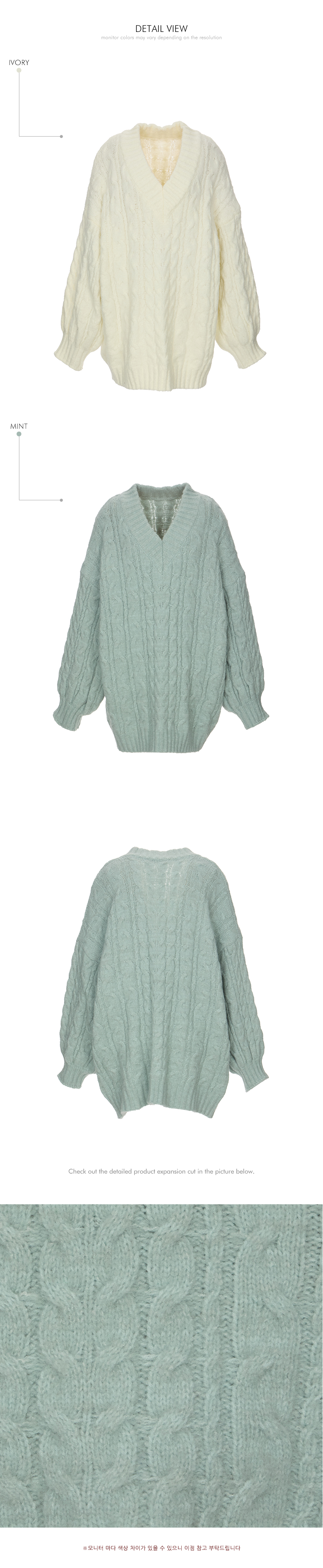 캐주얼 무드의 케이블 브이넥 니트입니다.