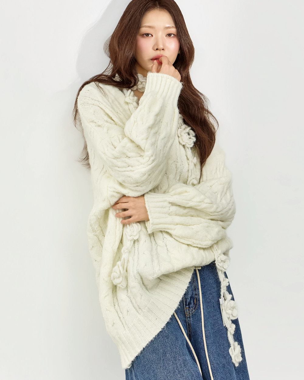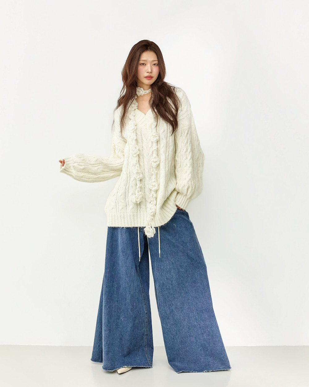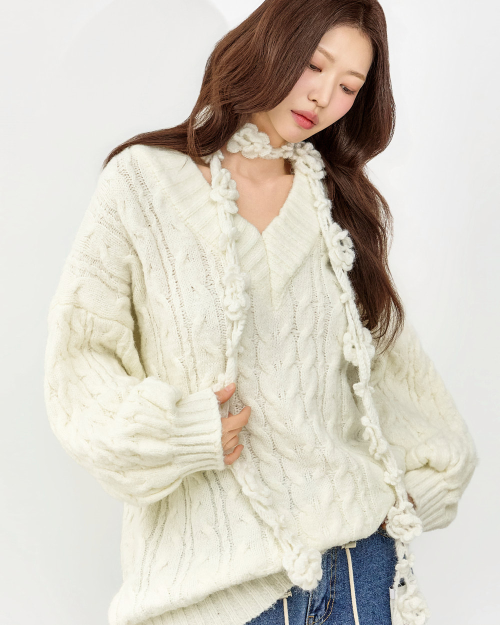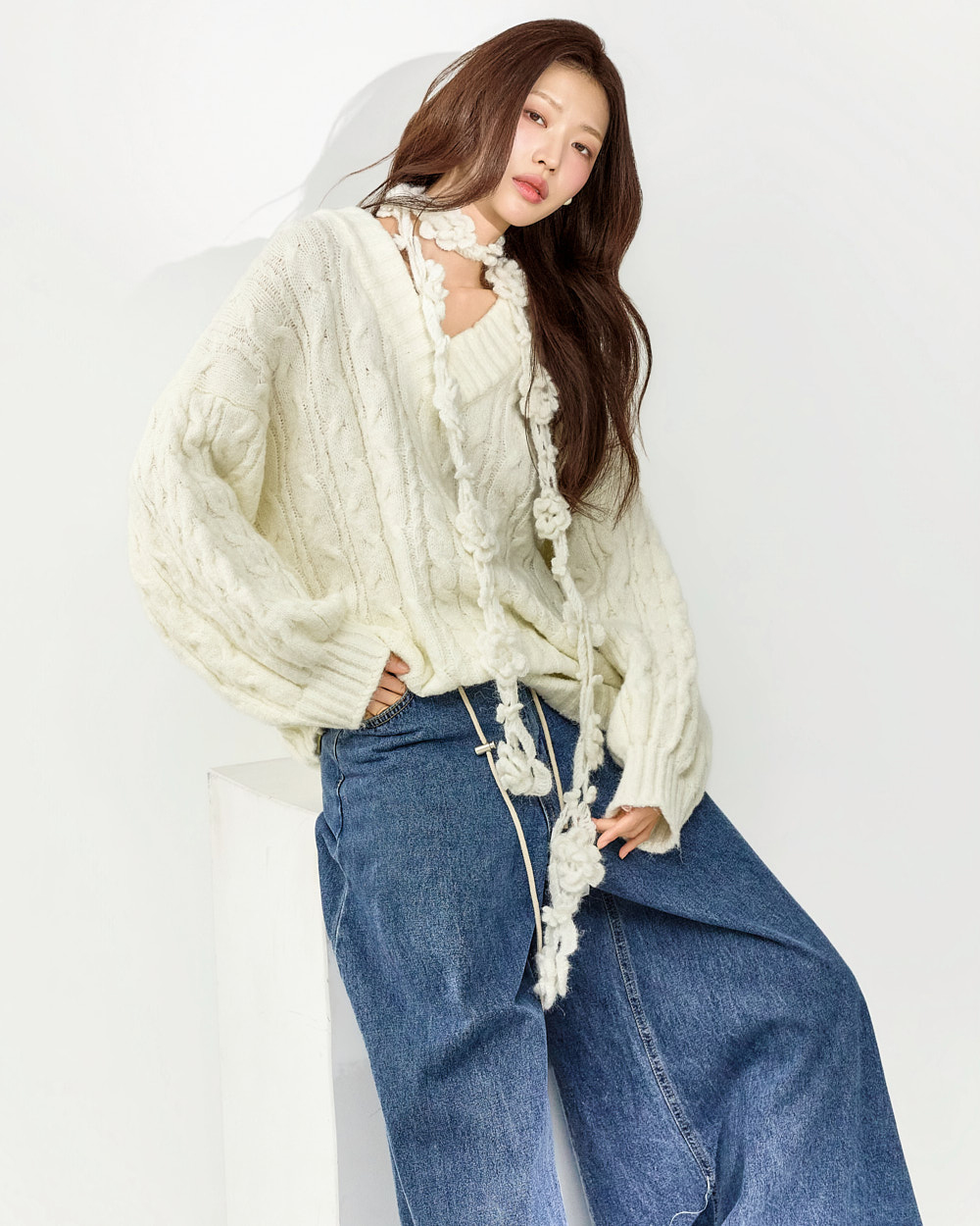 캐주얼 무드의 케이블 브이넥 니트입니다.