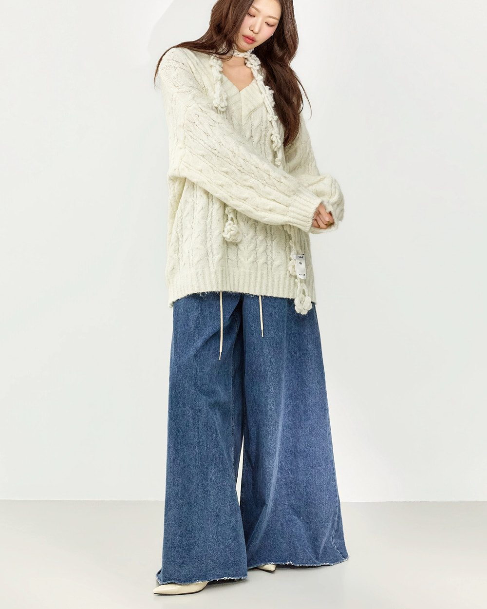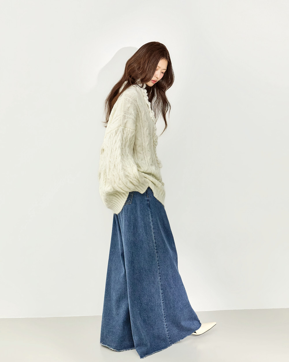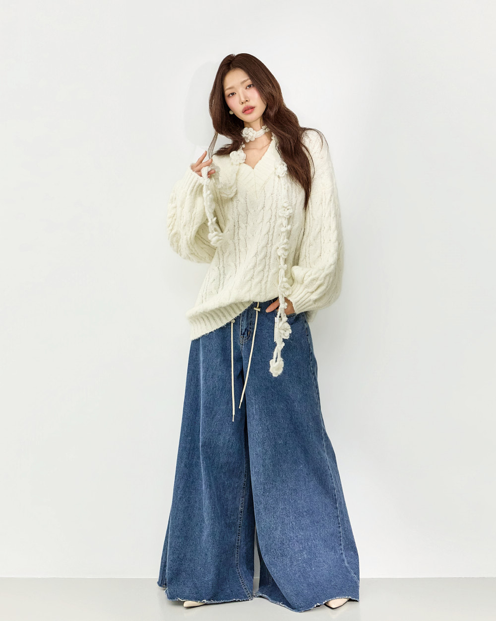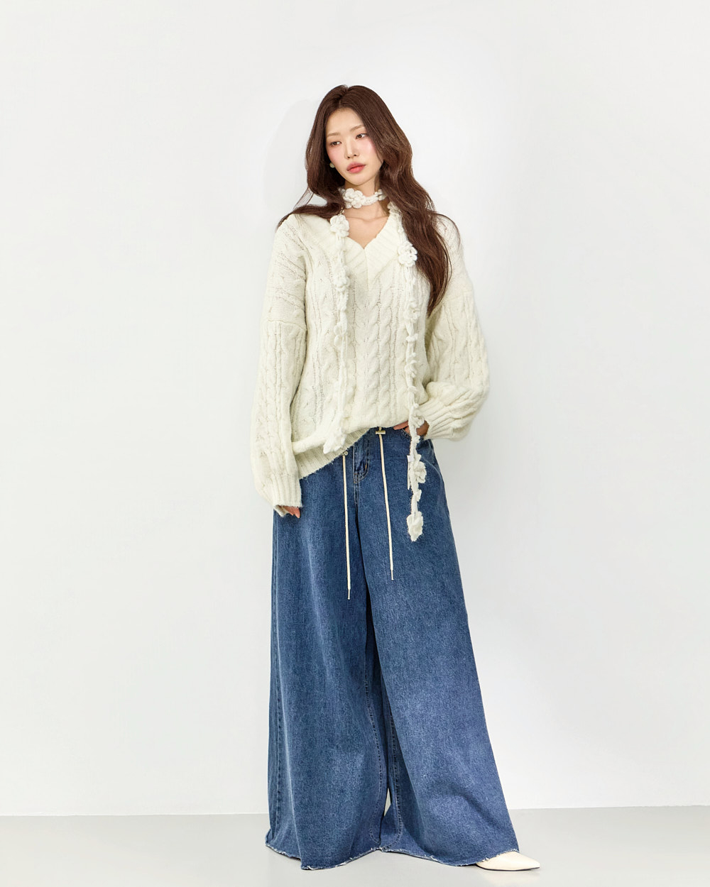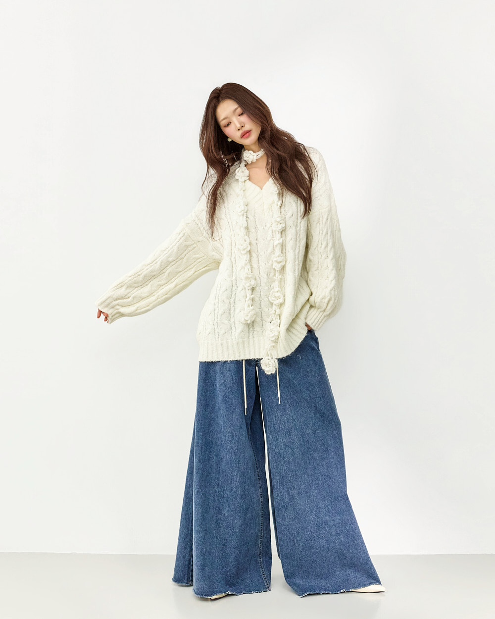 캐주얼 무드의 케이블 브이넥 니트입니다.