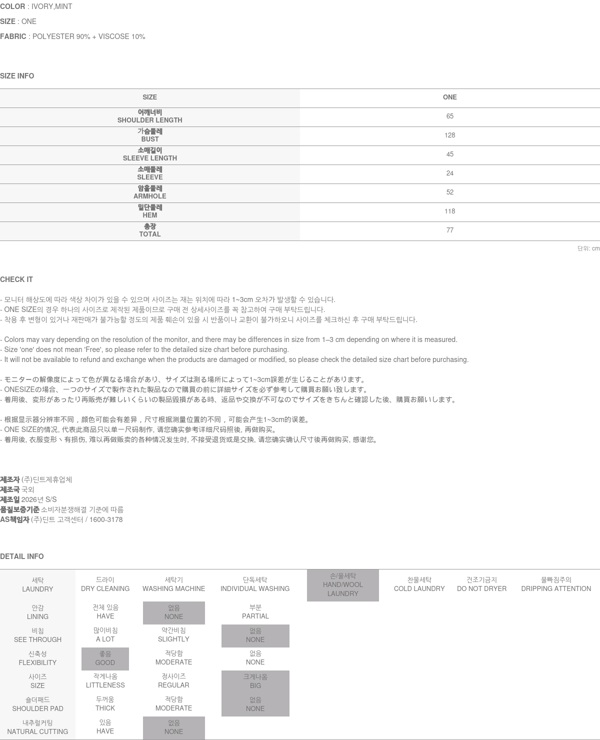 171CM 모델 ONE 사이즈, IVORY 컬러 착용하였습니다.