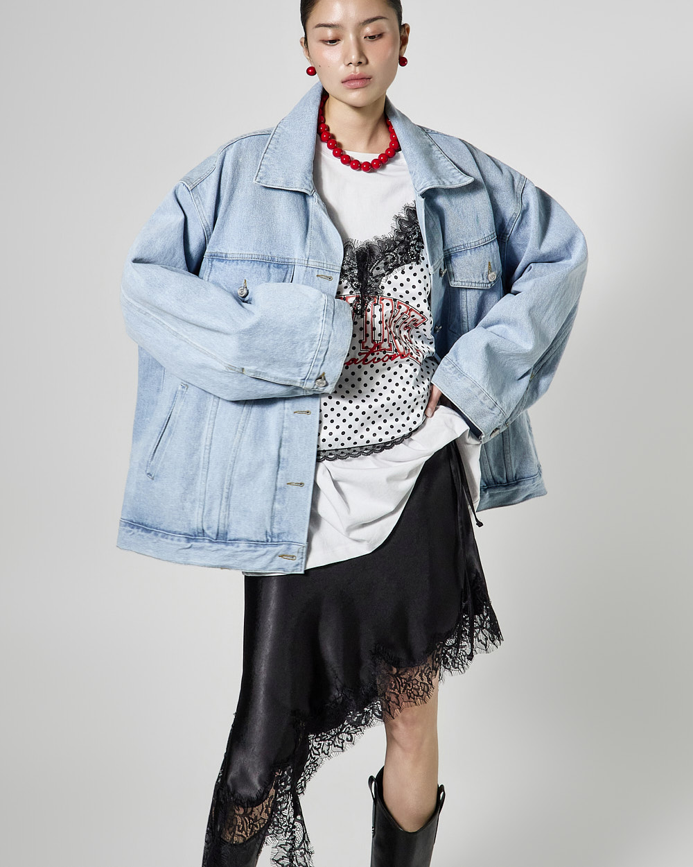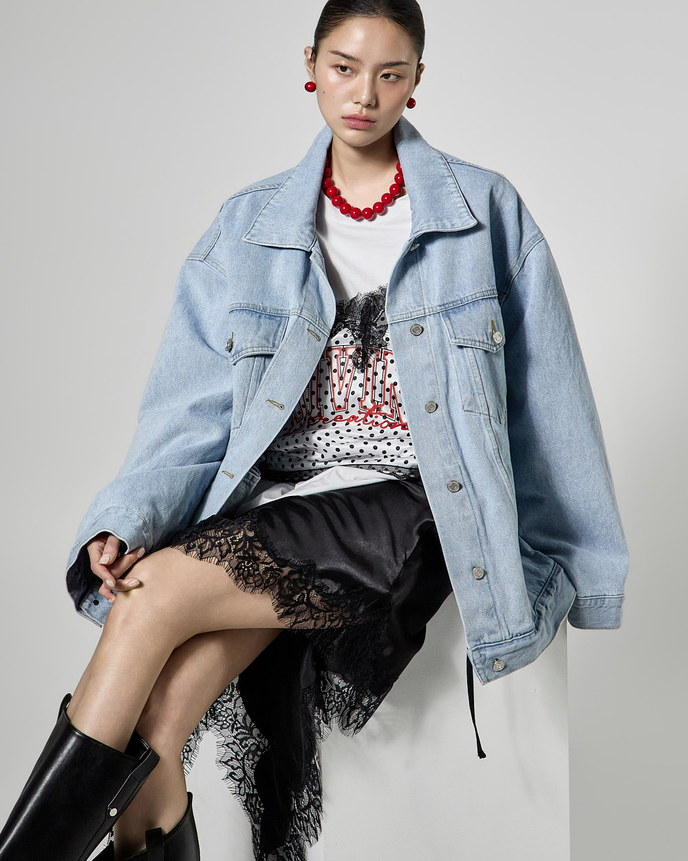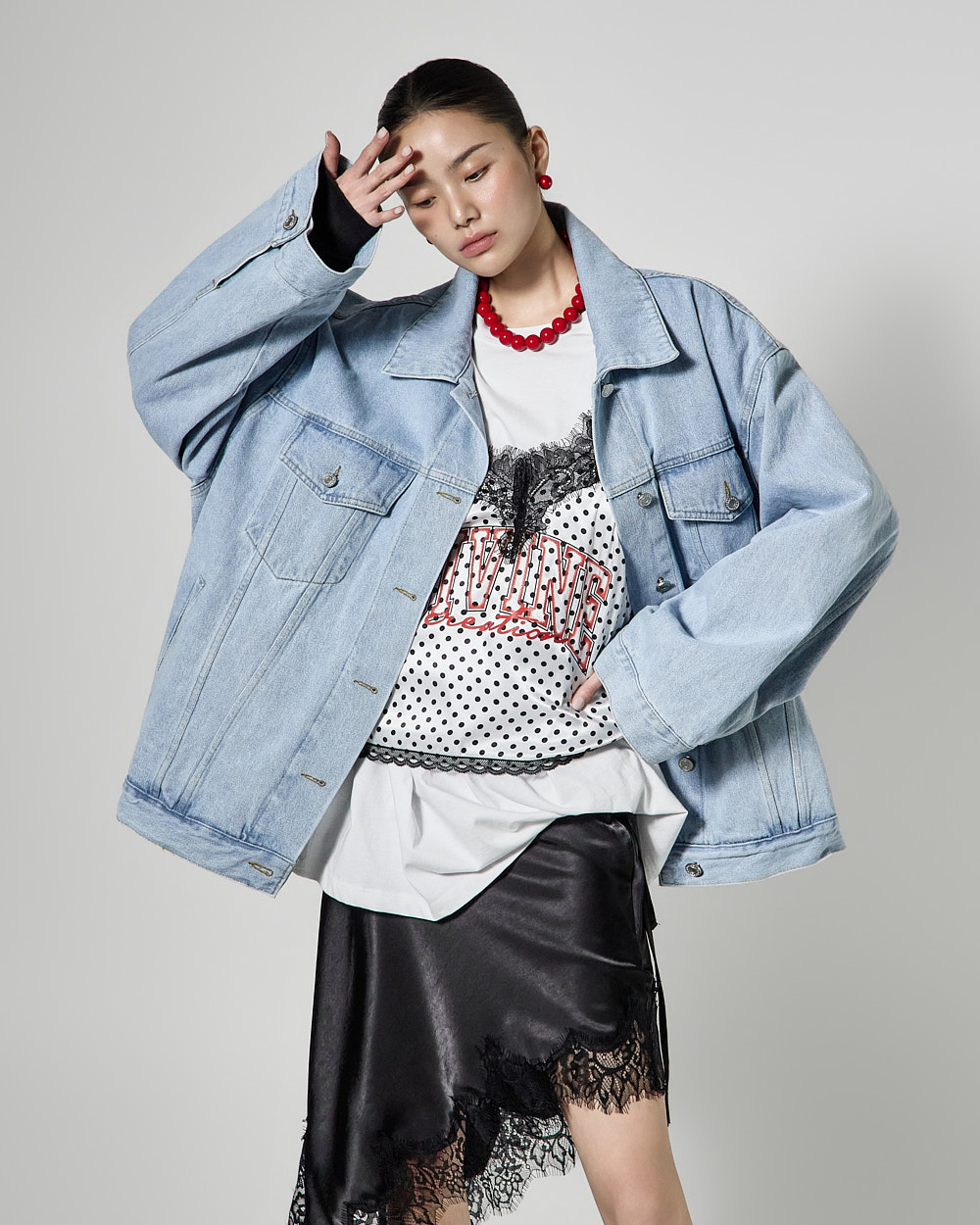 캐주얼 무드의 라이트 데님 자켓입니다.
