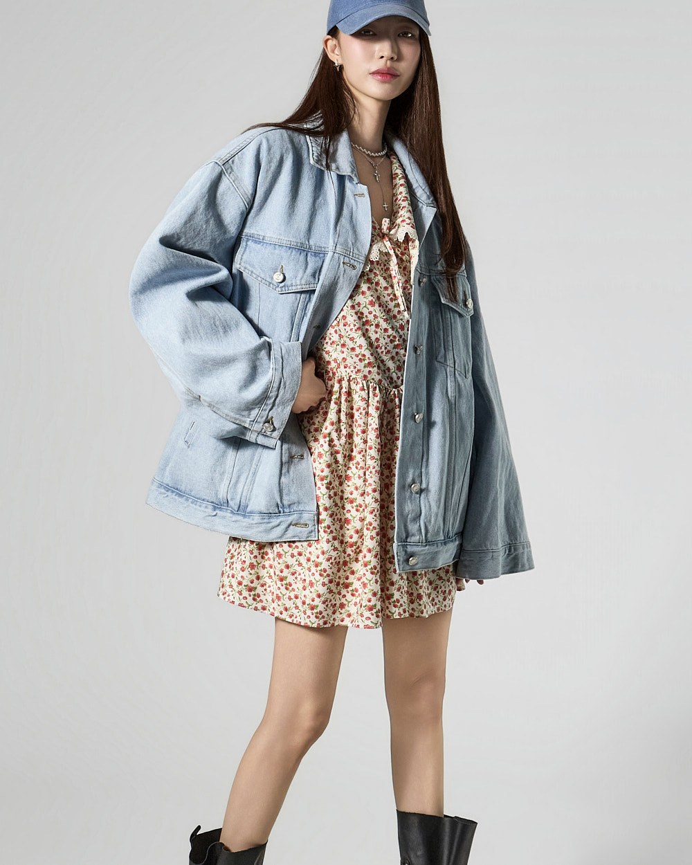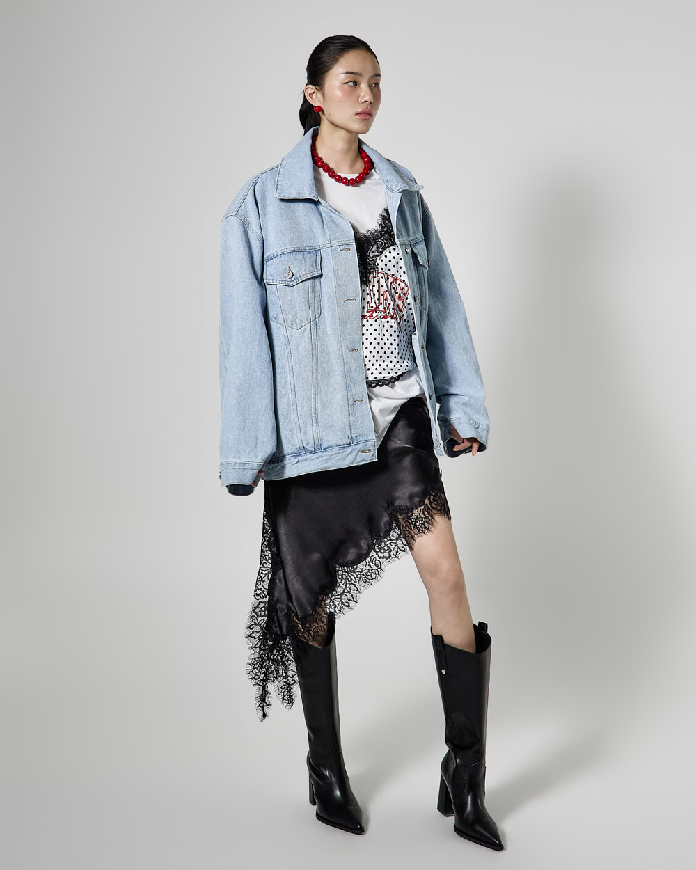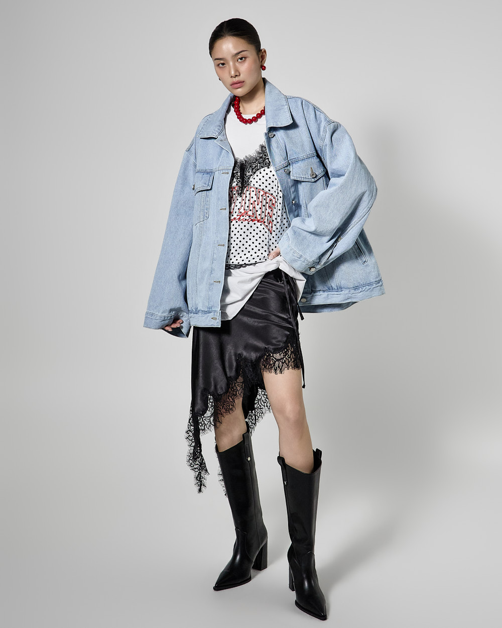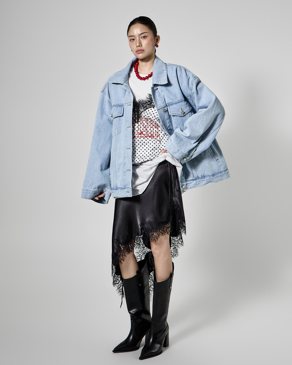 캐주얼 무드의 라이트 데님 자켓입니다.