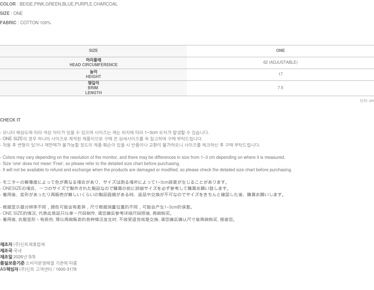 • (주)딘트의 의류는 일반 세탁 및 건조기 사용 시 원단의 변형이나 제품 손상의 원인이 될 수 있으므로, 하단에 안내된 세탁 방법을 따라주시기를 권장합니다.