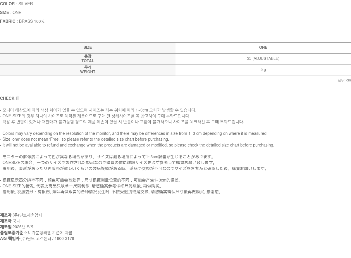 • 액세서리 및 잡화는 장시간 보관 및 착용 시 변색이나 변형이 될 수 있습니다.