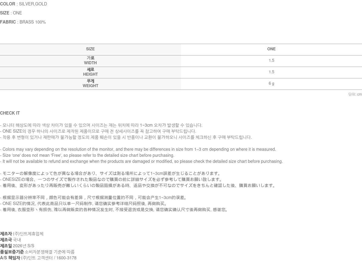 • 액세서리 및 잡화는 장시간 보관 및 착용 시 변색이나 변형이 될 수 있습니다.