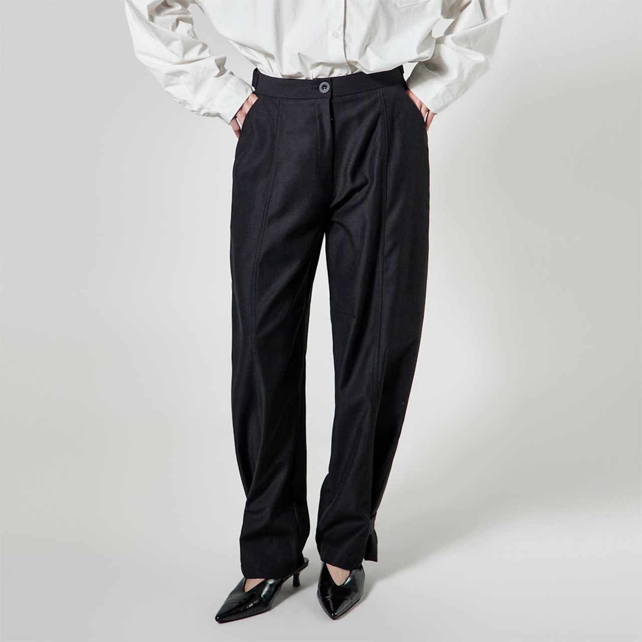 모던한 무드의 핀턱 슬랙스입니다.