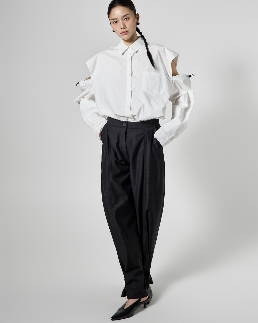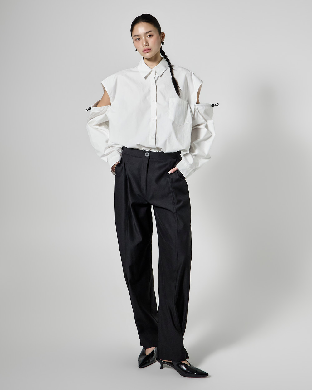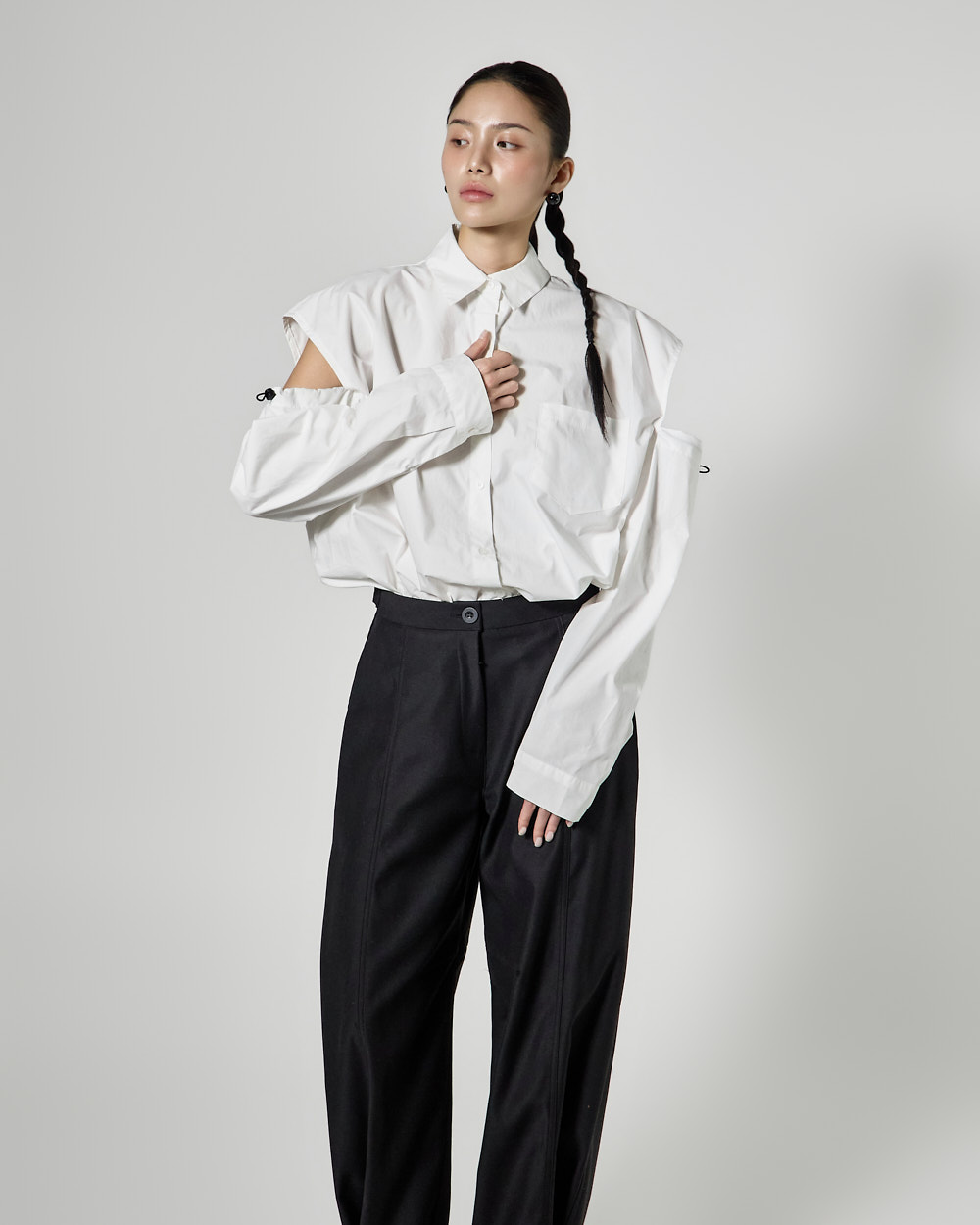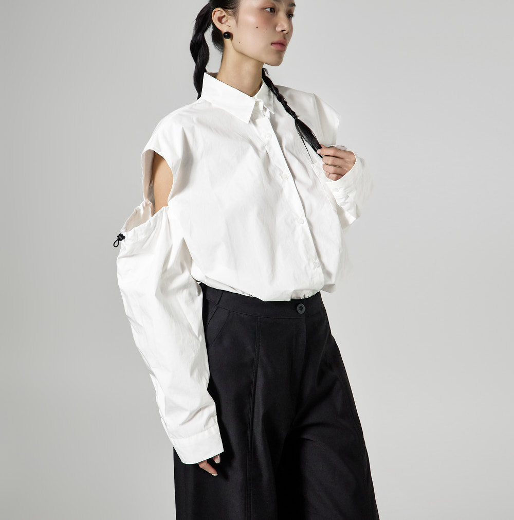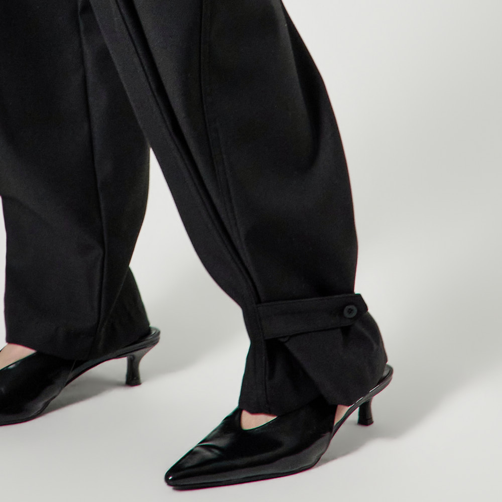 밑단 단추 디테일로 핏 변형이 가능하며,