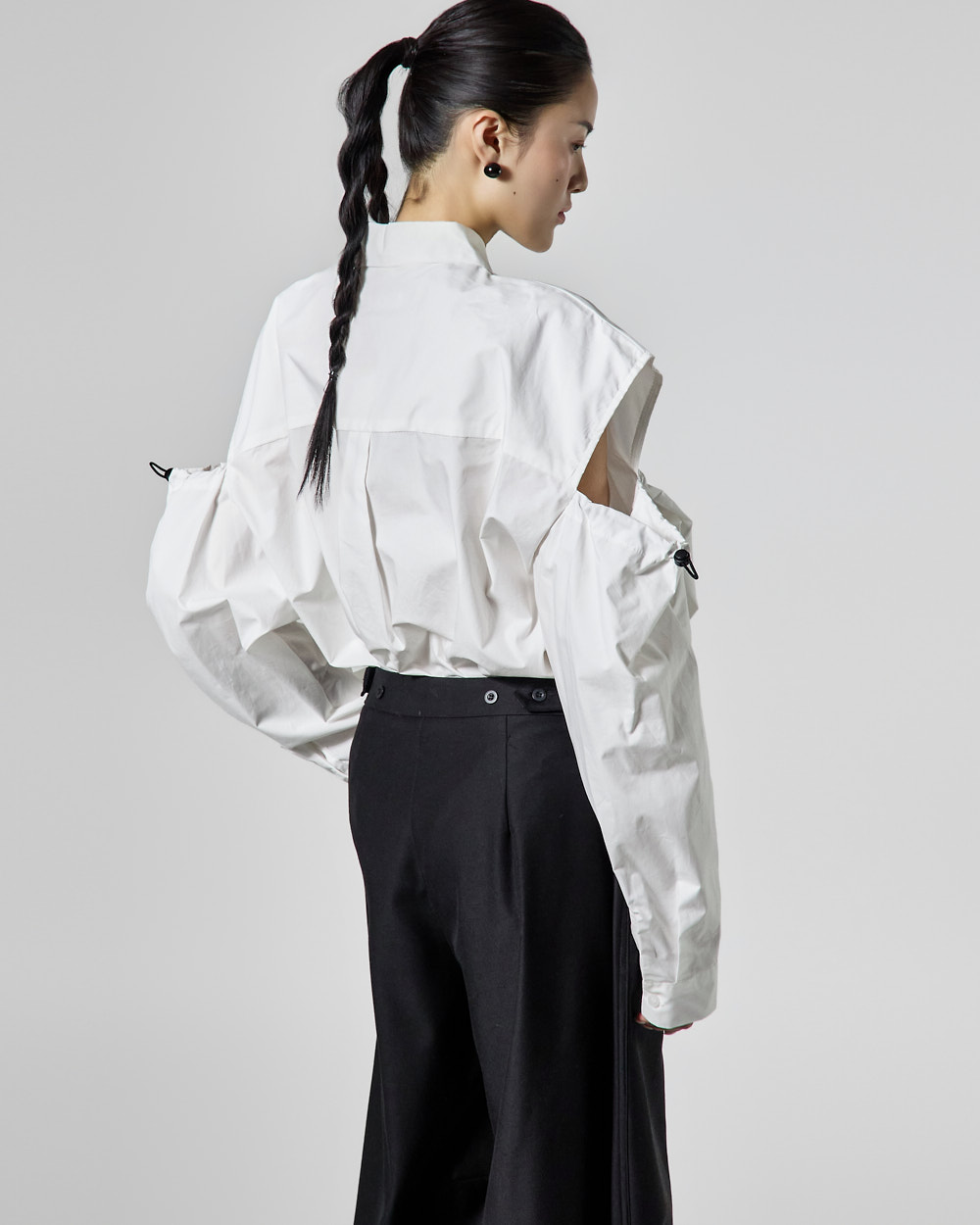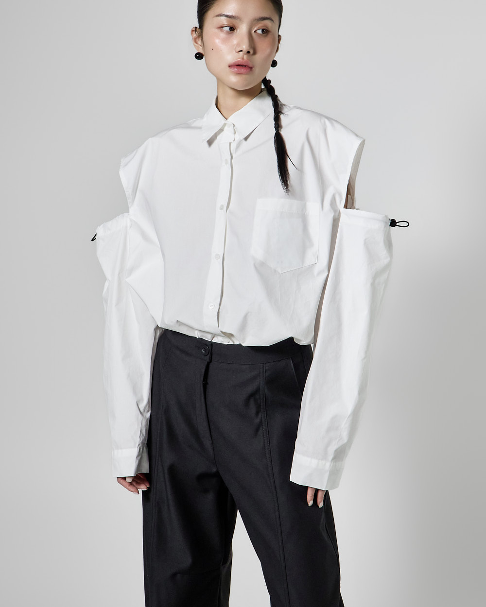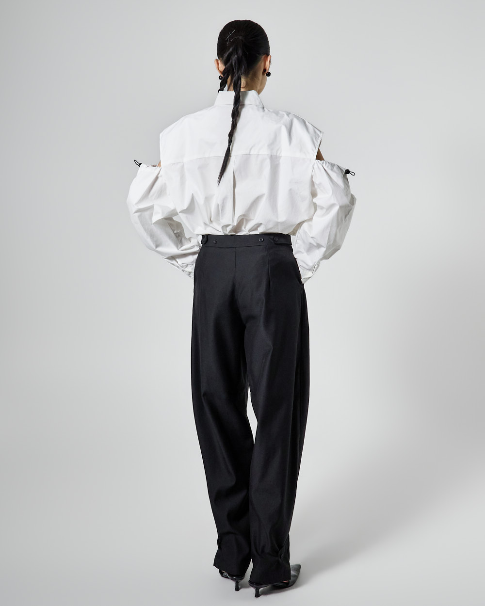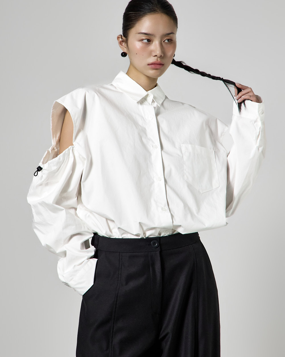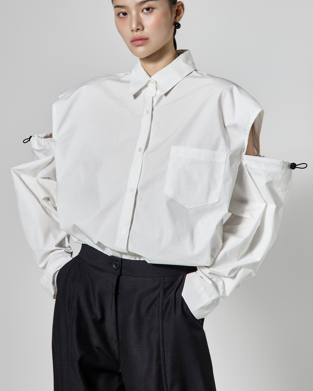 밑단 단추 디테일로 핏 변형이 가능하며,