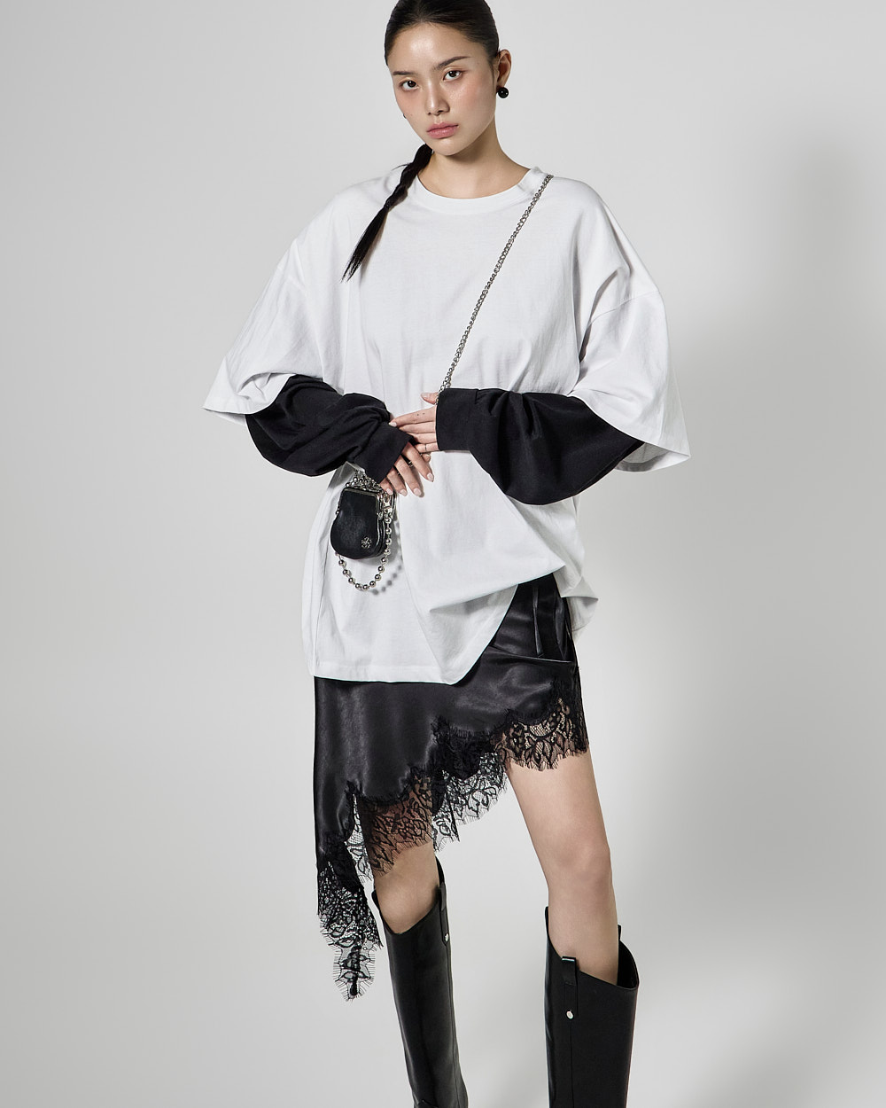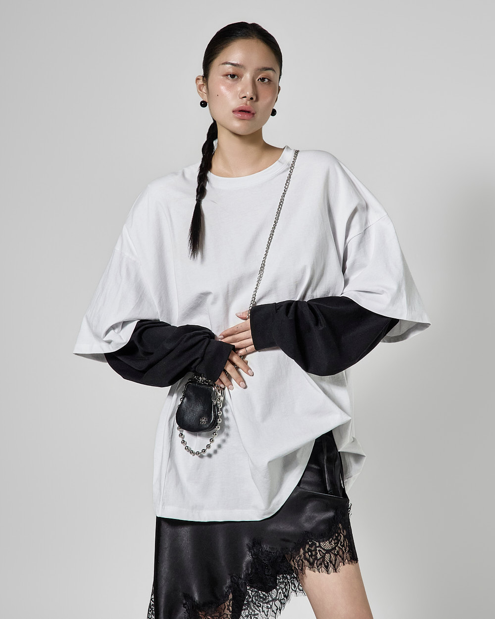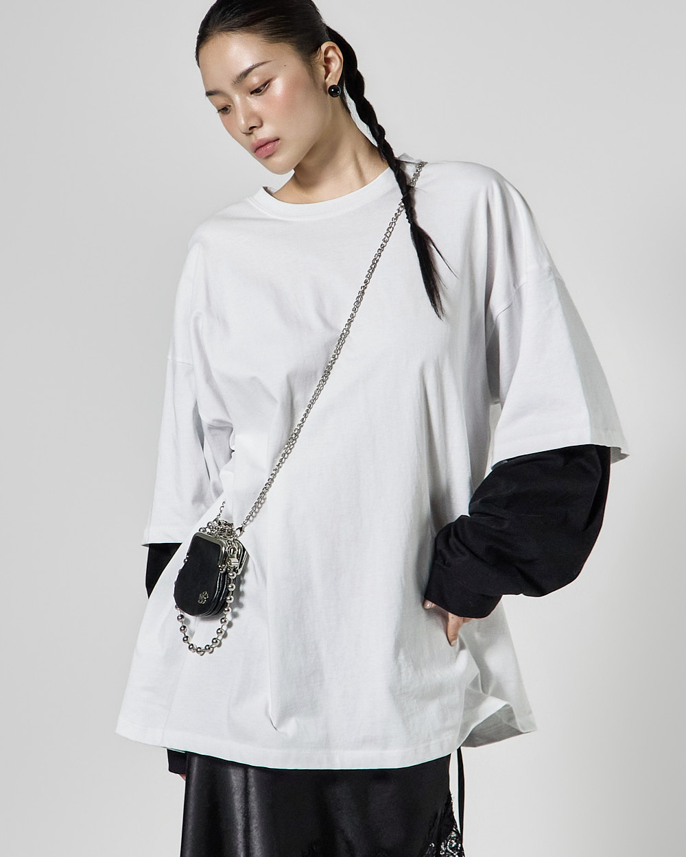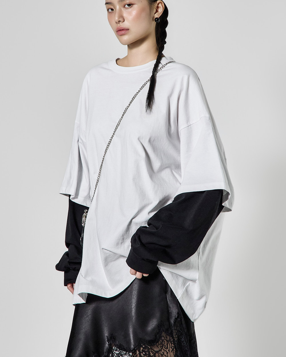하프 슬리브와 롱 슬리브가 레이어드된 디자인으로