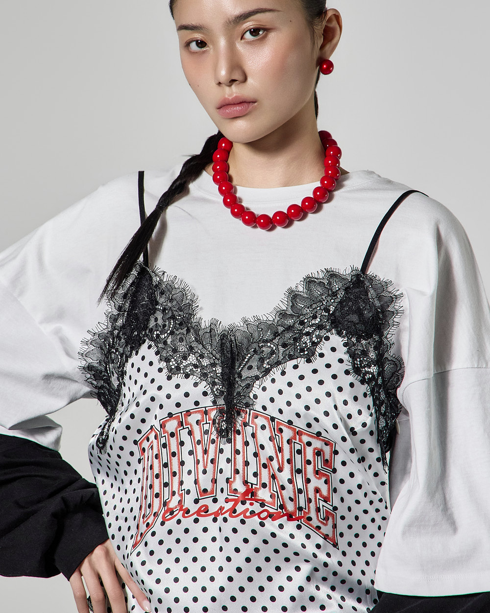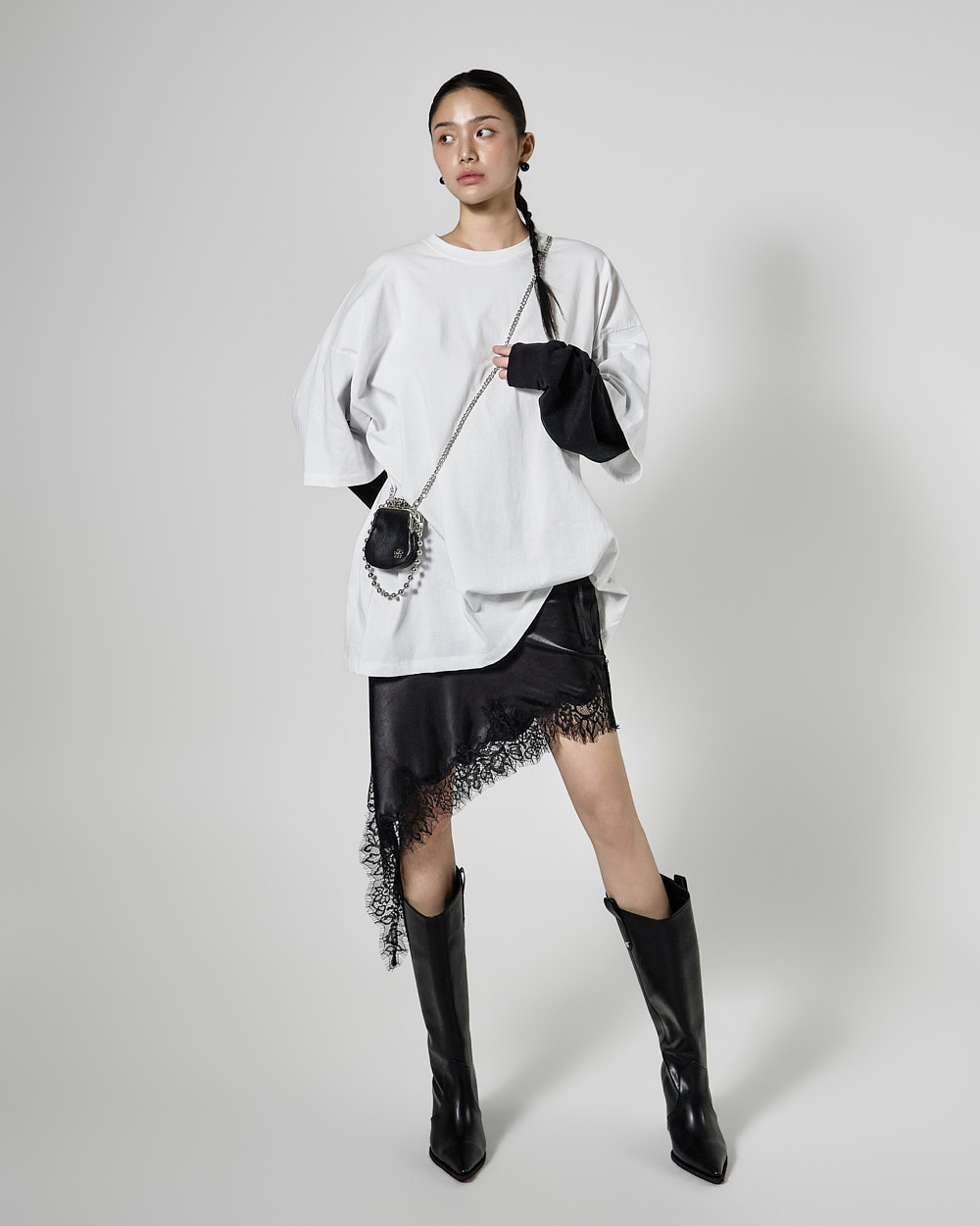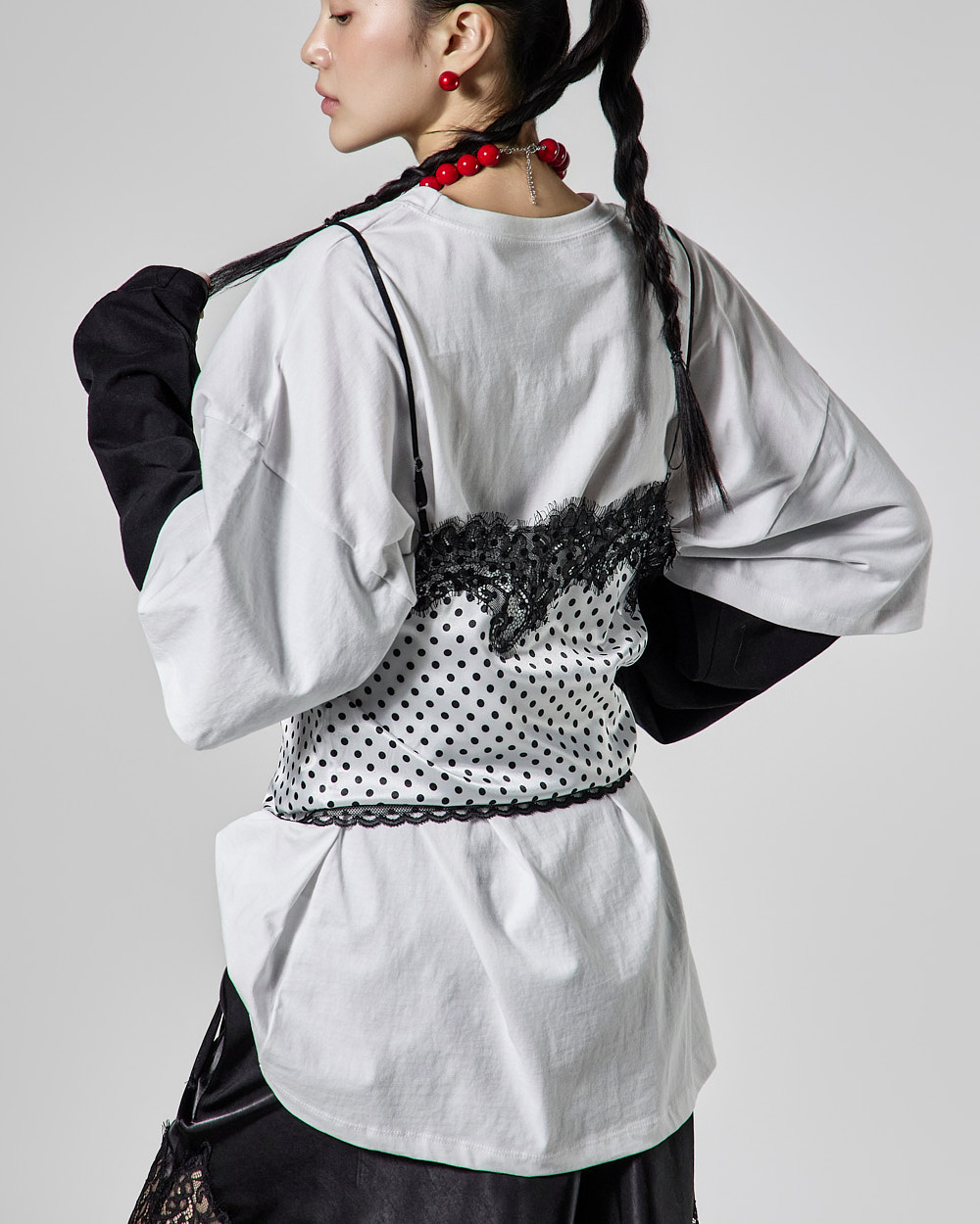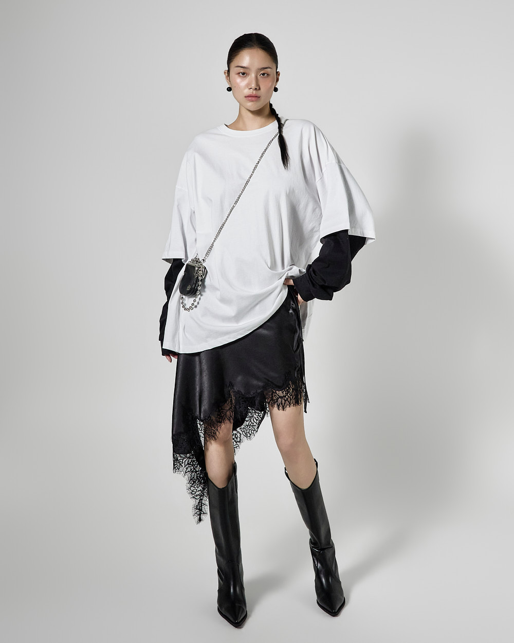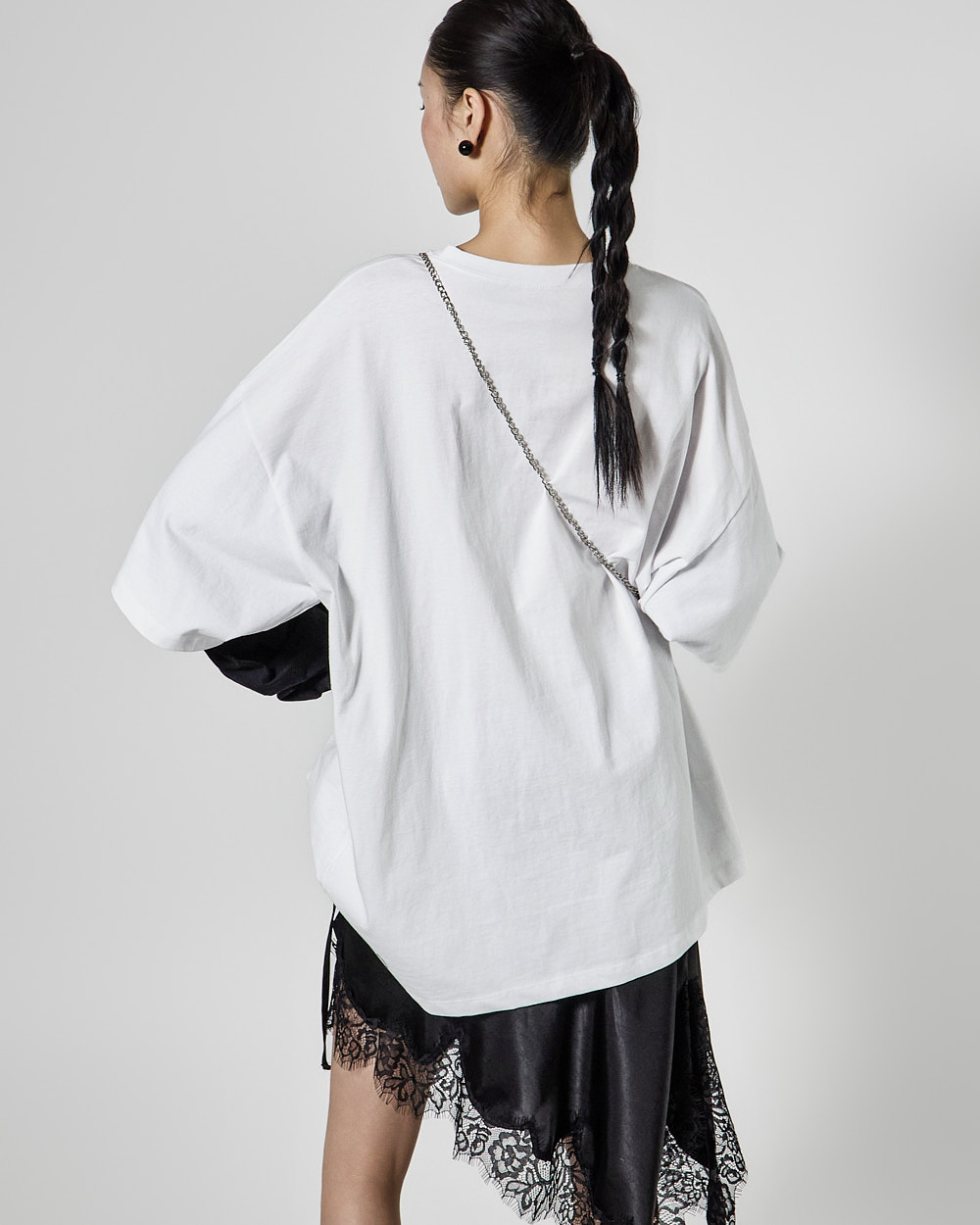 하프 슬리브와 롱 슬리브가 레이어드된 디자인으로