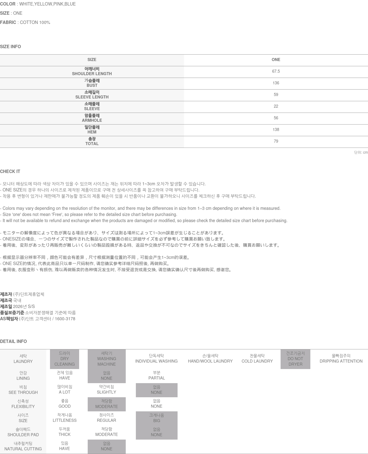 171CM 모델 ONE 사이즈, WHITE 컬러 착용하였습니다.