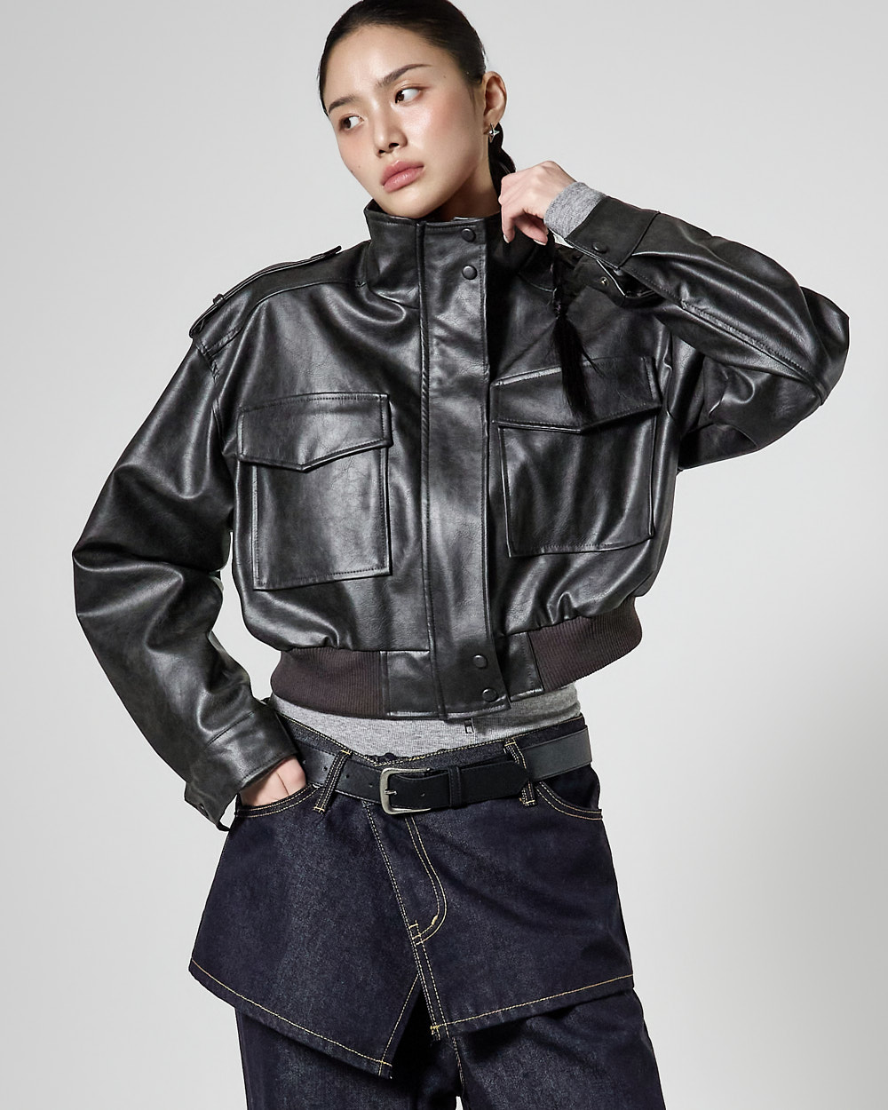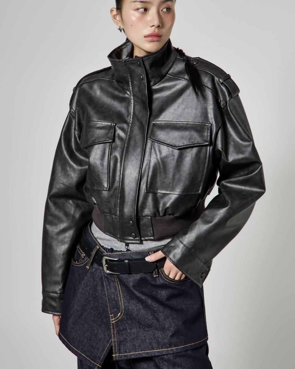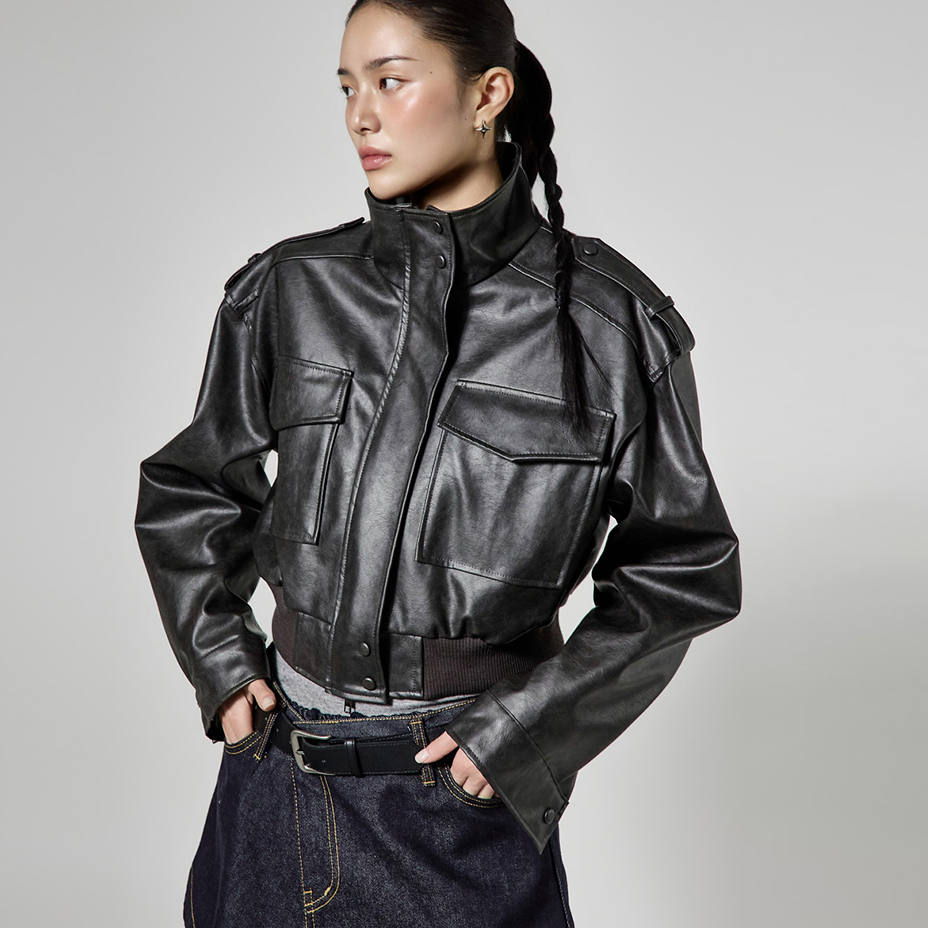캐주얼한 무드의 레더 숏 점퍼입니다.