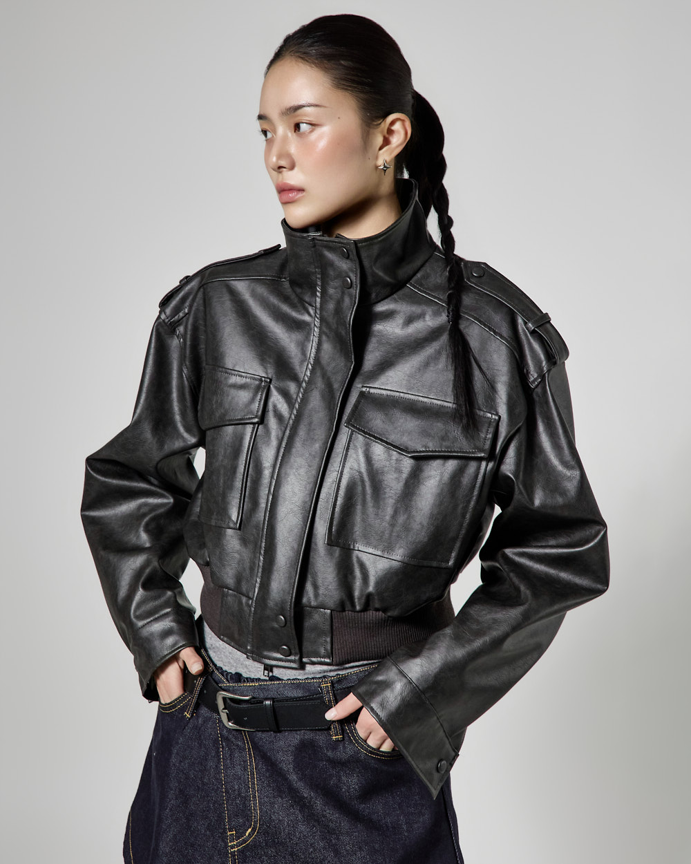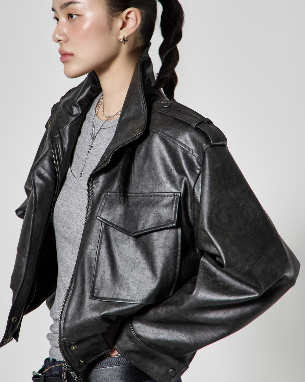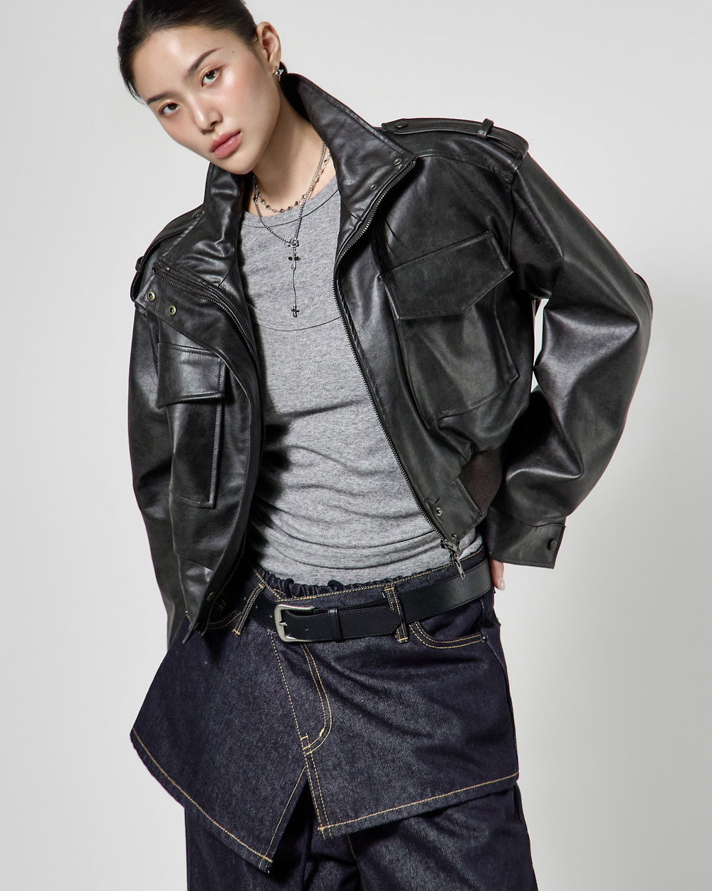 캐주얼한 무드의 레더 숏 점퍼입니다.
