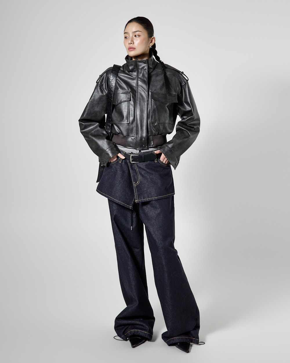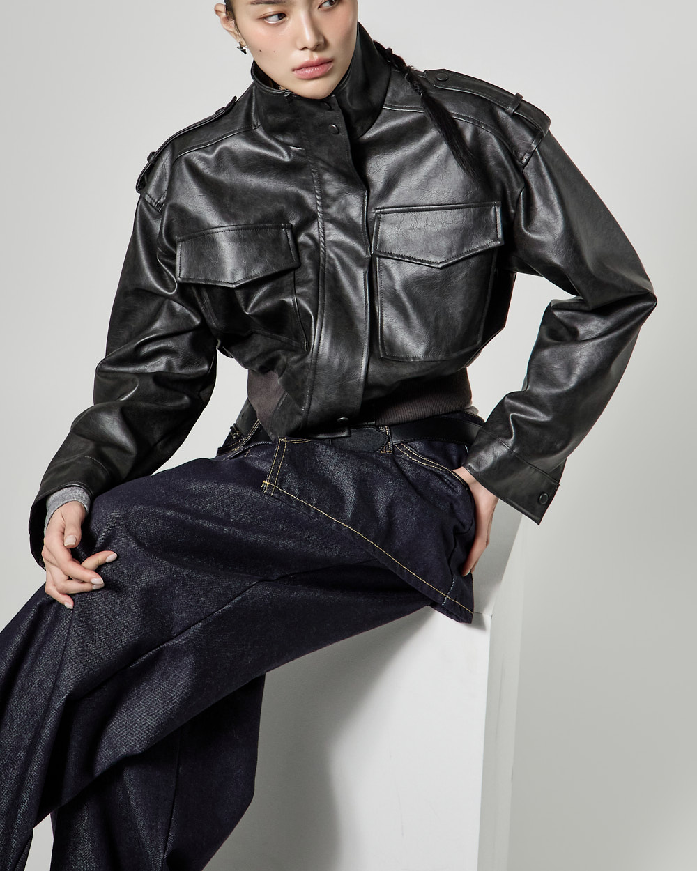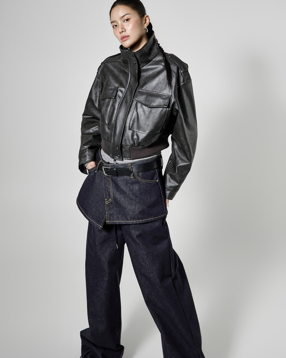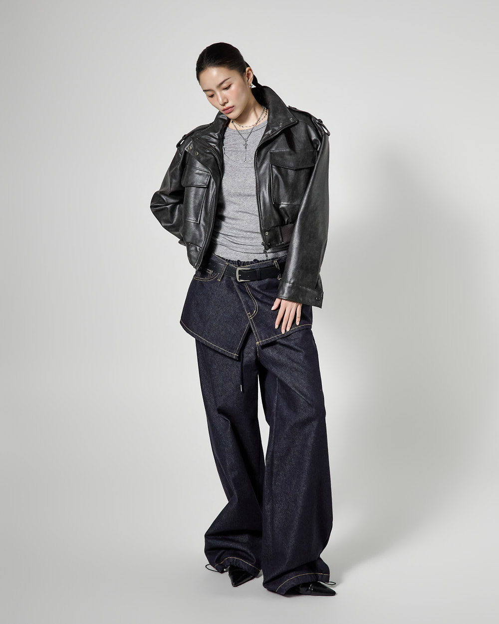 루즈핏 실루엣에 크롭 기장으로 떨어져