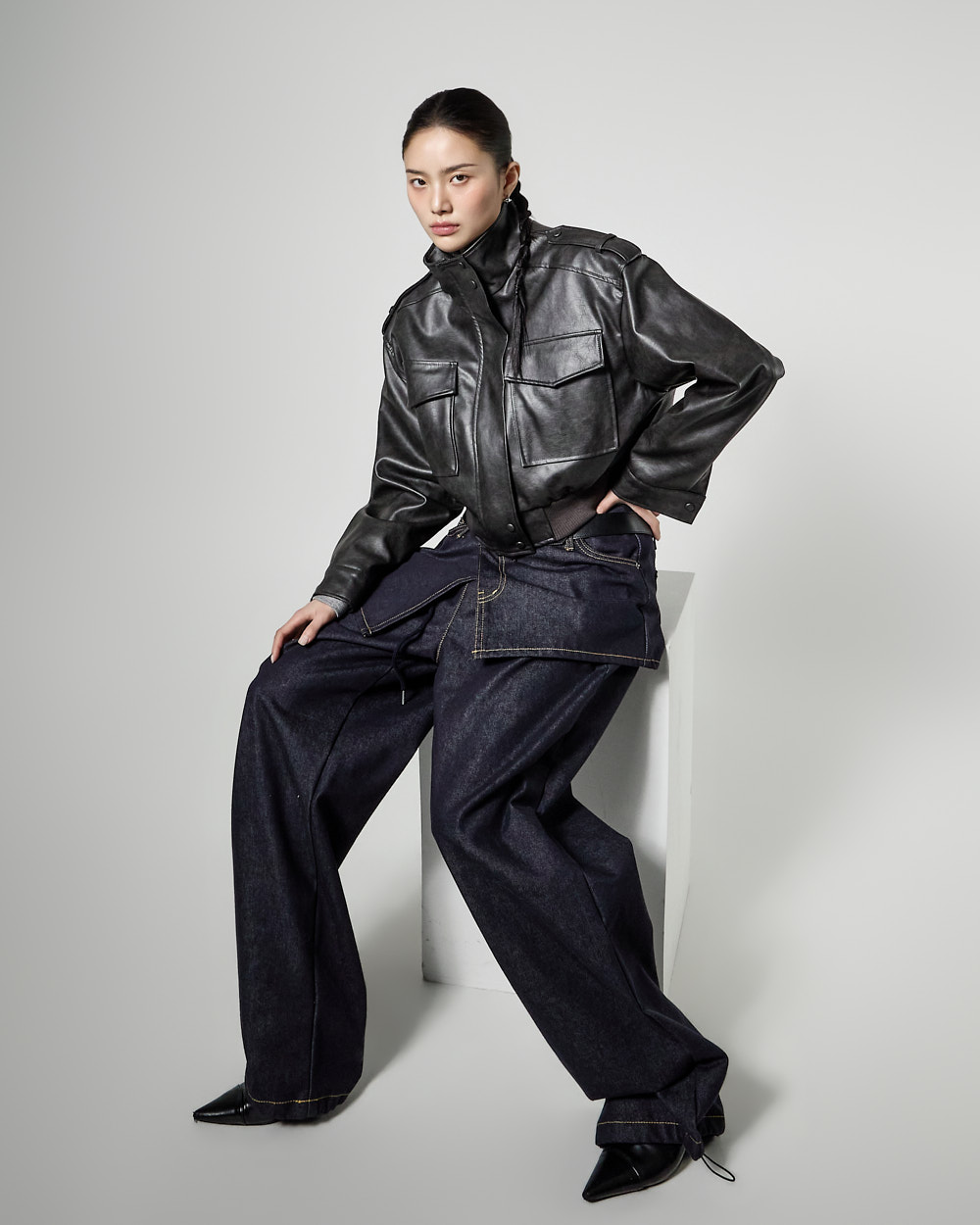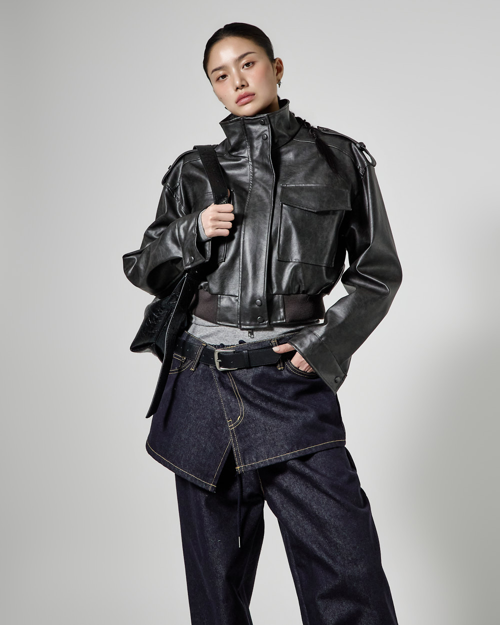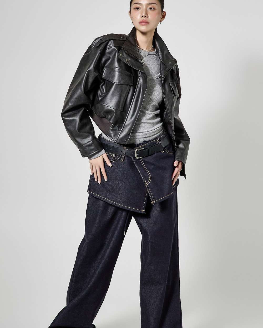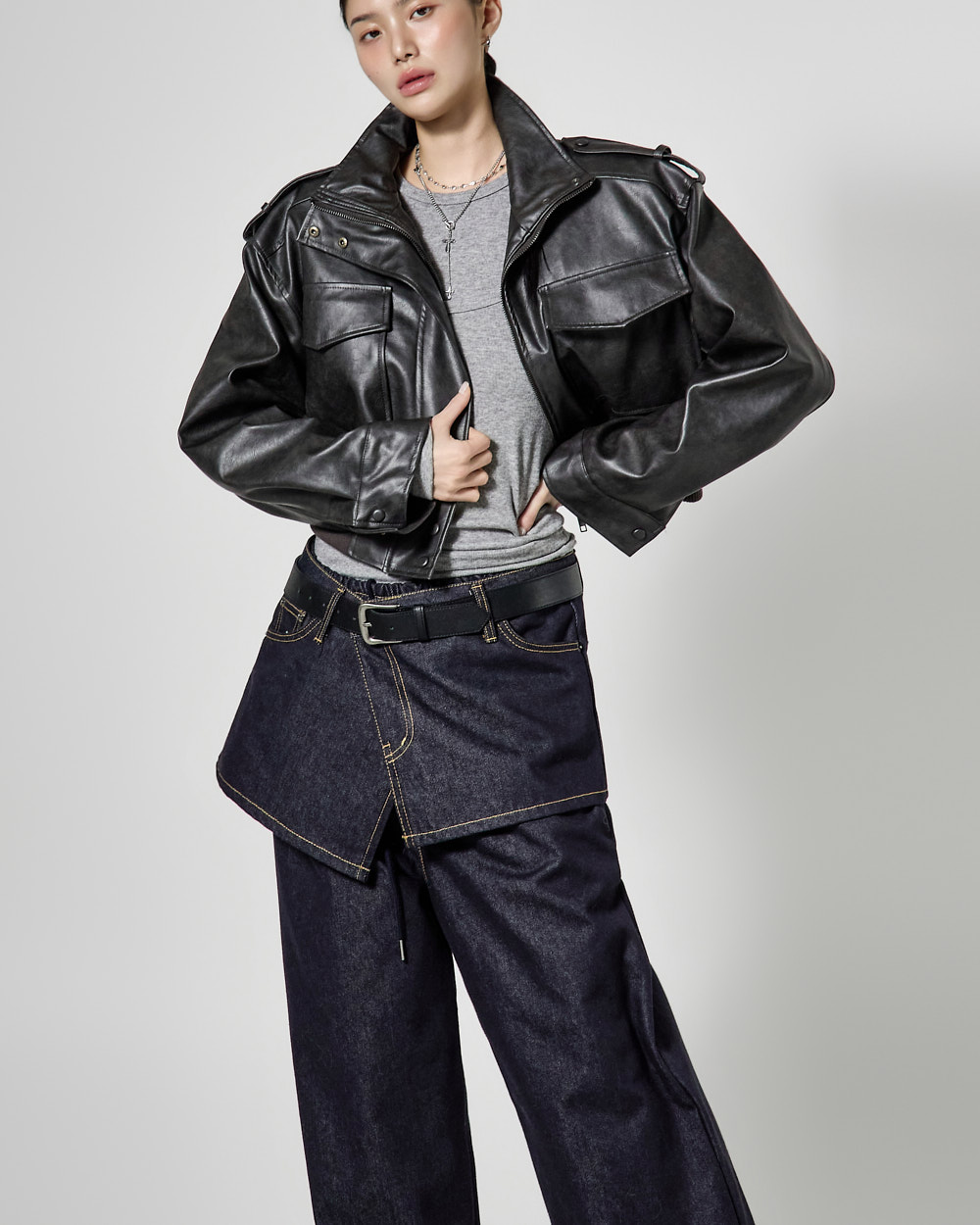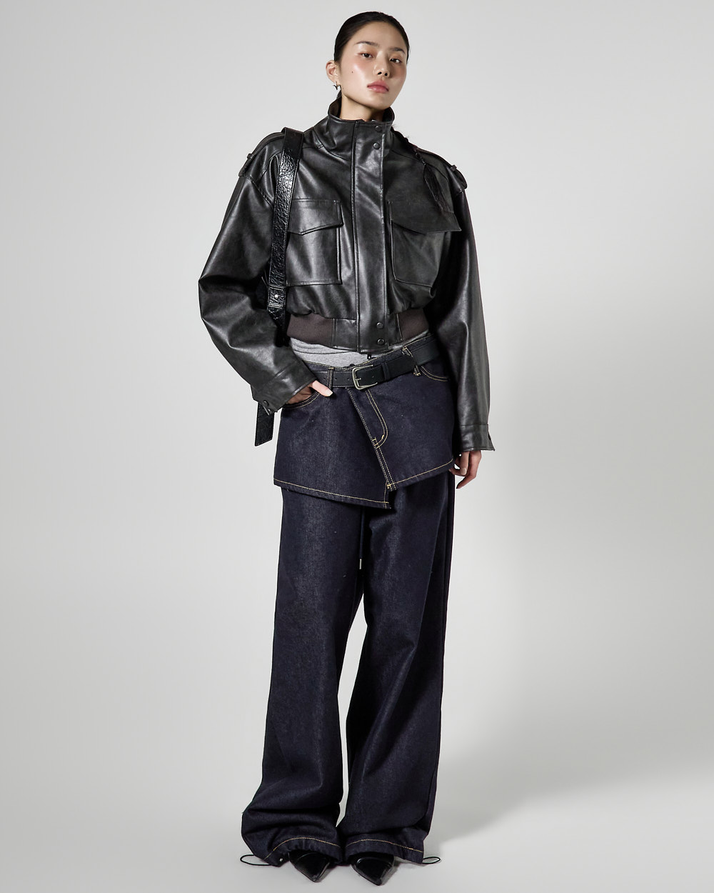 루즈핏 실루엣에 크롭 기장으로 떨어져