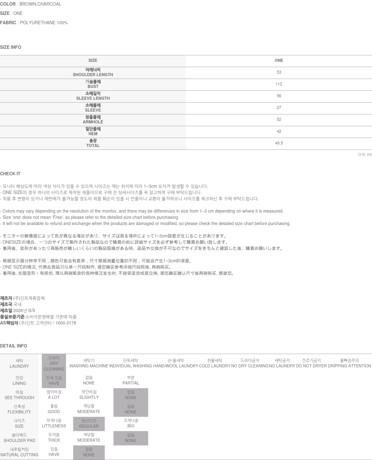 171CM 모델 ONE 사이즈, CHARCOAL 컬러 착용하였습니다.