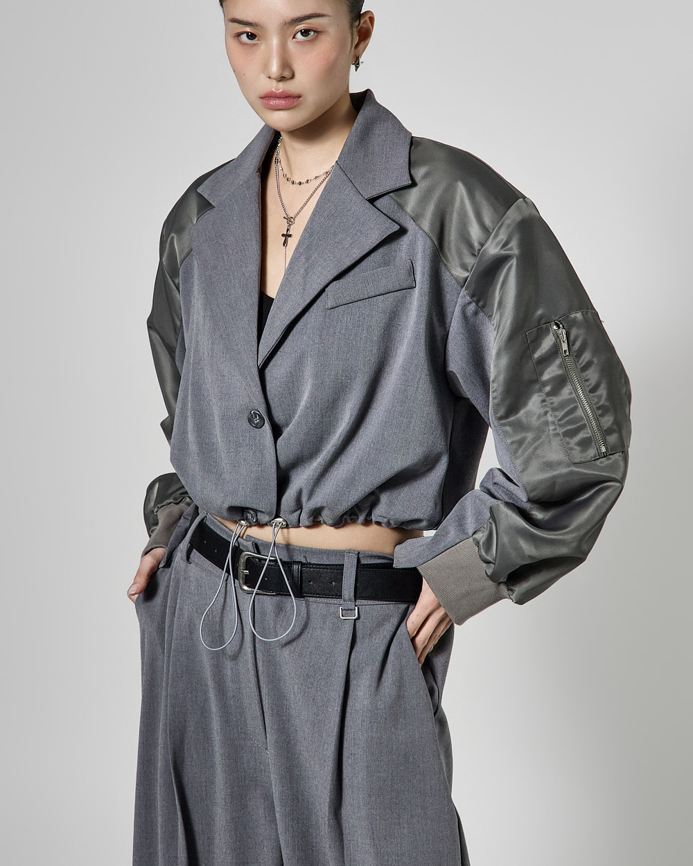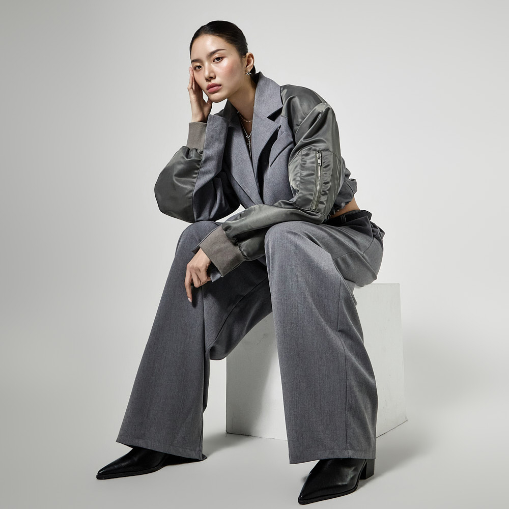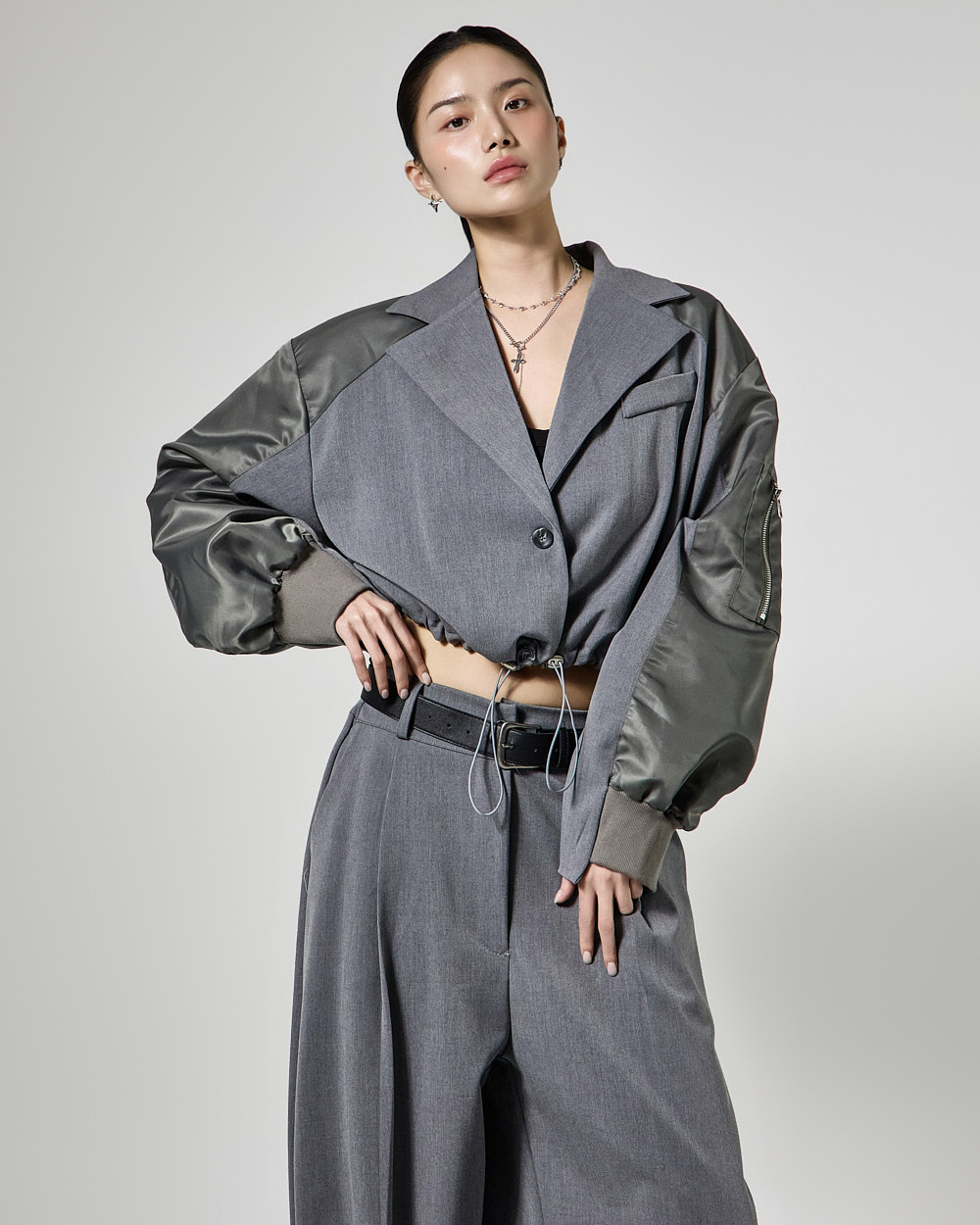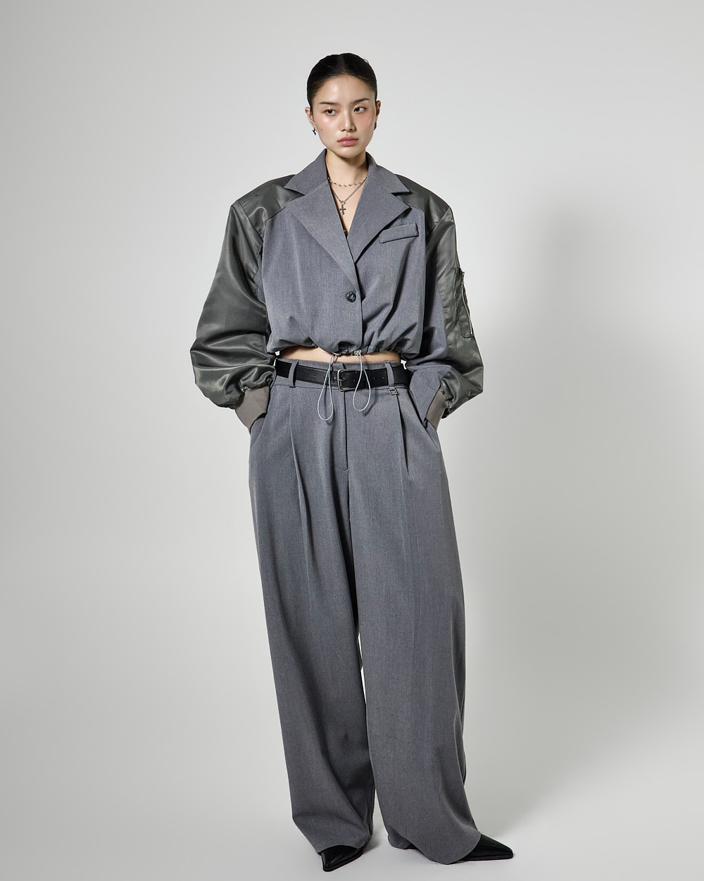 숄더패드가 더해져 전체적인 라인을 안정감 있게 잡아줍니다.