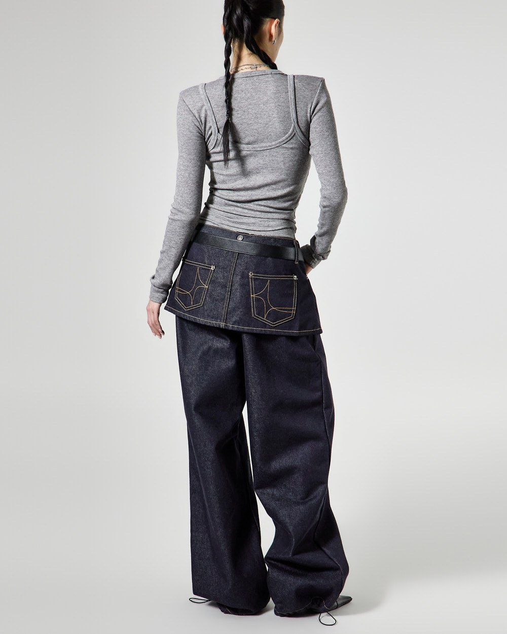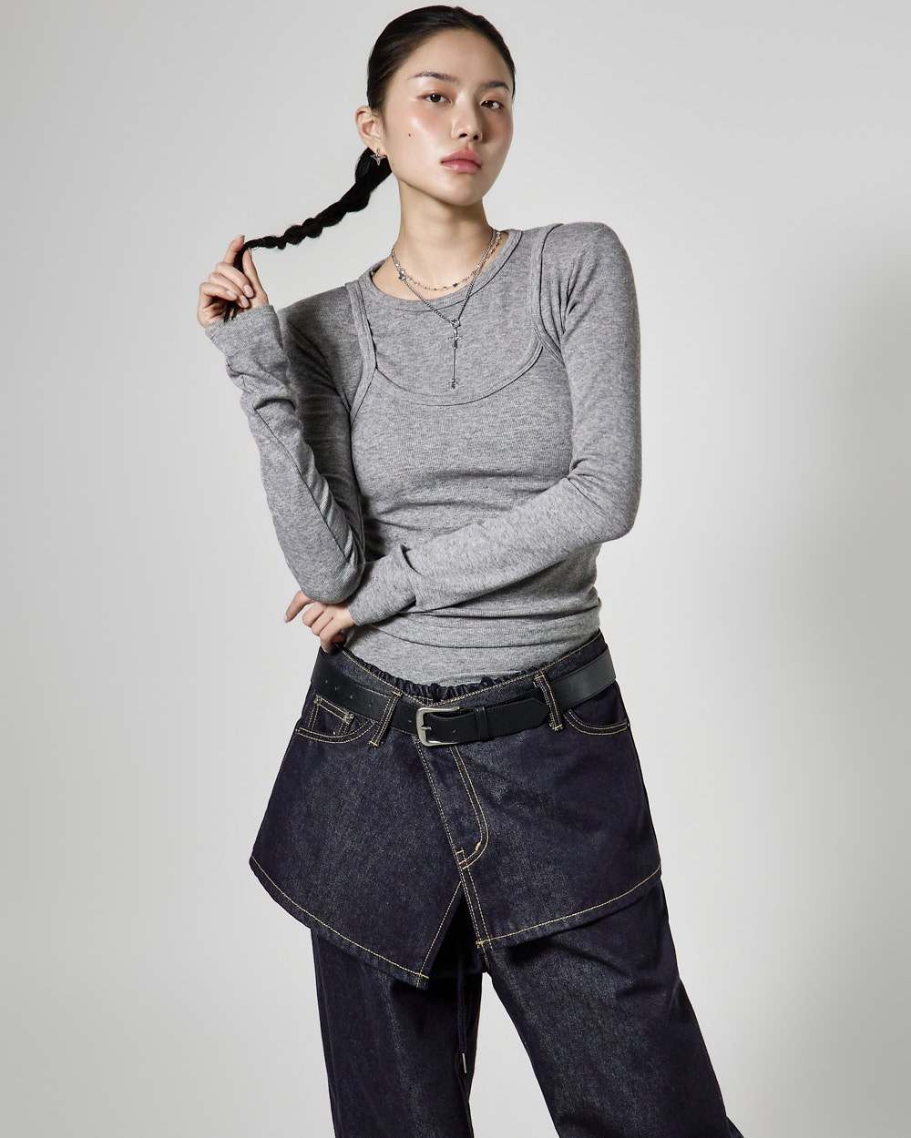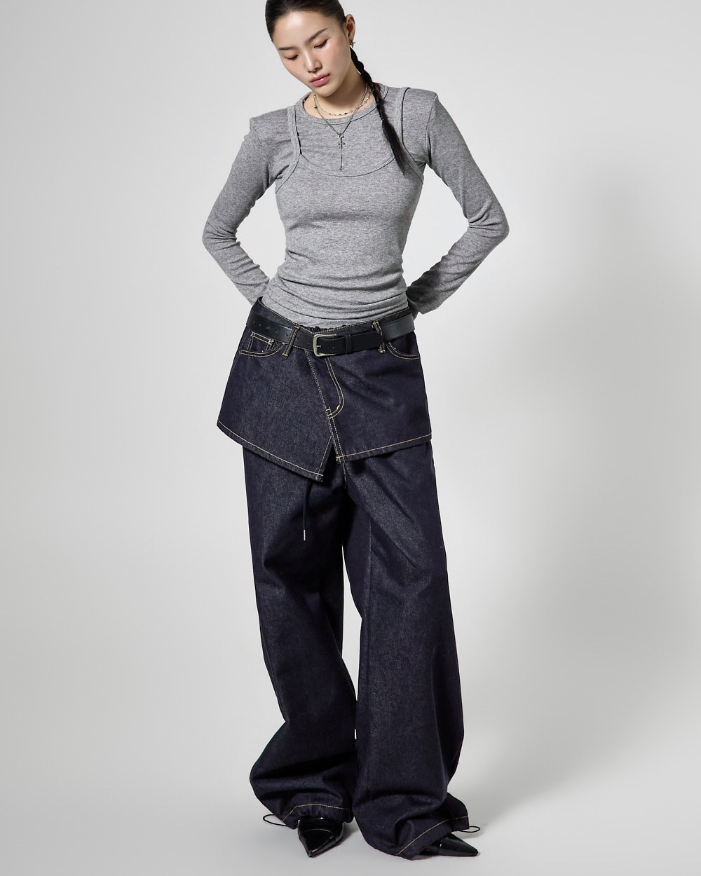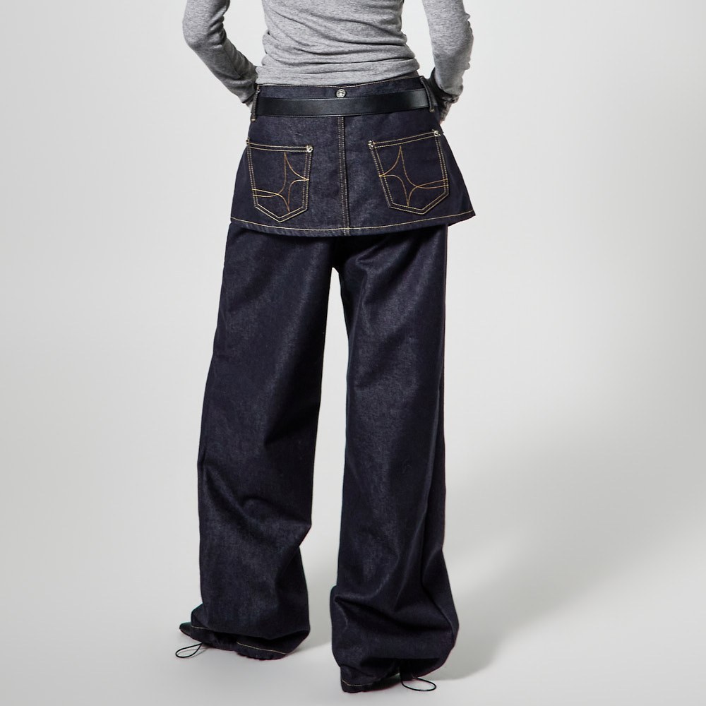 스커트와 데님 팬츠가 세트 구성으로 되어 있으며,