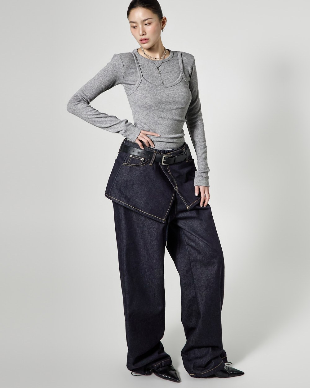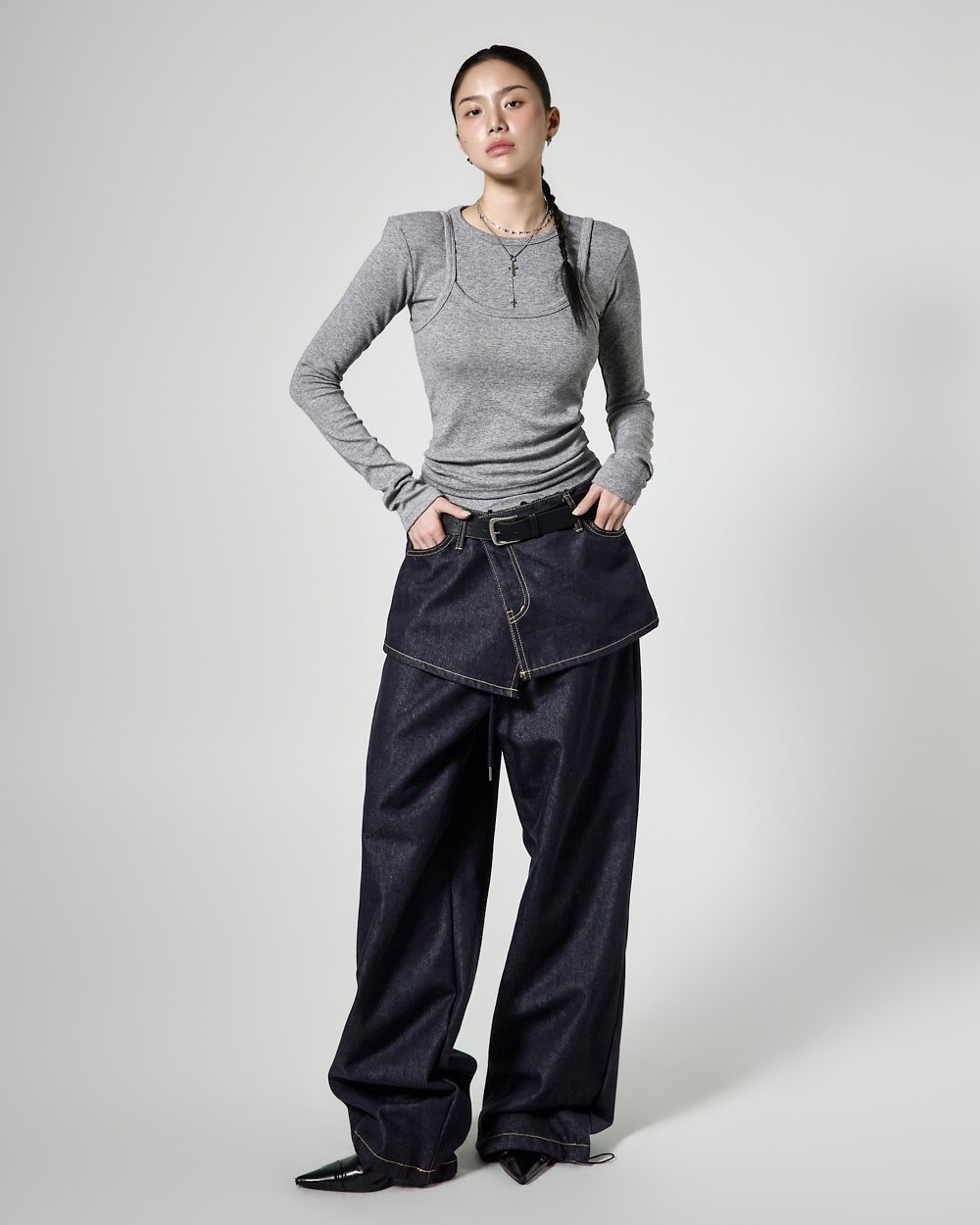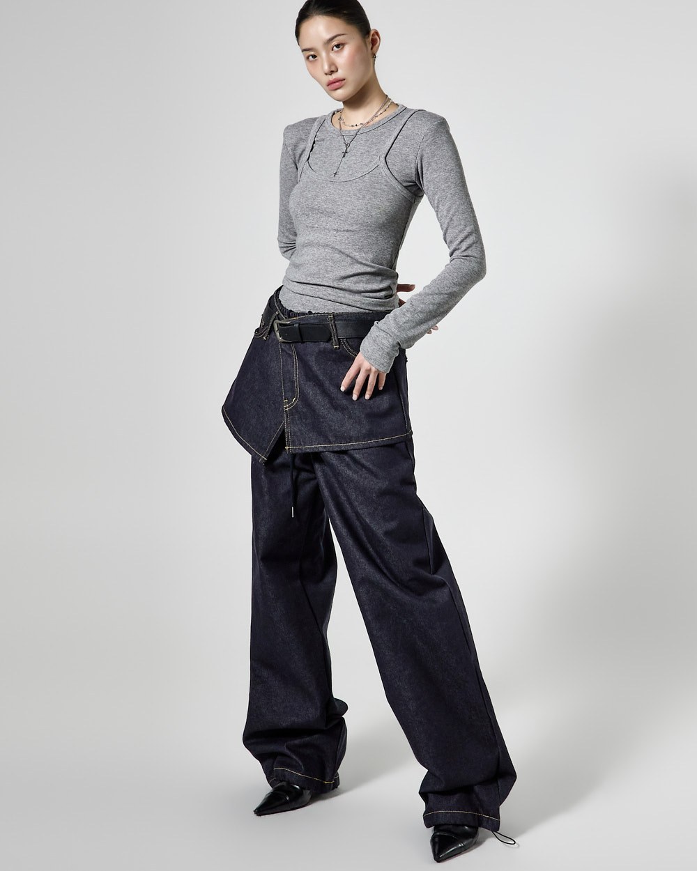 스커트와 데님 팬츠가 세트 구성으로 되어 있으며,