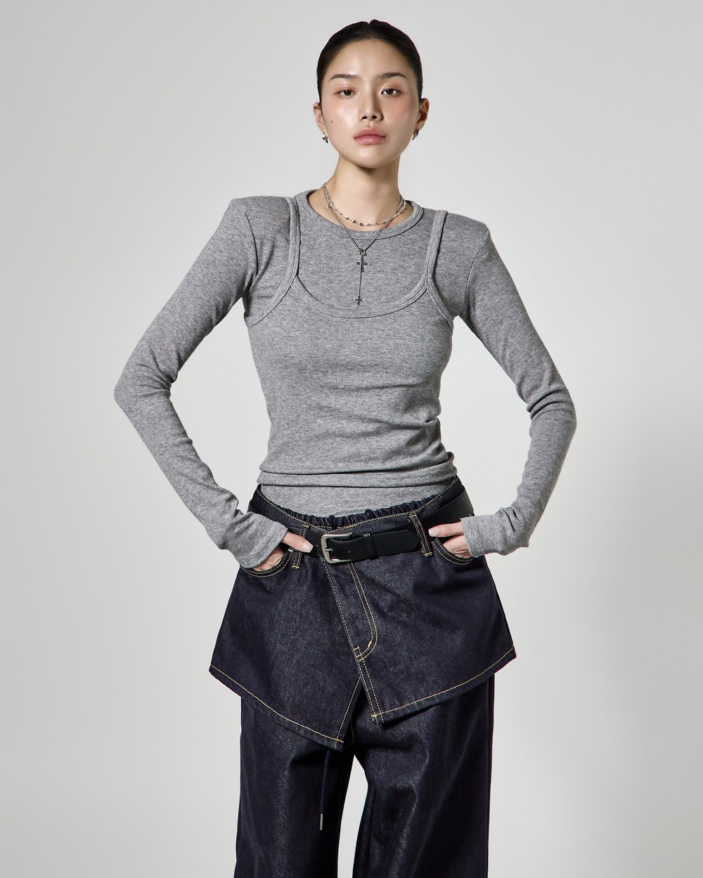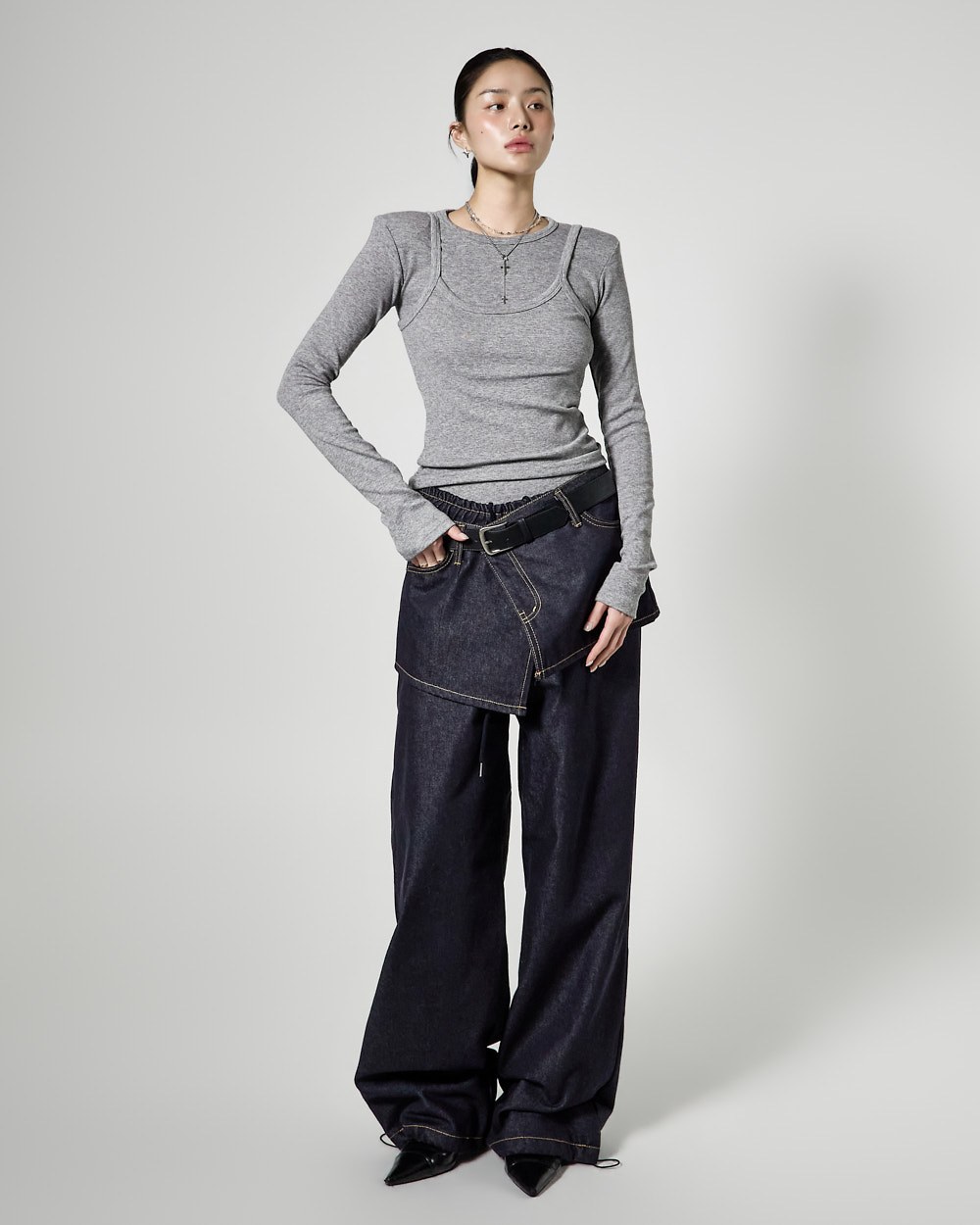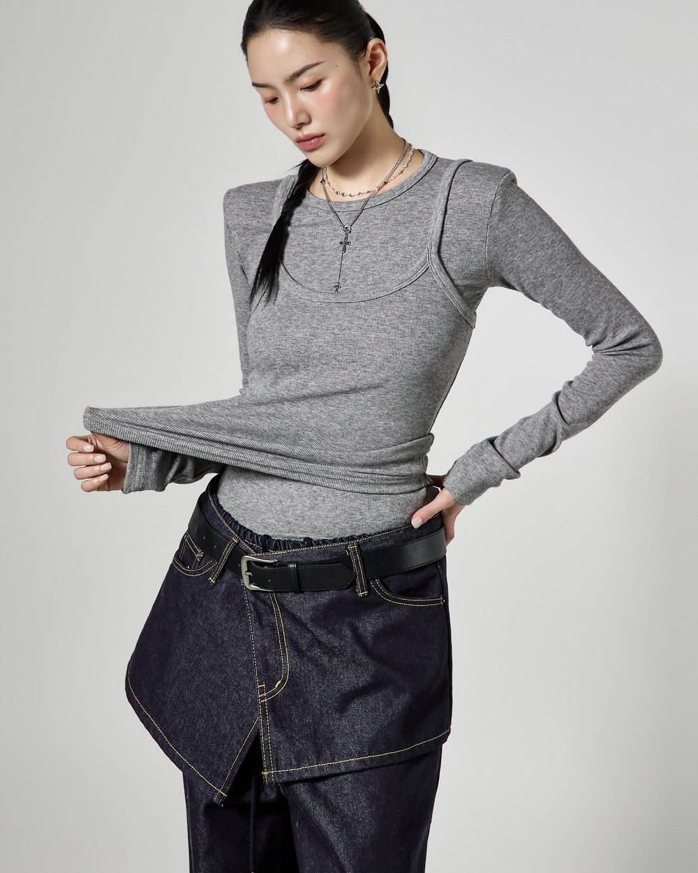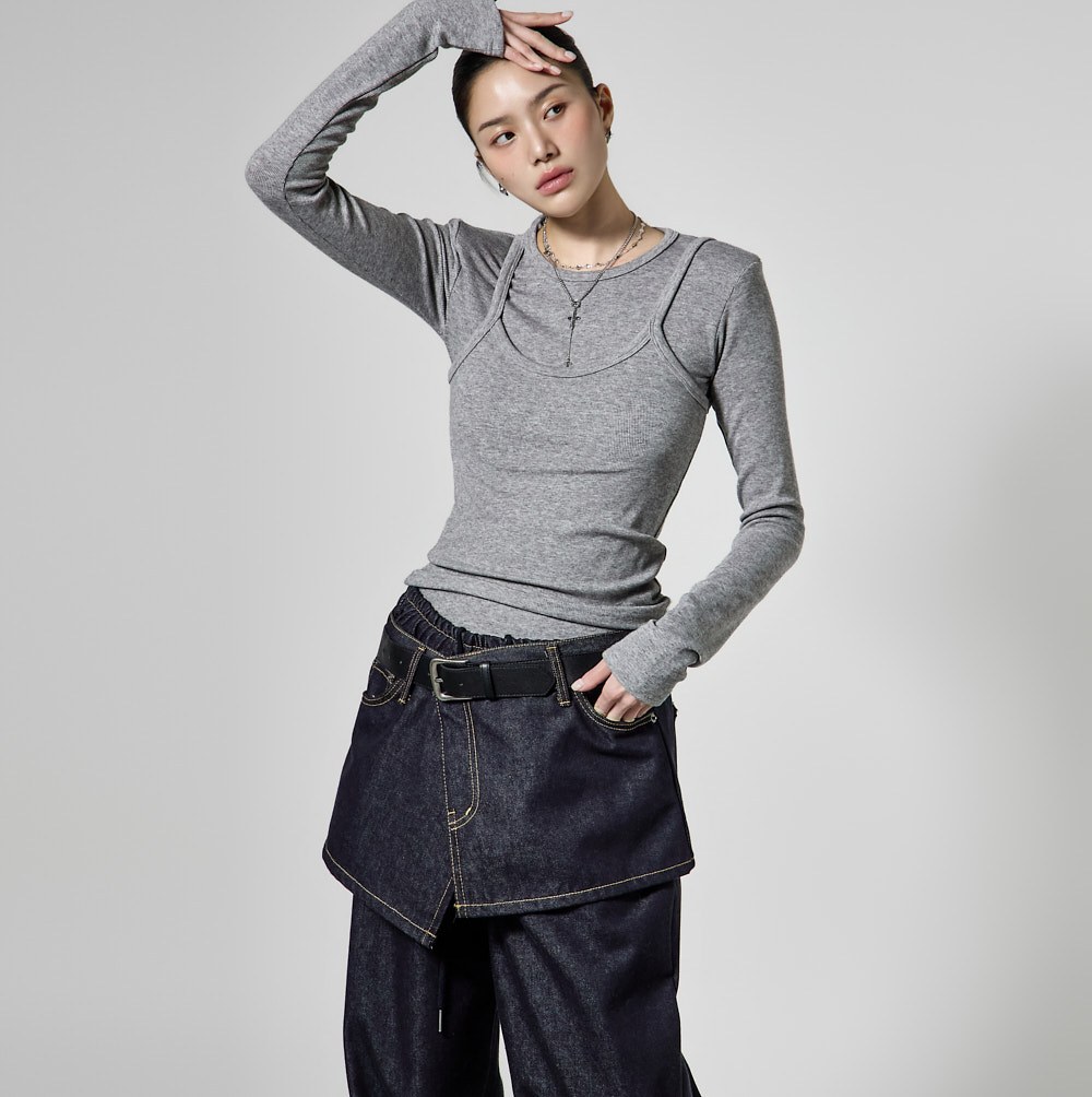 스커트와 데님 팬츠가 세트 구성으로 되어 있으며,