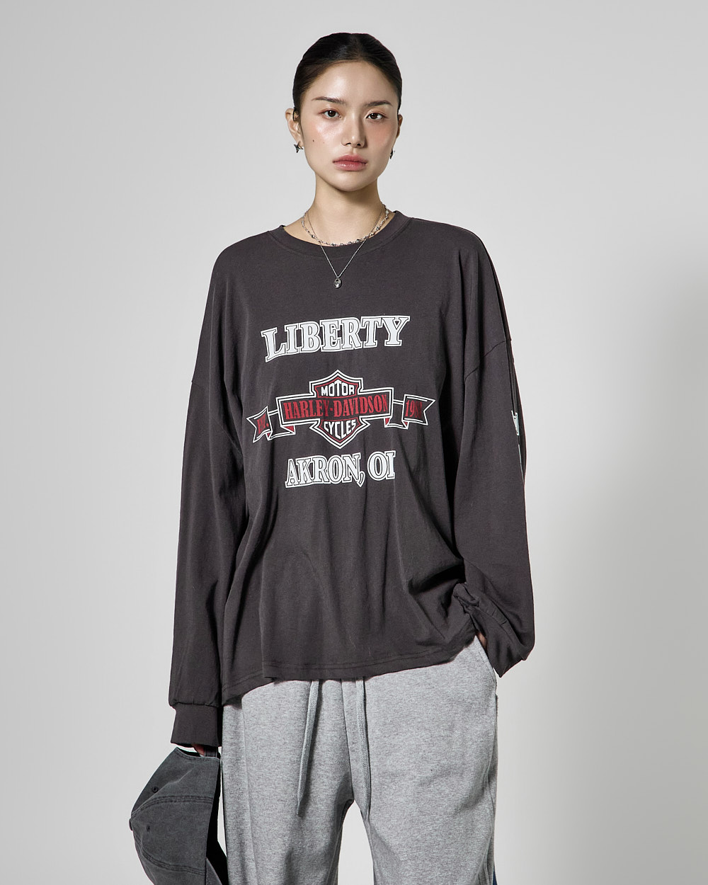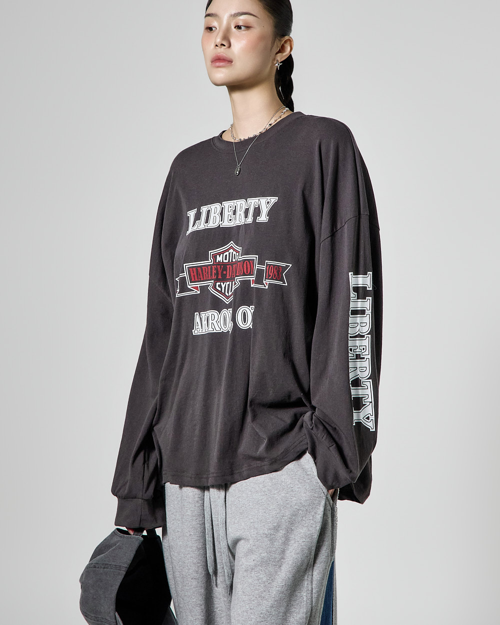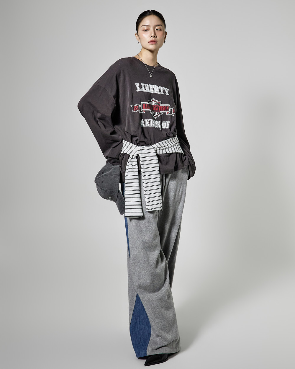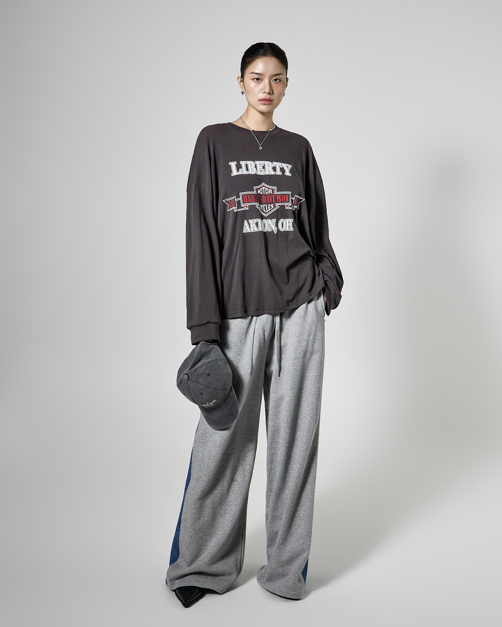 171CM 모델 ONE 사이즈, CHARCOAL 컬러 착용하였습니다.