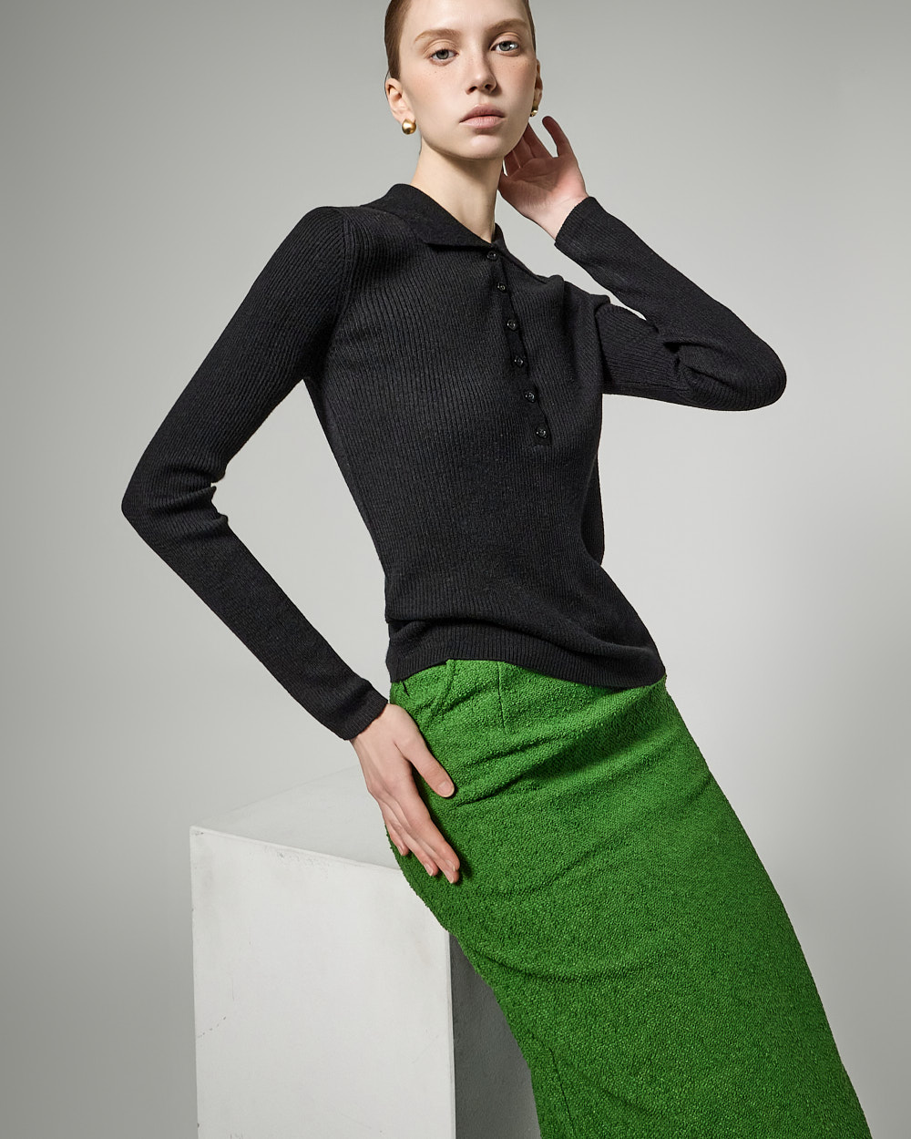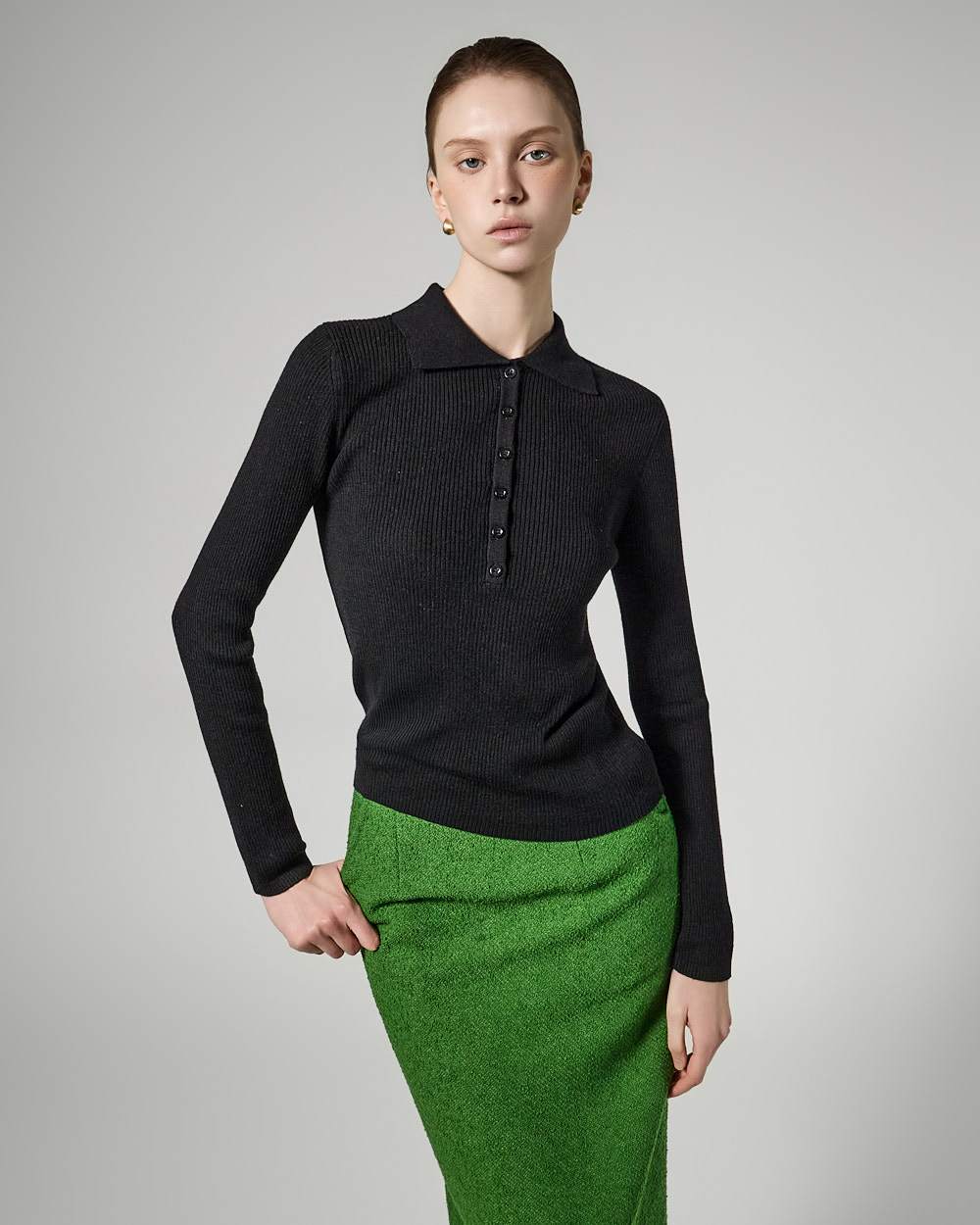 캐주얼한 무드의 카라 헨리넥 니트입니다.