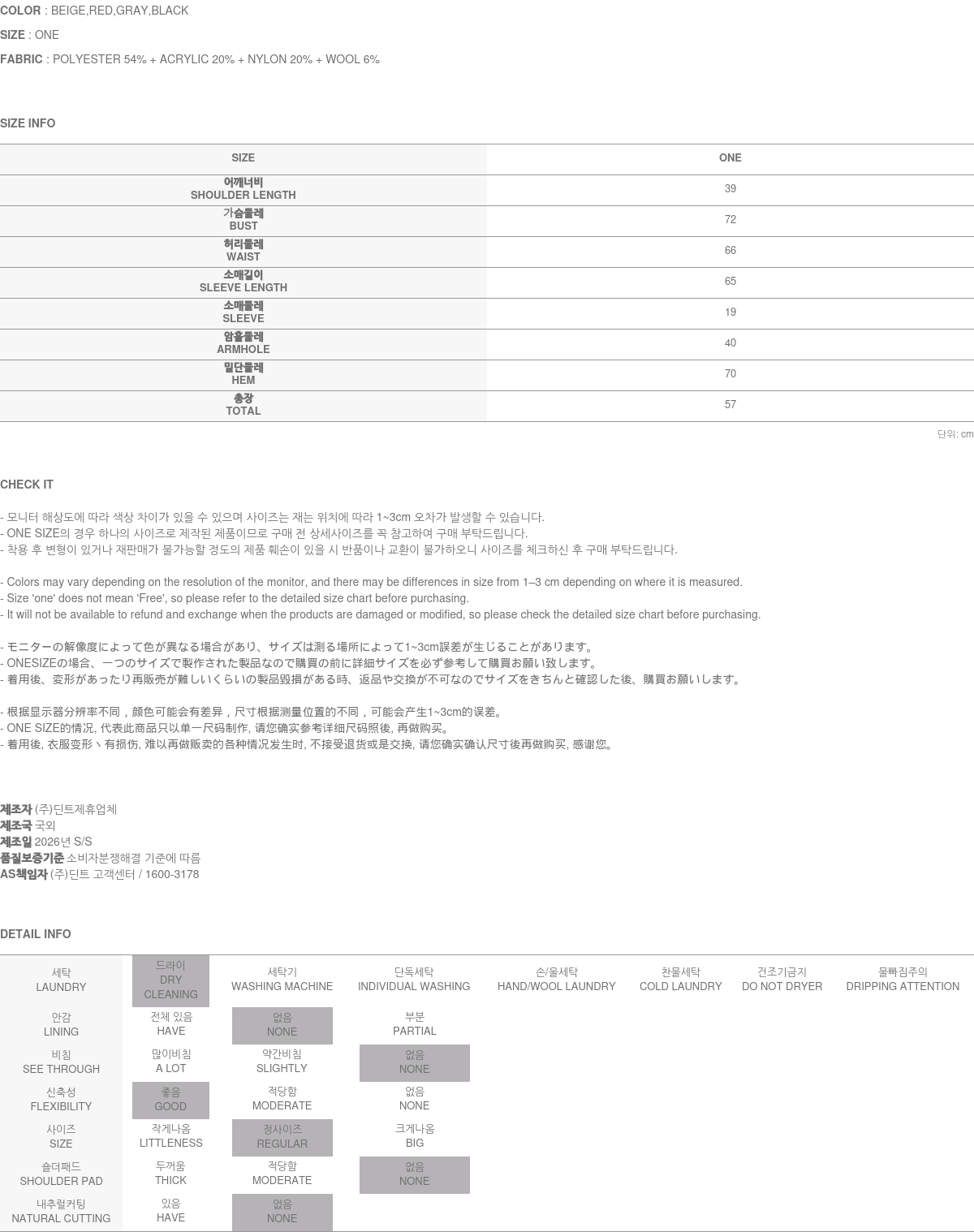 폴리에스테르, 아크릴, 나일론, 울 혼방 소재로 제작되어