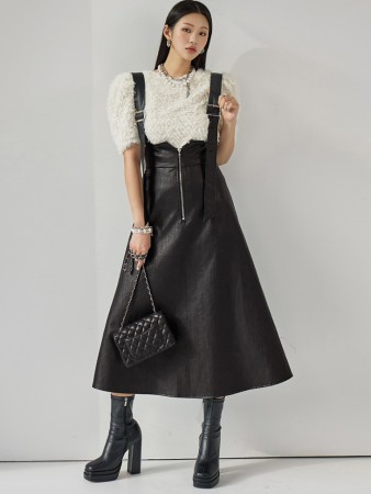 D4609 페우드 레더 훌 서스펜더 미디 원피스(6th REORDER)