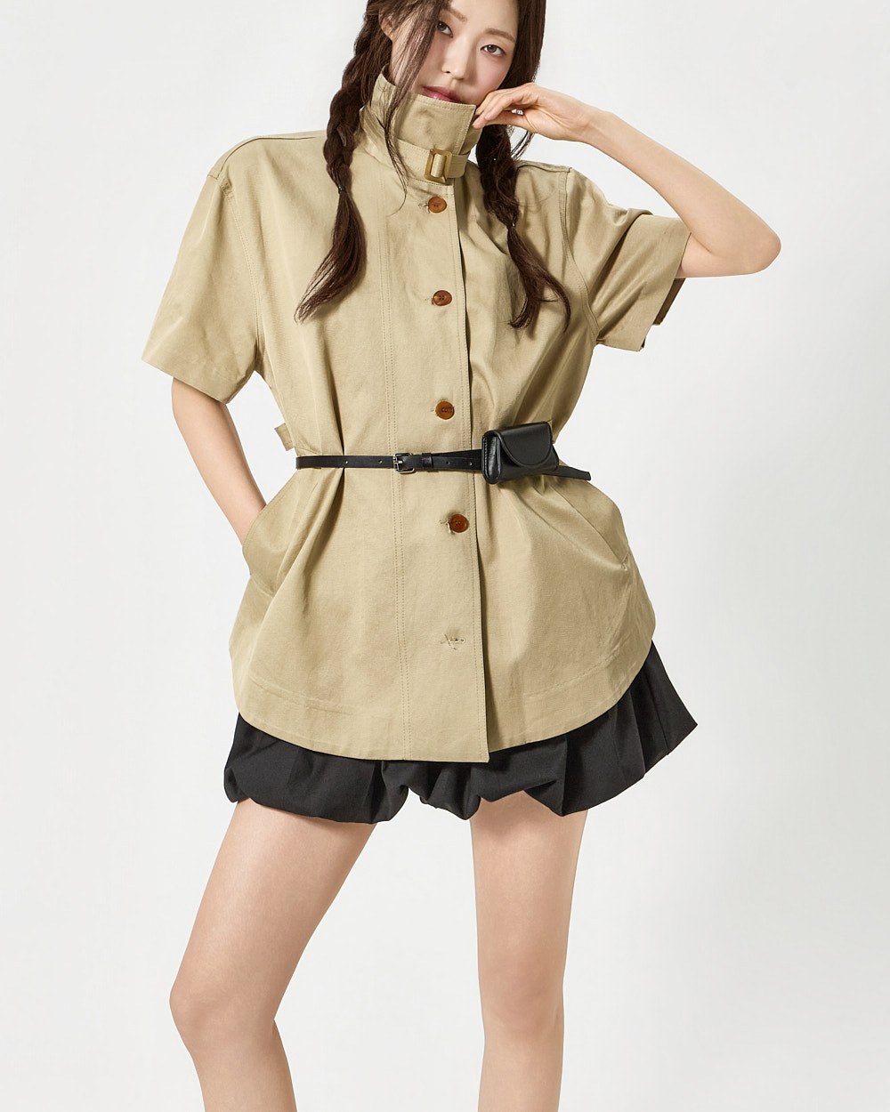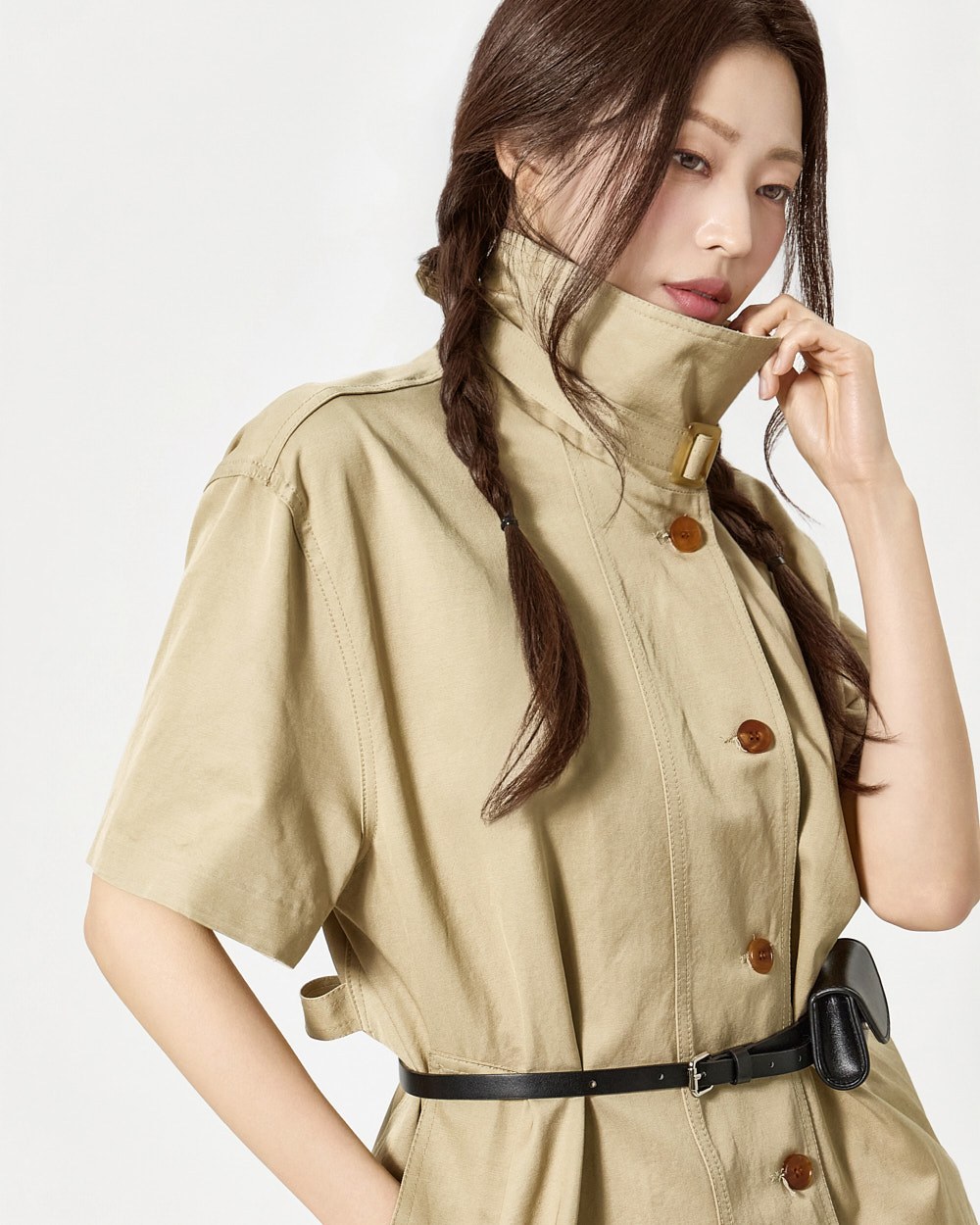 하이넥 디자인에 넥 벨트 세트로