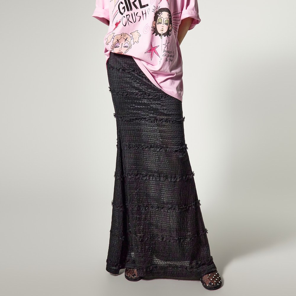 페미닌한 무드의 셔링 머메이드 스커트입니다.