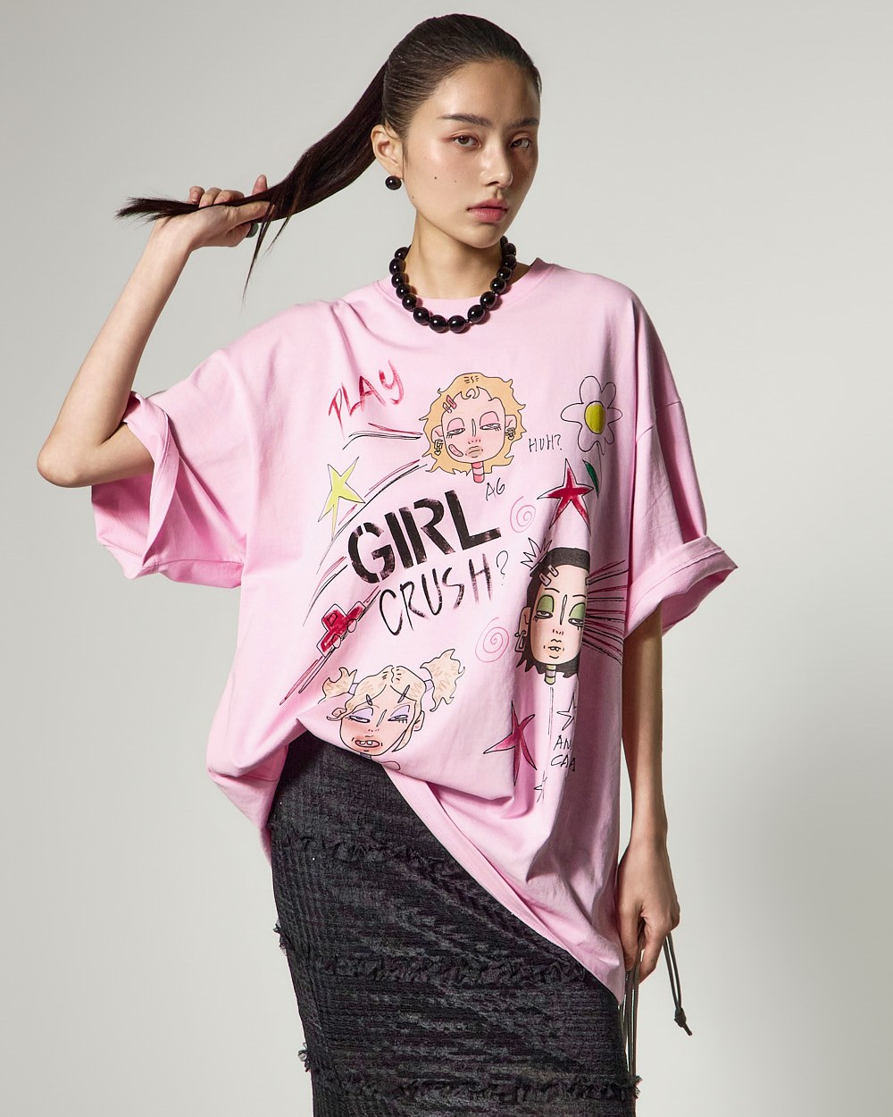 171CM 모델 ONE 사이즈, BLACK 컬러 착용하였습니다.