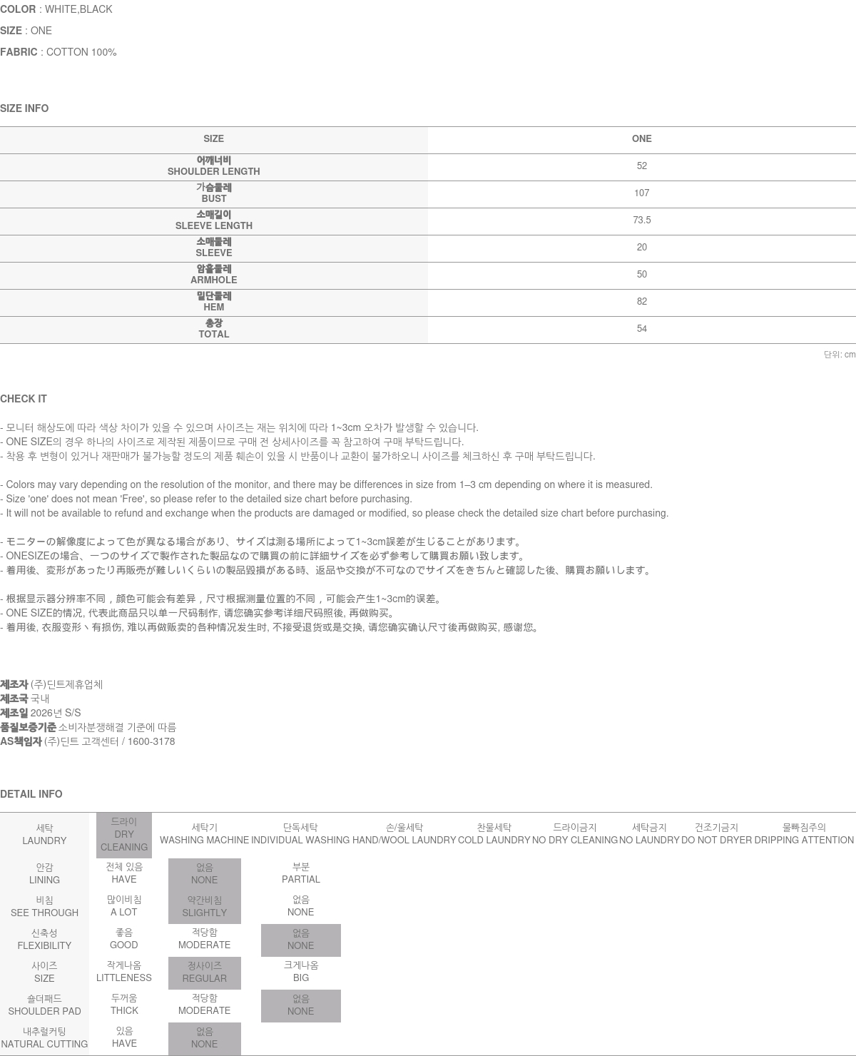 171CM 모델 ONE 사이즈, WHITE 컬러 착용하였습니다.