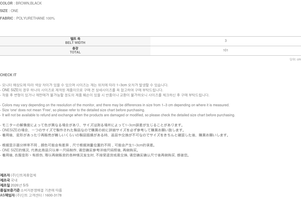 • 액세서리 및 잡화는 장시간 보관 및 착용 시 변색이나 변형이 될 수 있습니다.
