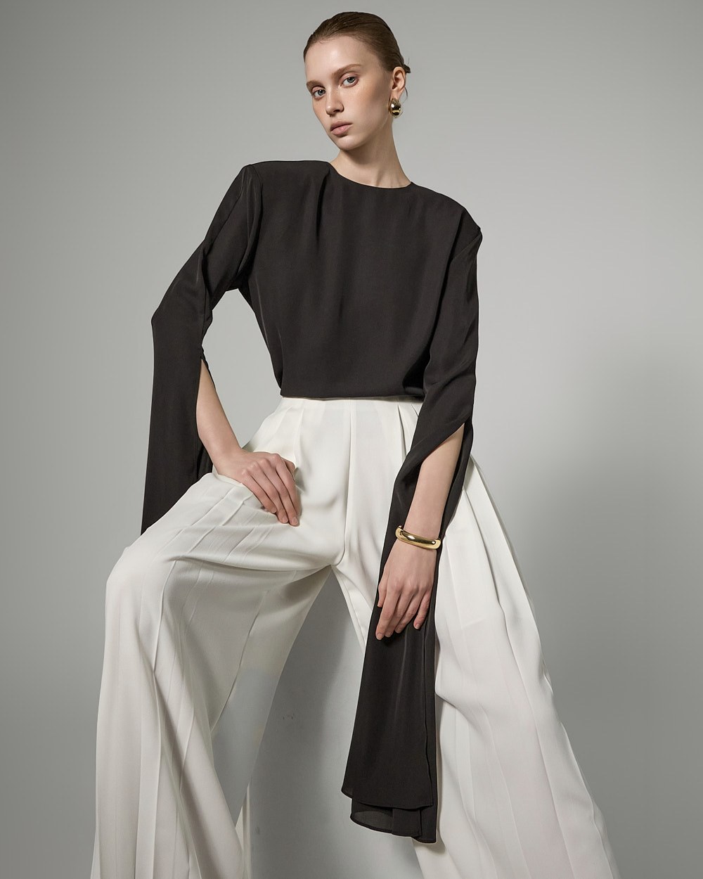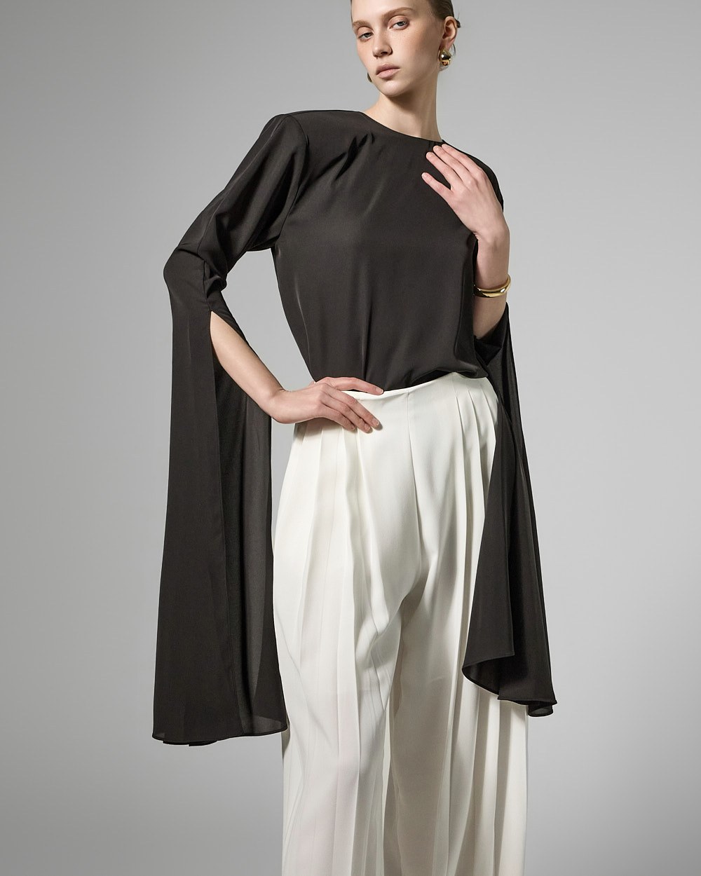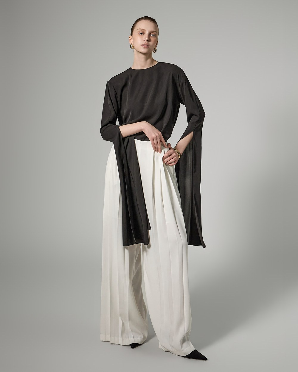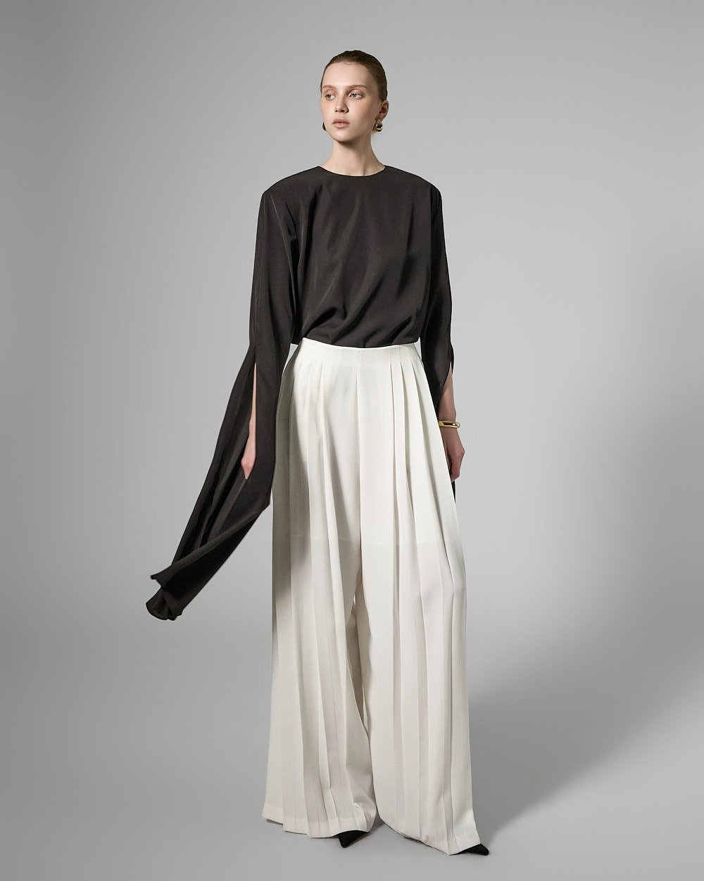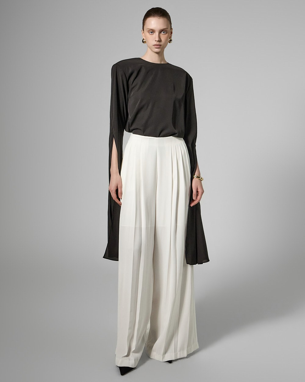 와이드핏의 플리츠 실루엣으로