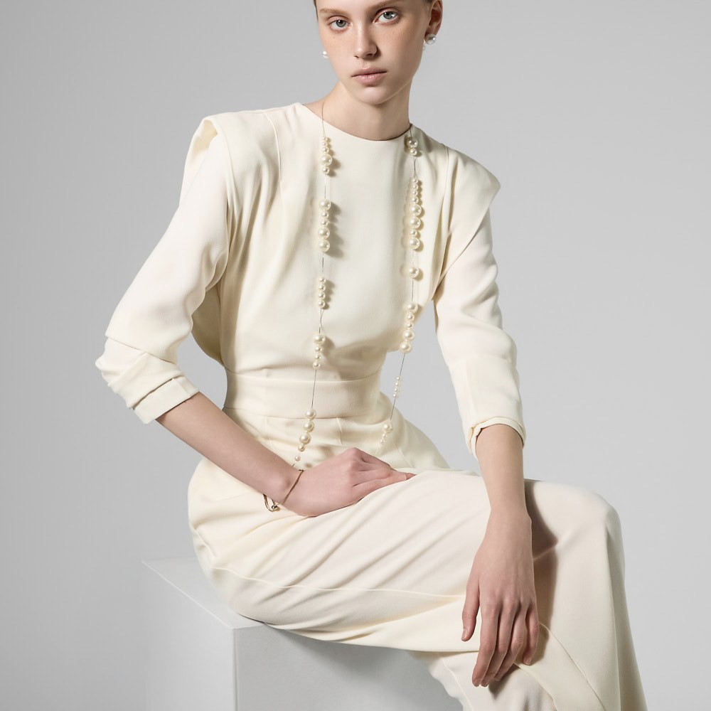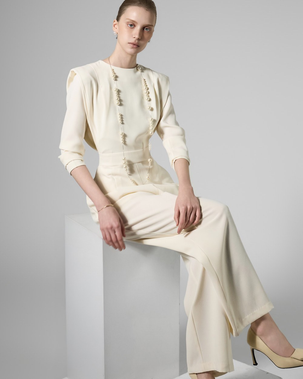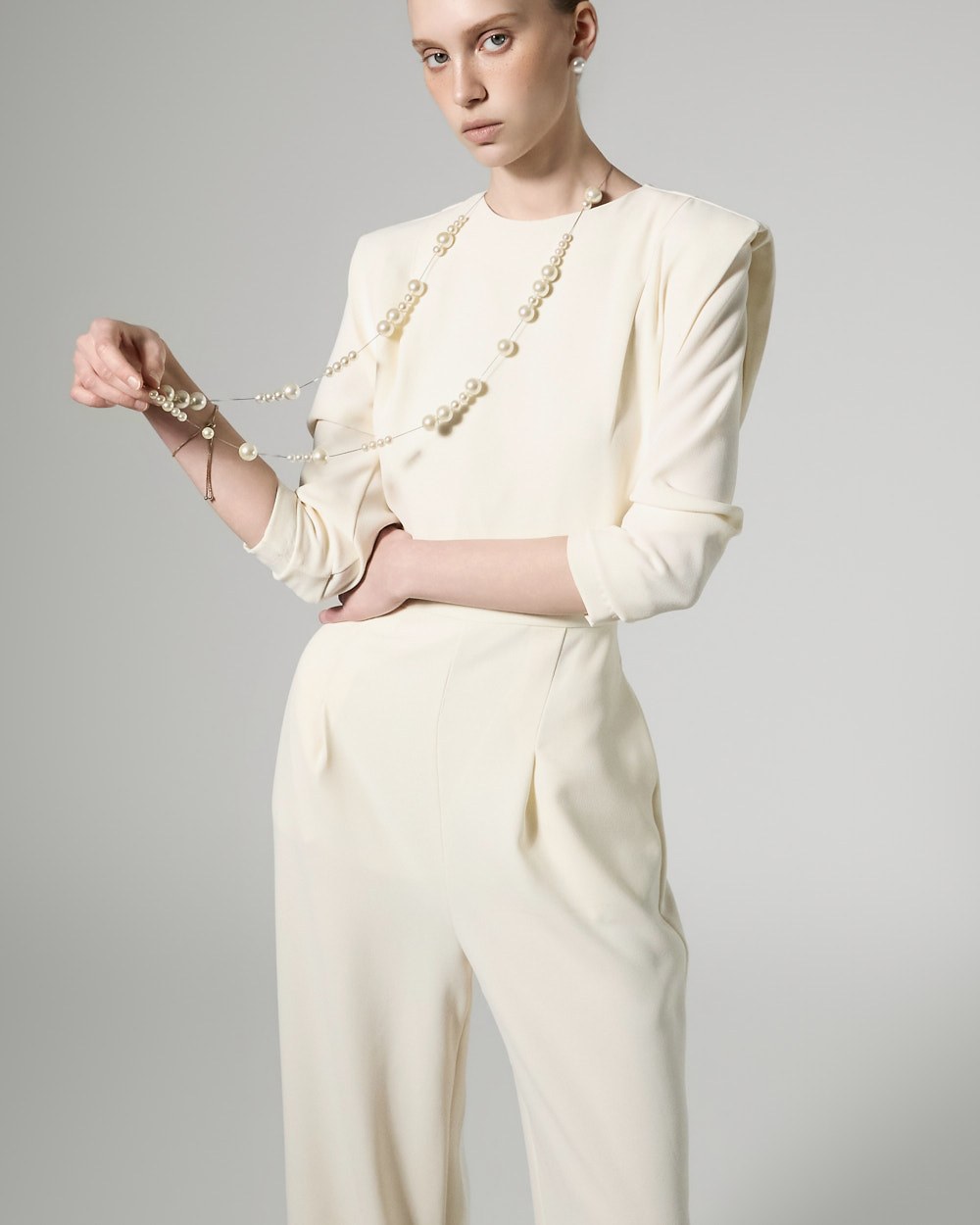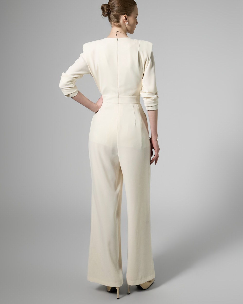 모던한 무드의 패드 숄더 점프수트입니다.