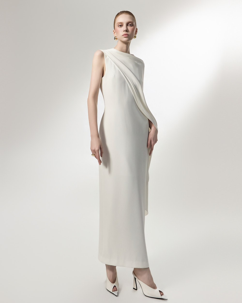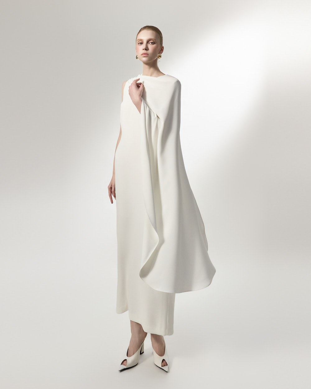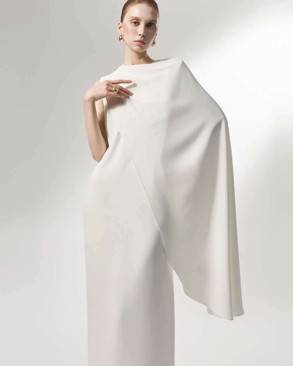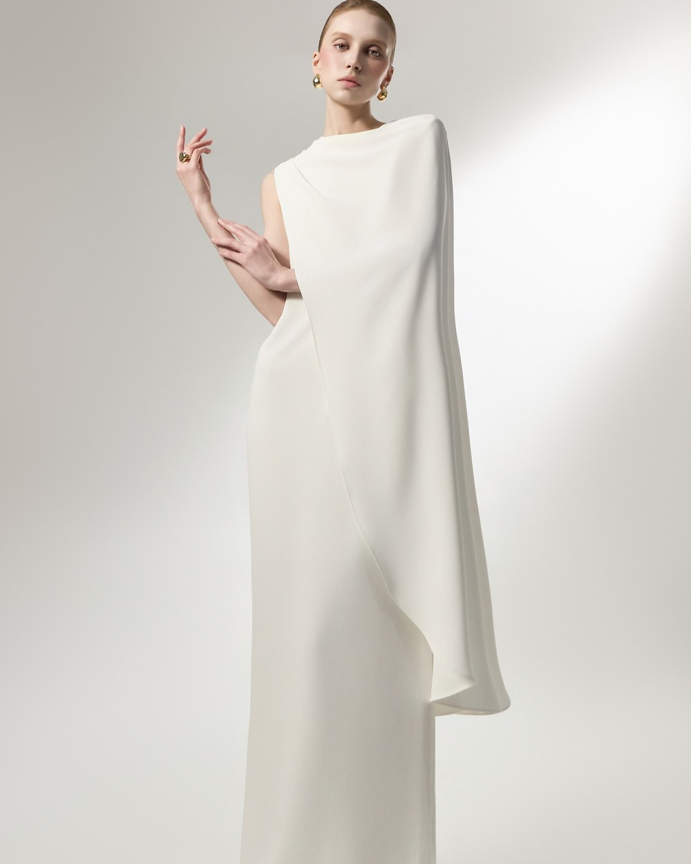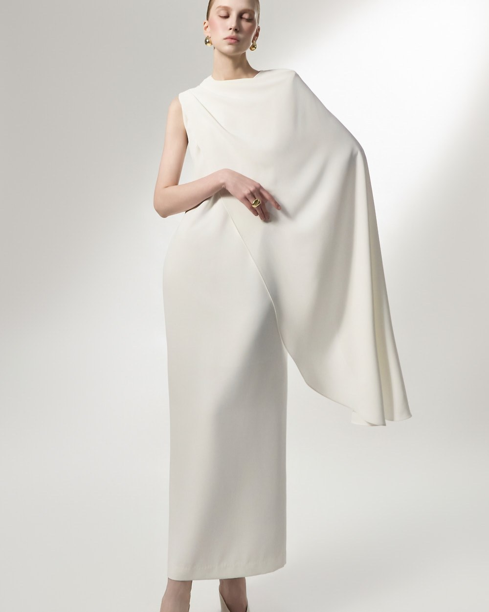 우아한 무드의 드레이프 케이프 맥시 원피스입니다.