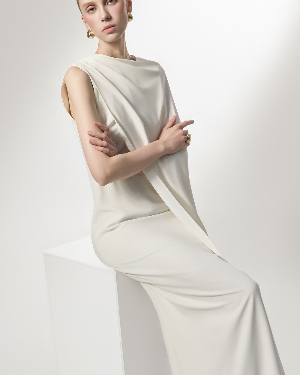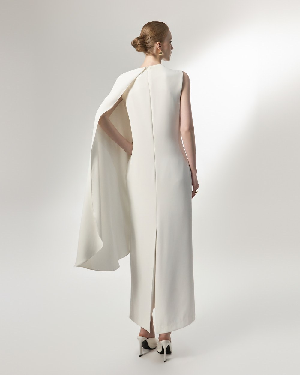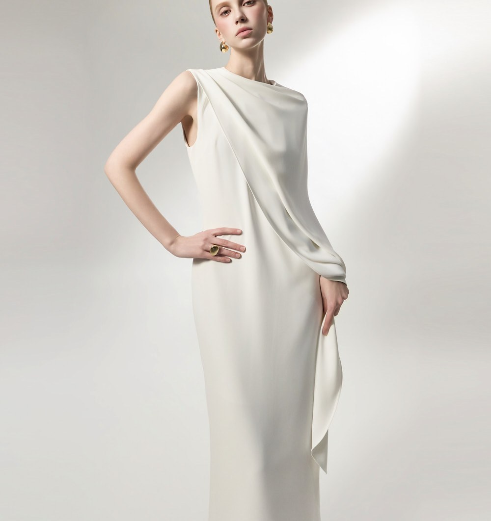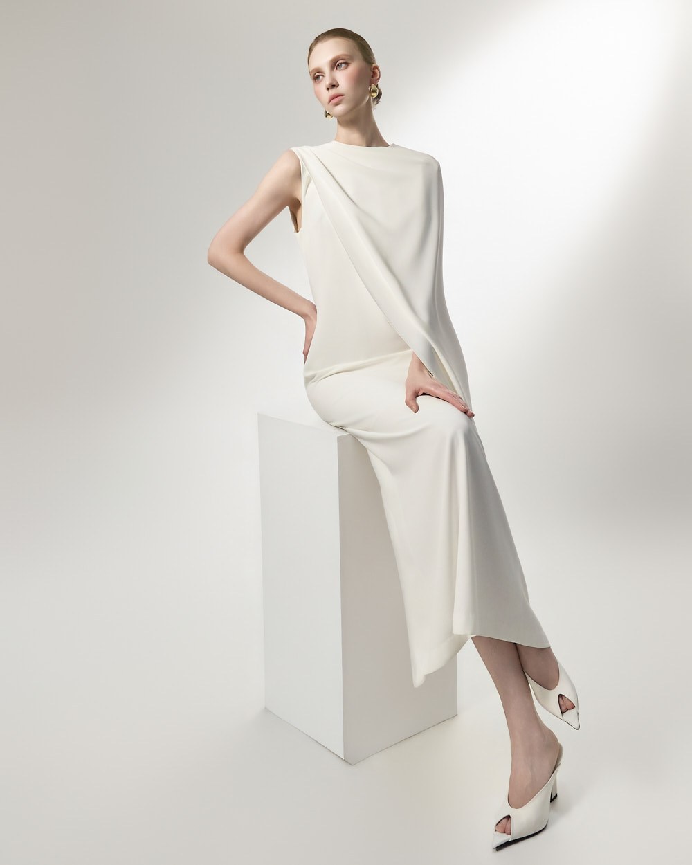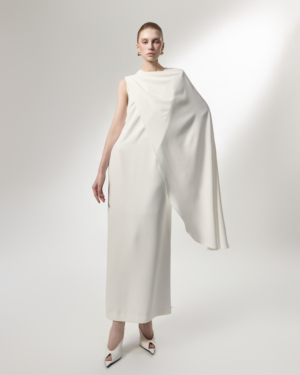 우아한 무드의 드레이프 케이프 맥시 원피스입니다.