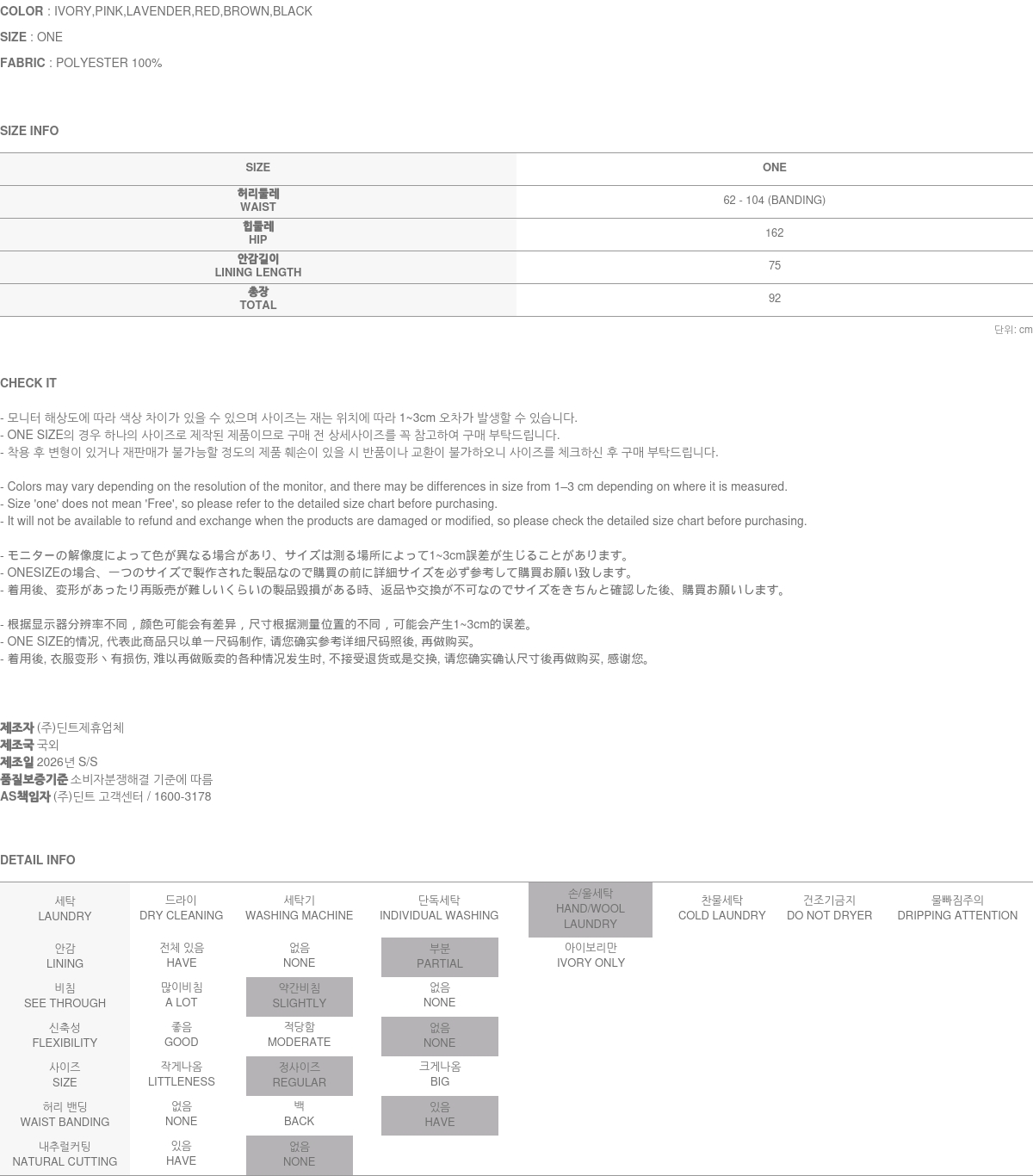 전체 허리 밴딩으로 편안한 착용이 가능하며,
