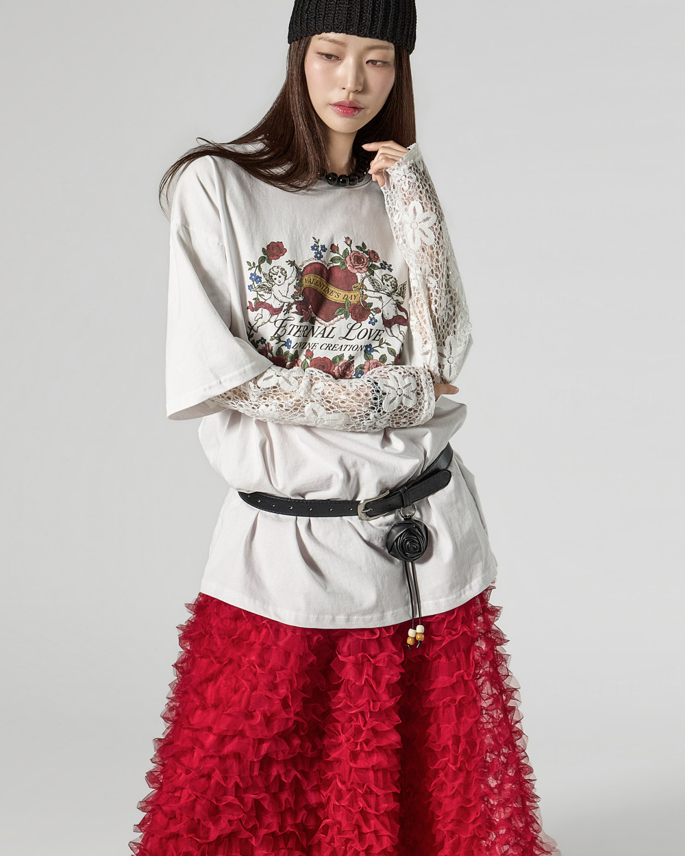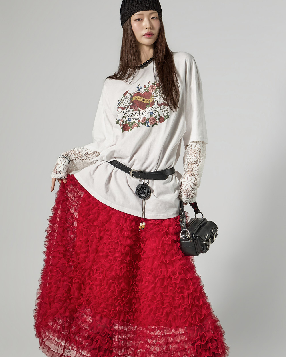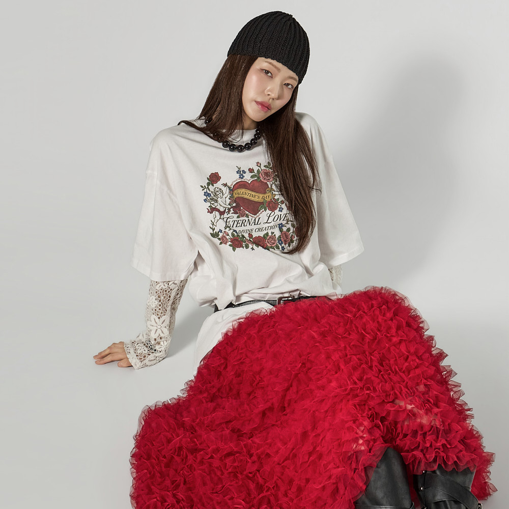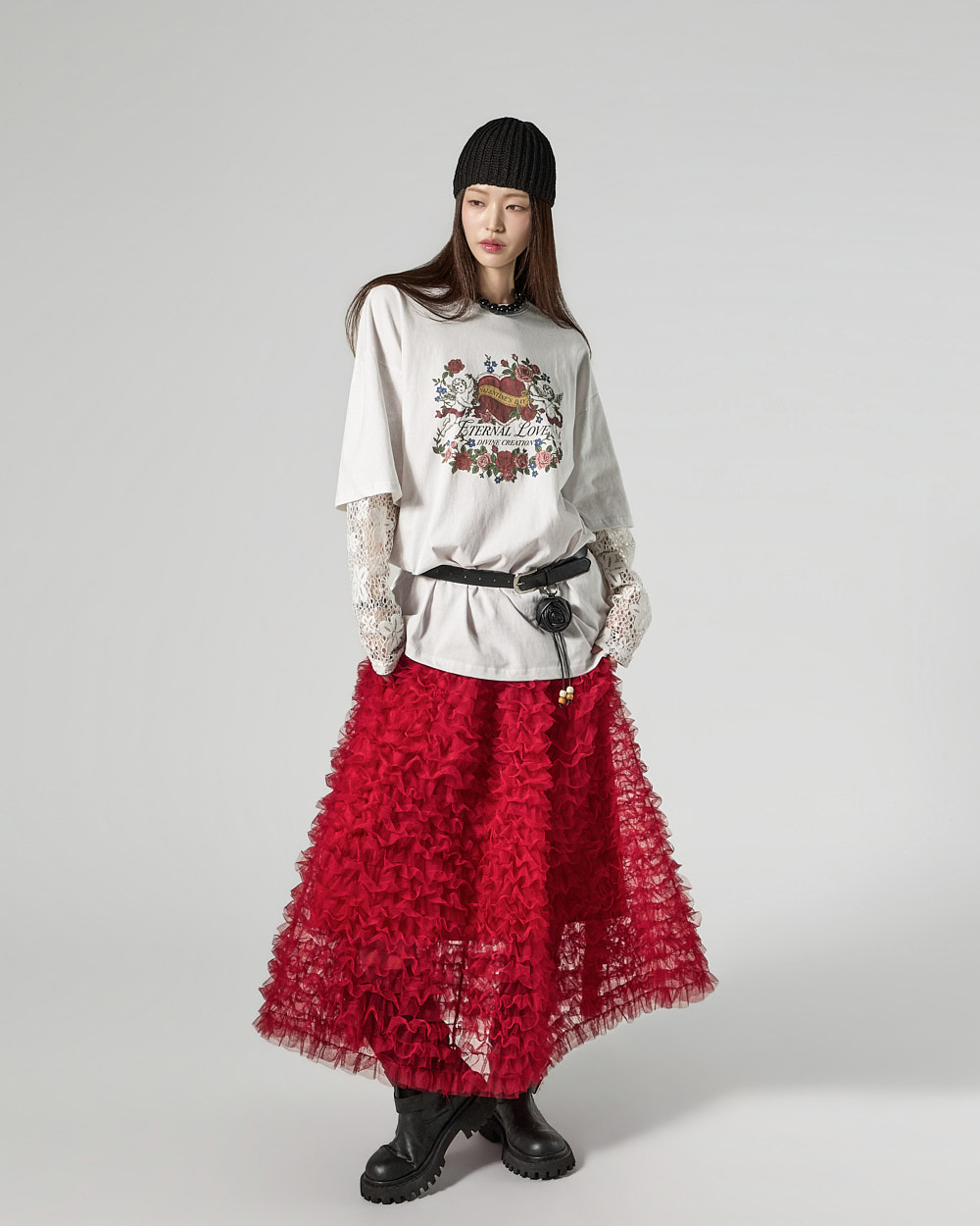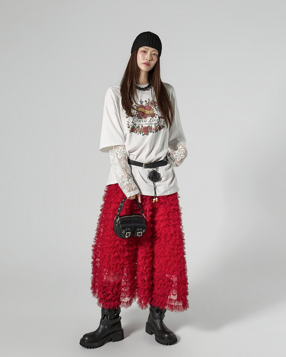 유니크하면서 러블리한 프릴 티어드 스커트입니다.