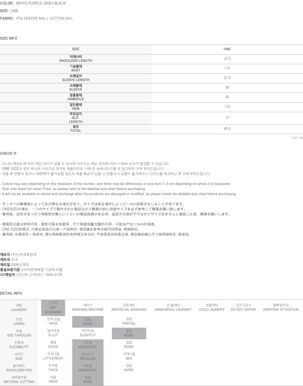 정확한 사이즈는 반드시 구매 전 상세 사이즈를 확인해 주시기 바랍니다.