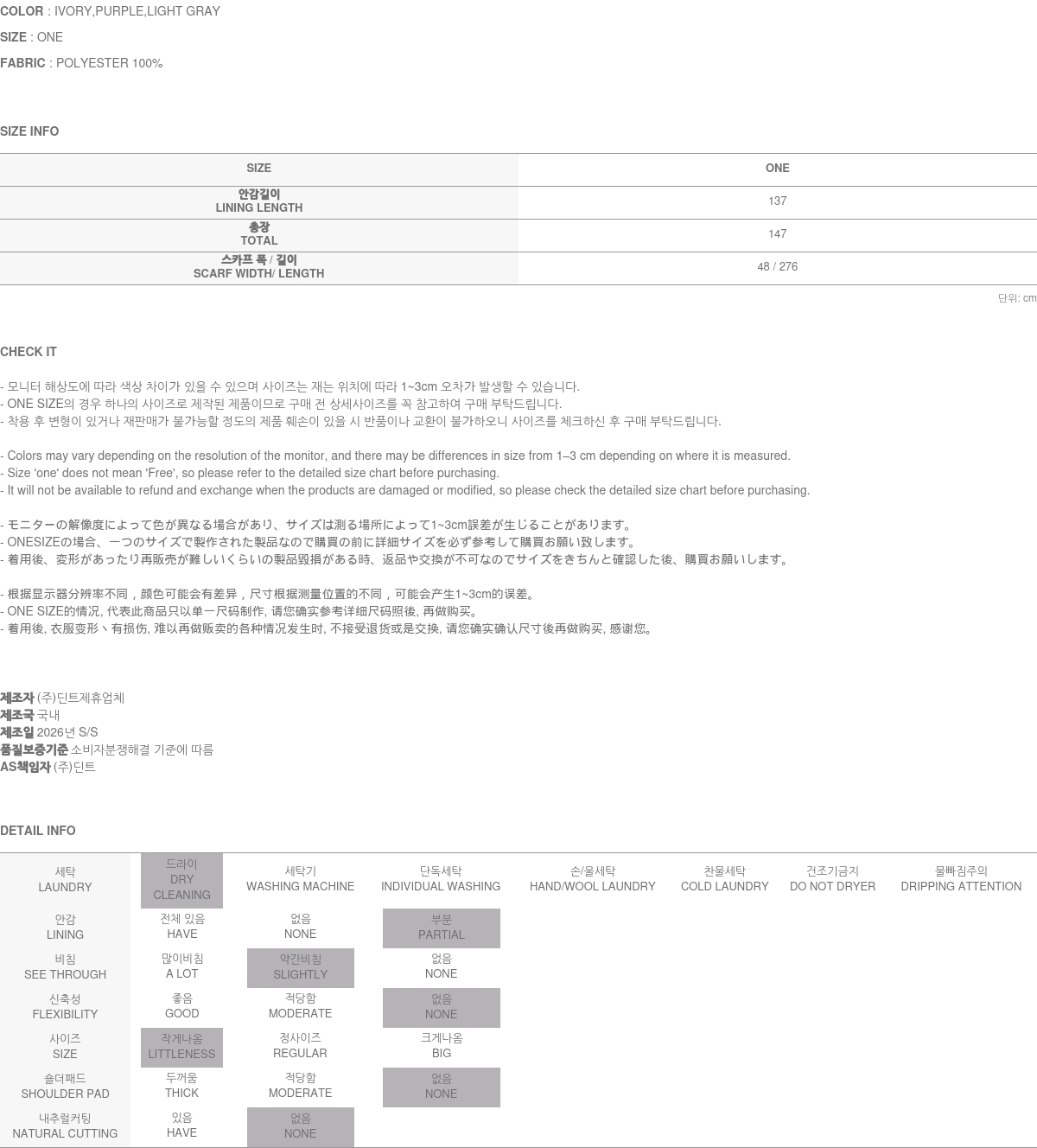 정확한 사이즈는 반드시 구매 전 상세 사이즈를 확인해 주시기 바랍니다.