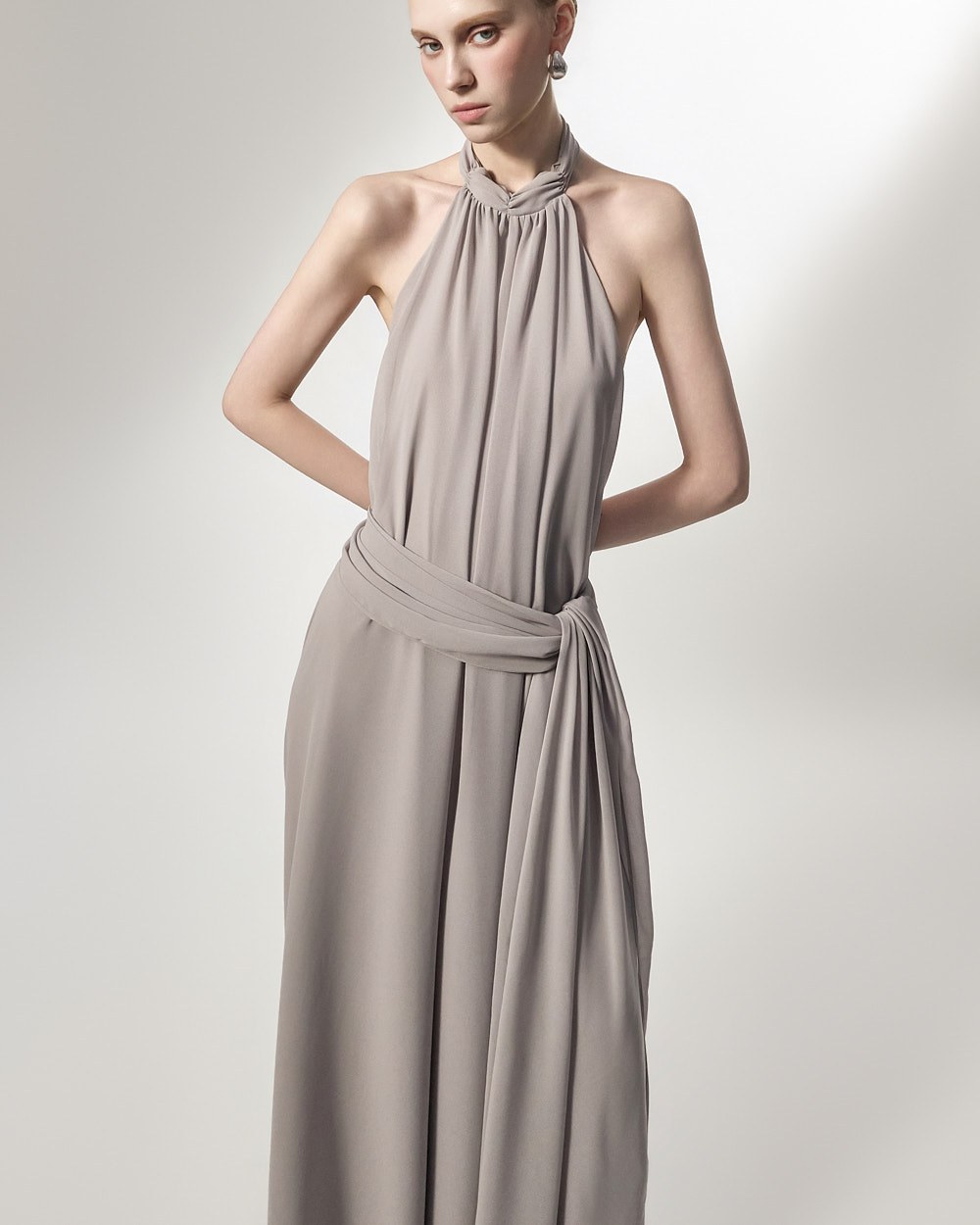 홀터넥 디자인으로 여성스러운 넥라인을 강조해주며,
