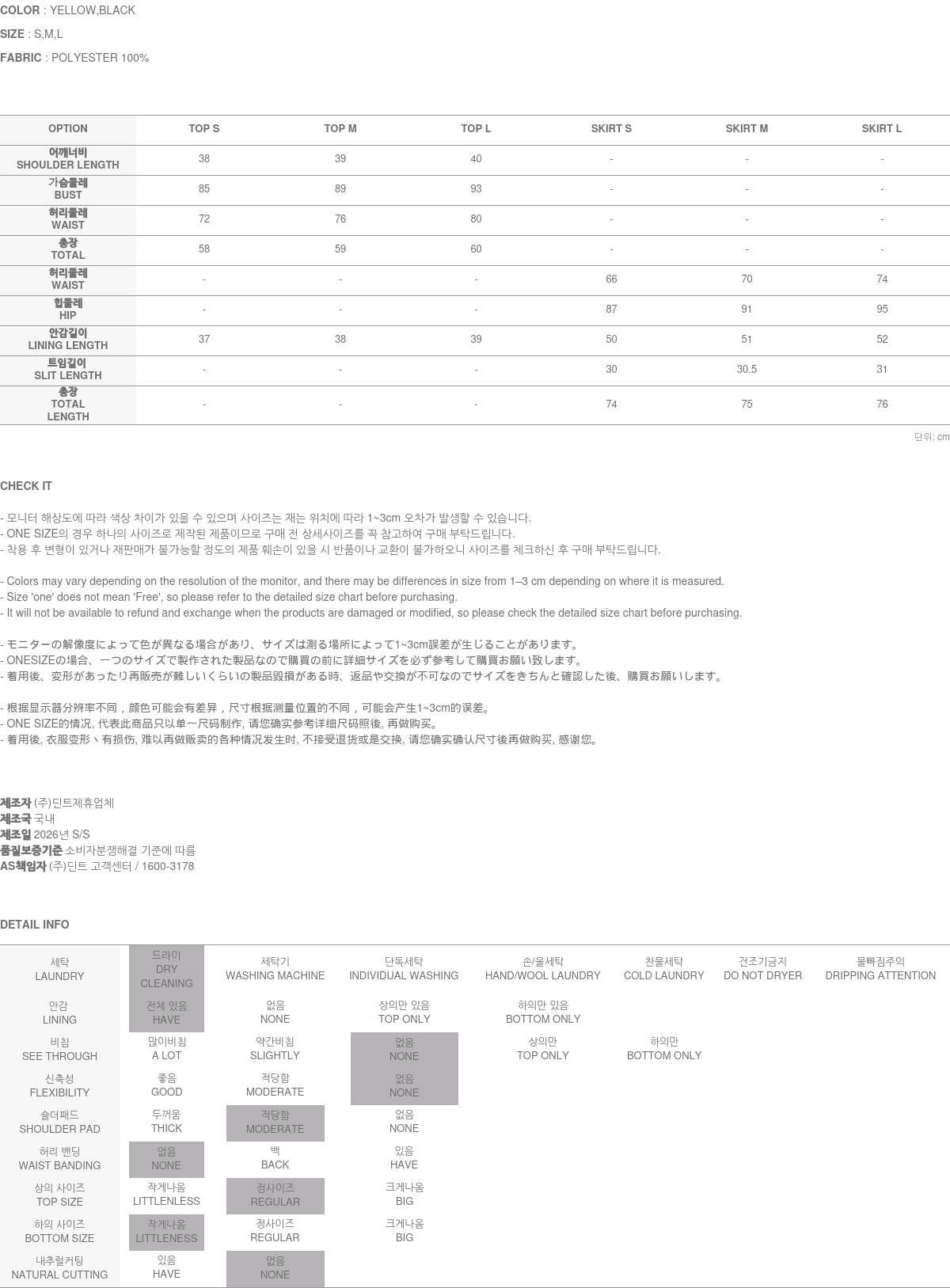 174CM 모델 S 사이즈, YELLOW 컬러 착용하였습니다.
