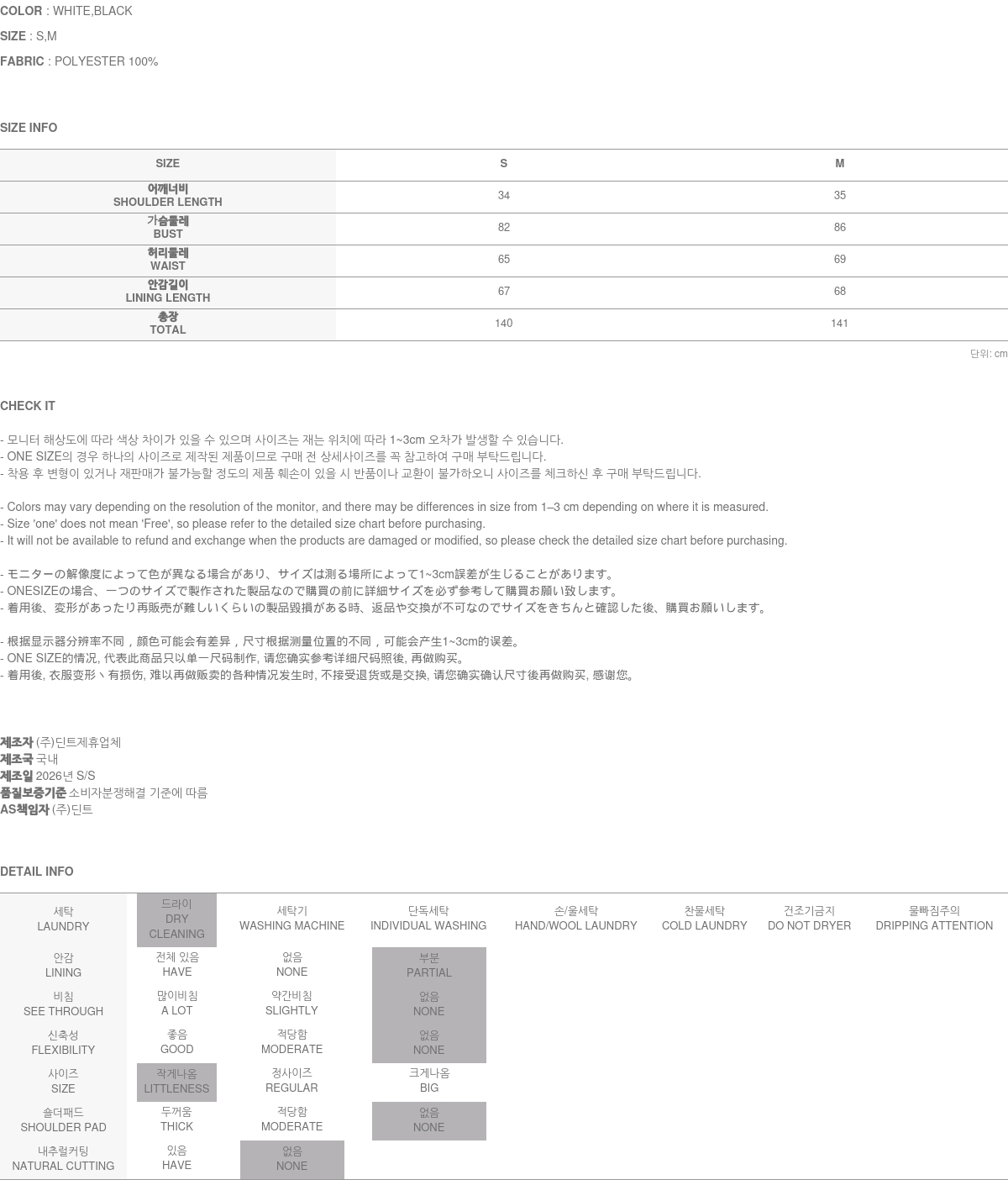 정확한 사이즈는 반드시 구매 전 상세 사이즈를 확인해 주시기 바랍니다.