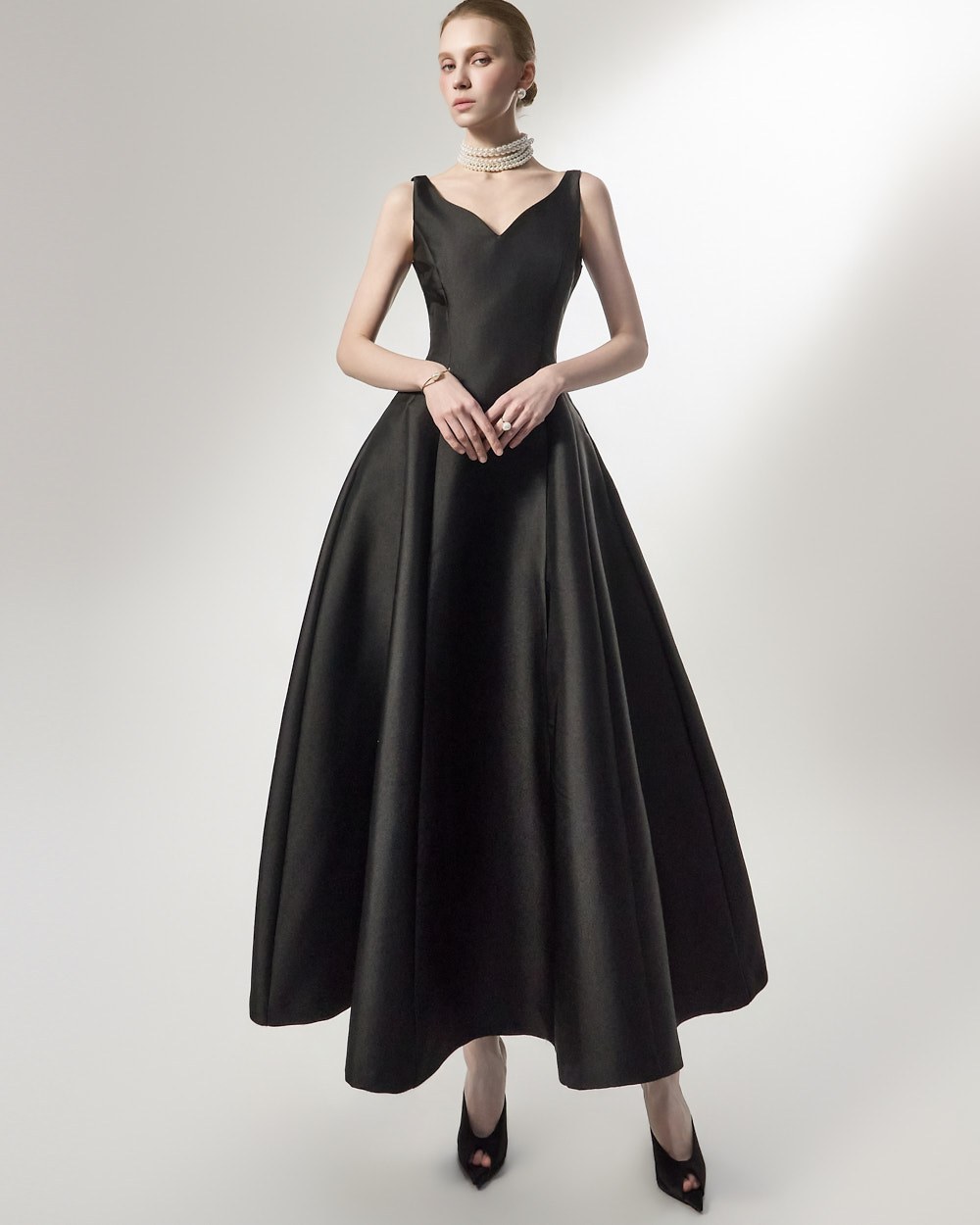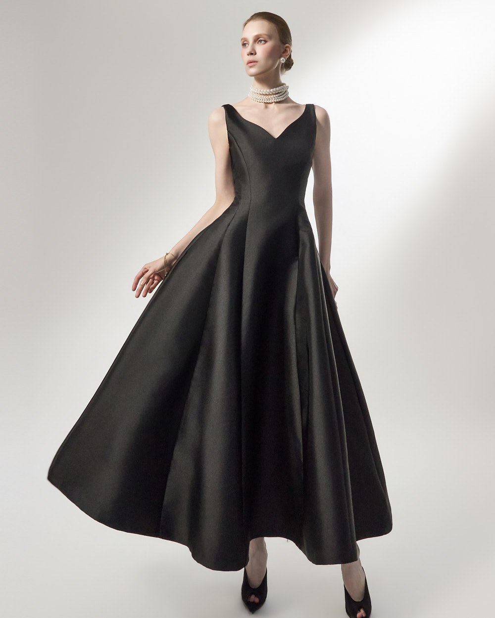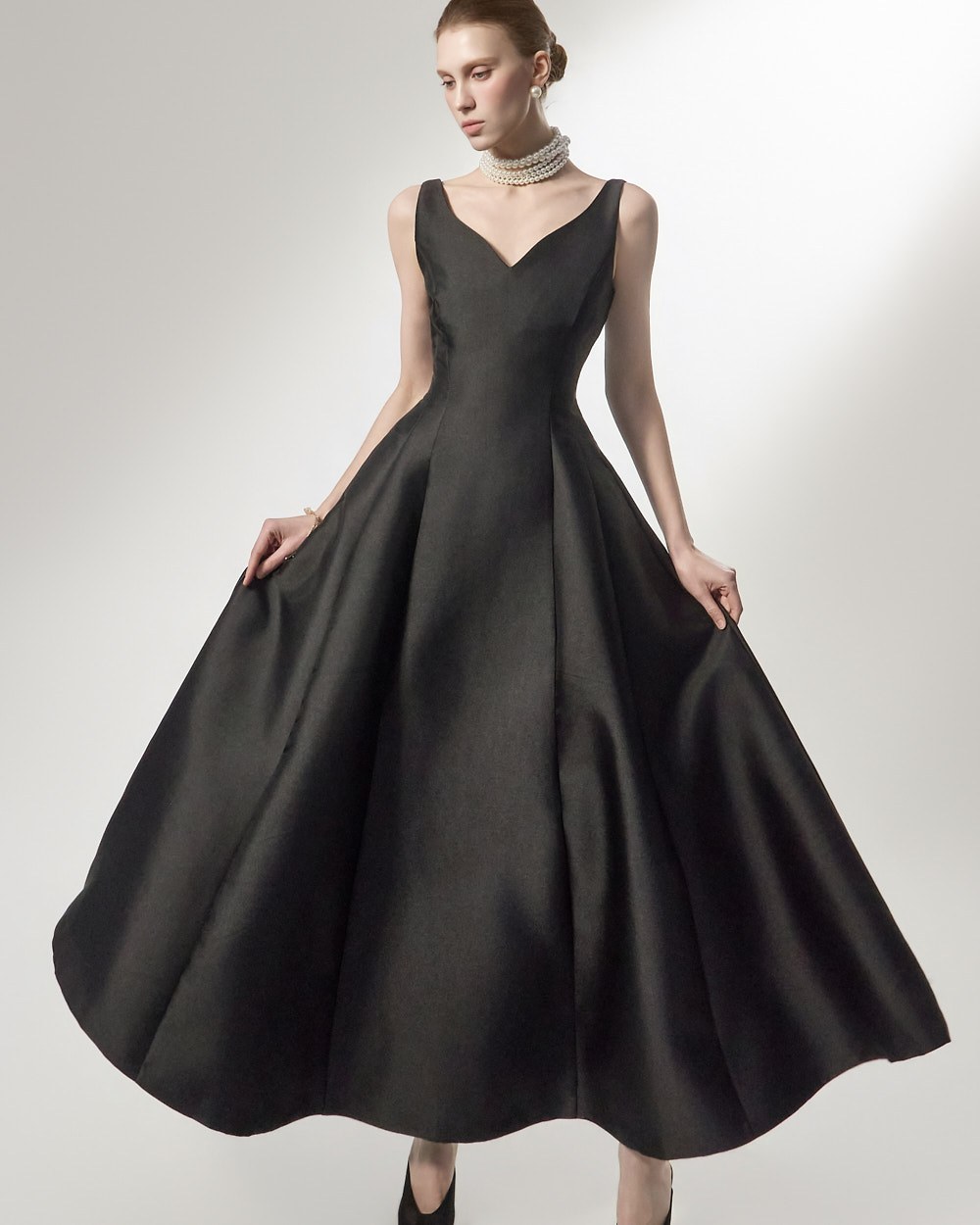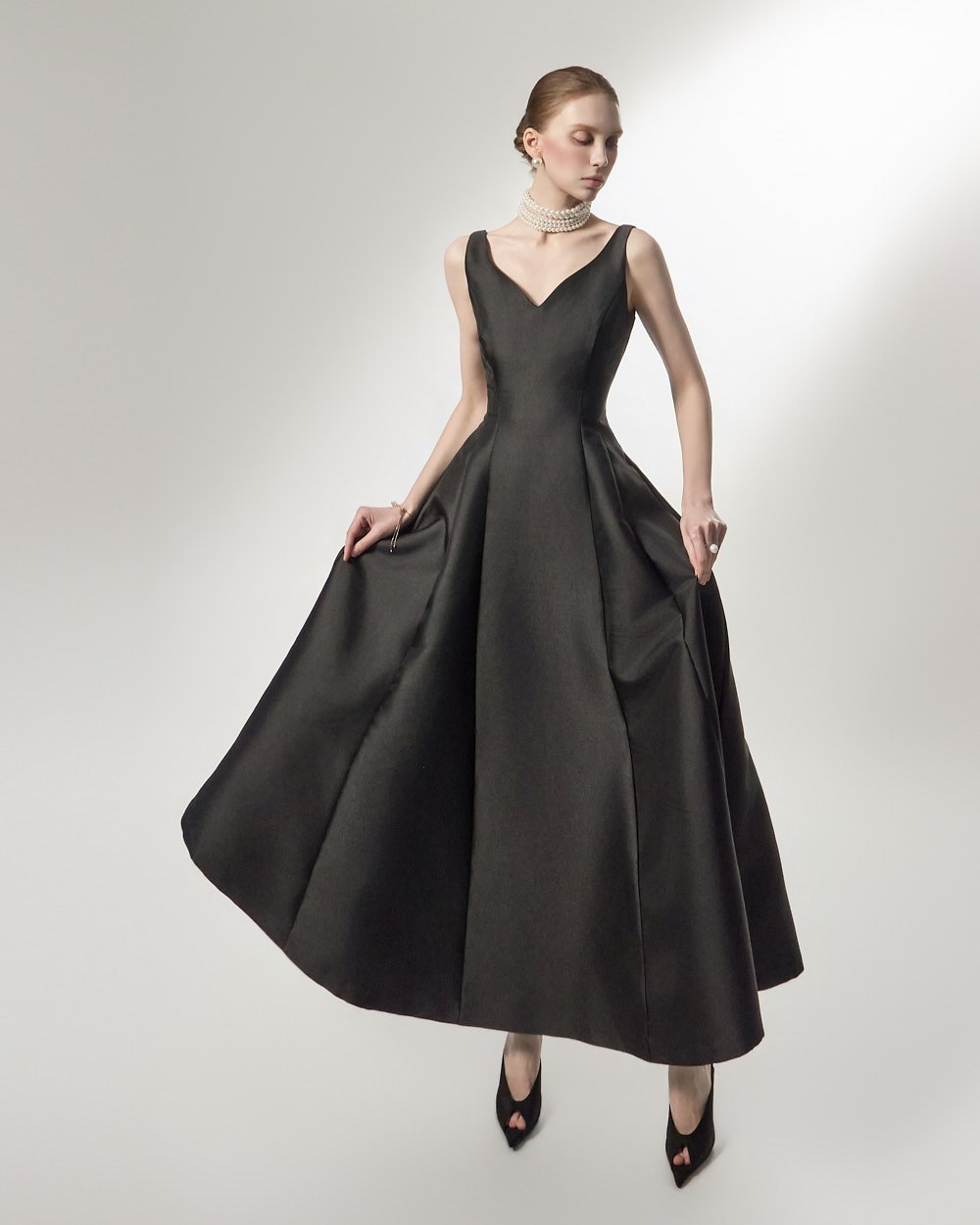 맥시한 기장감과 풍성한 스커트 라인이 더해져