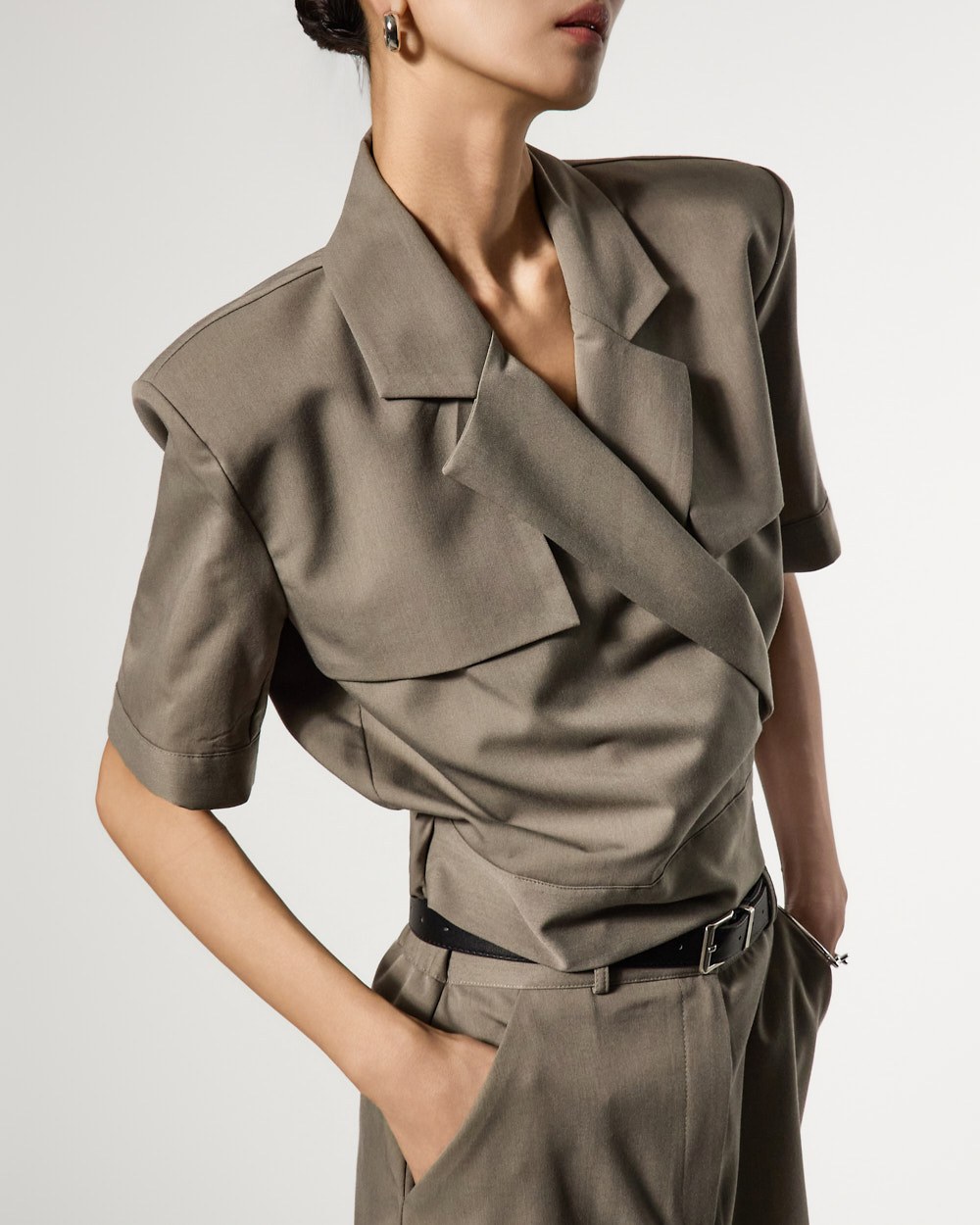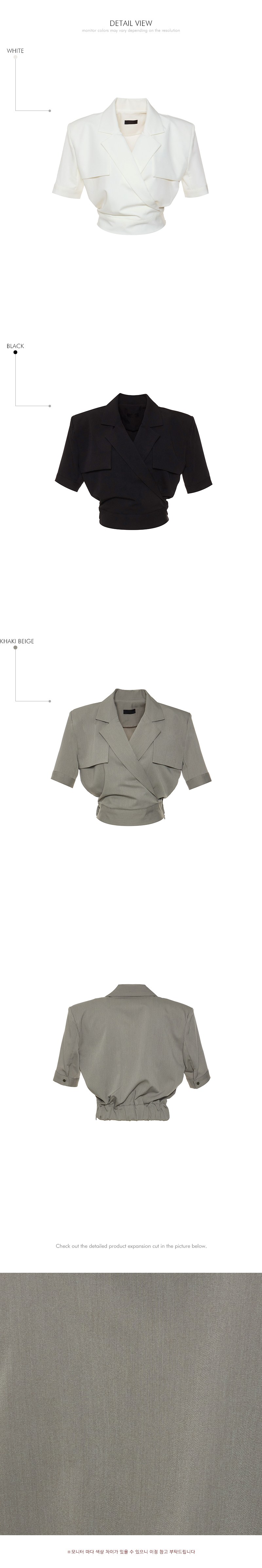모던한 무드의 랩 자켓 크롭 블라우스입니다.