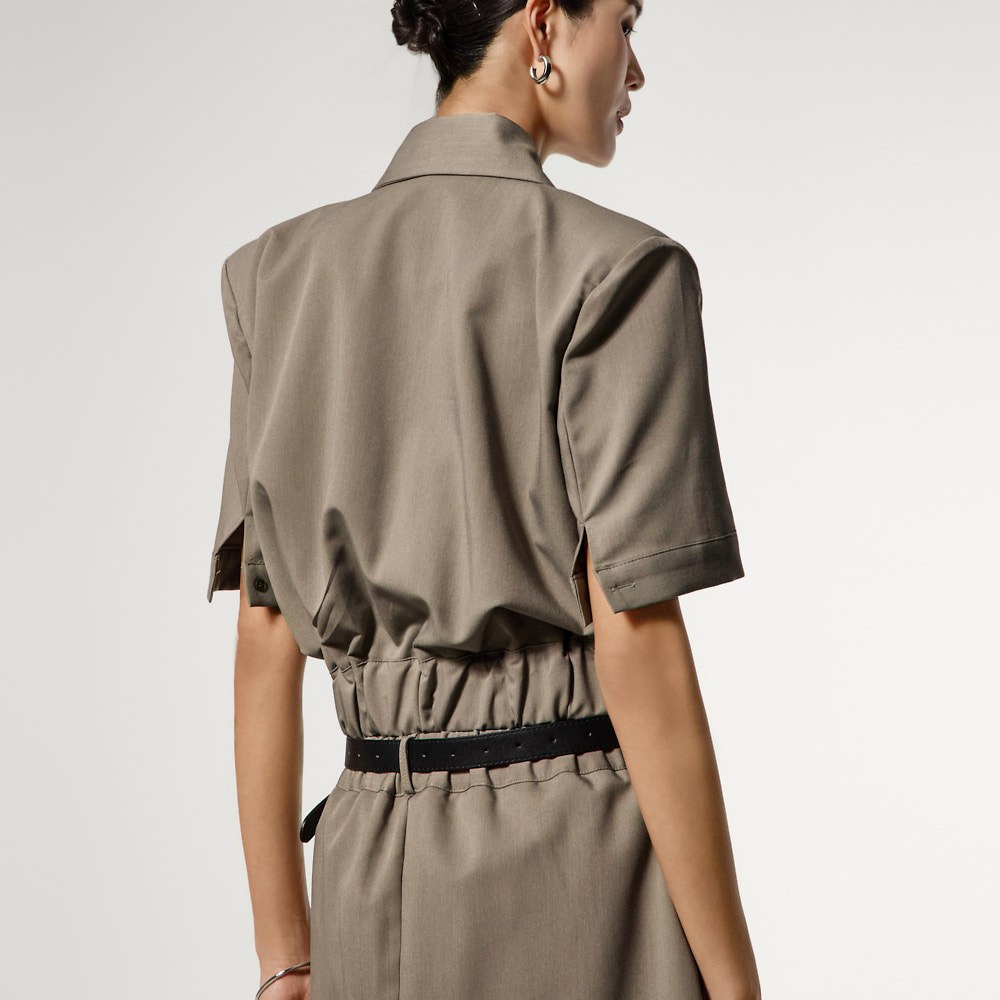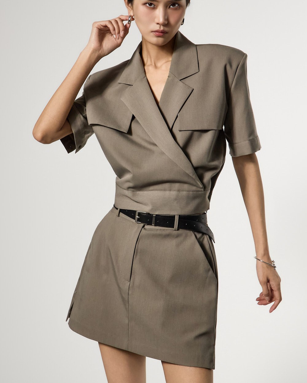 반팔 테일러드 스타일로 깔끔한 무드를 더했으며,