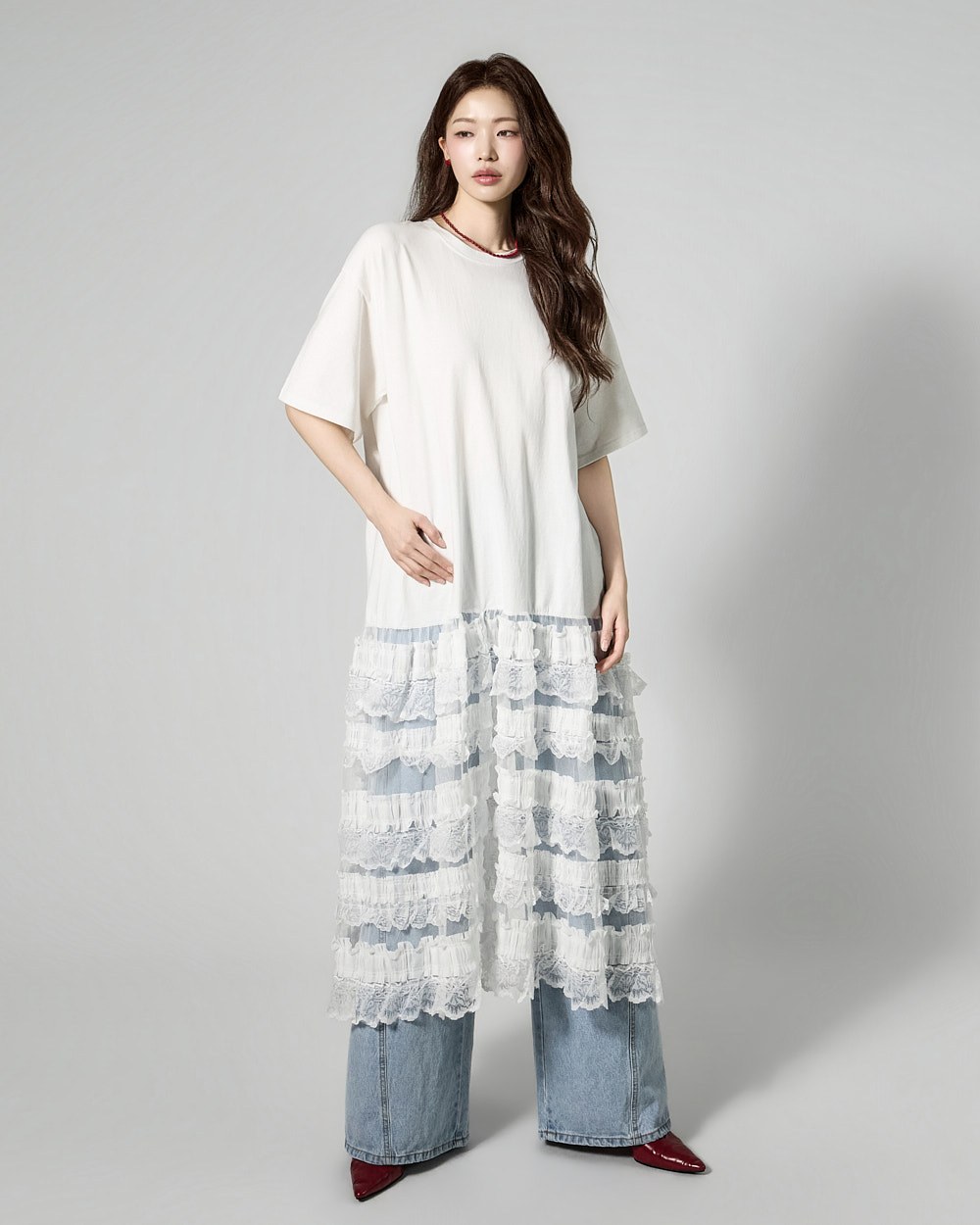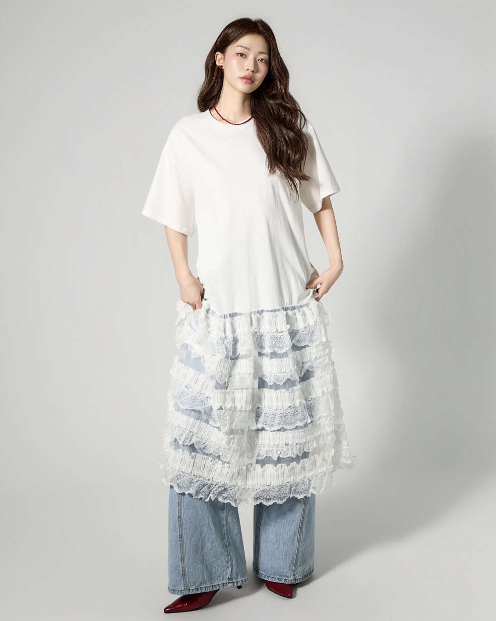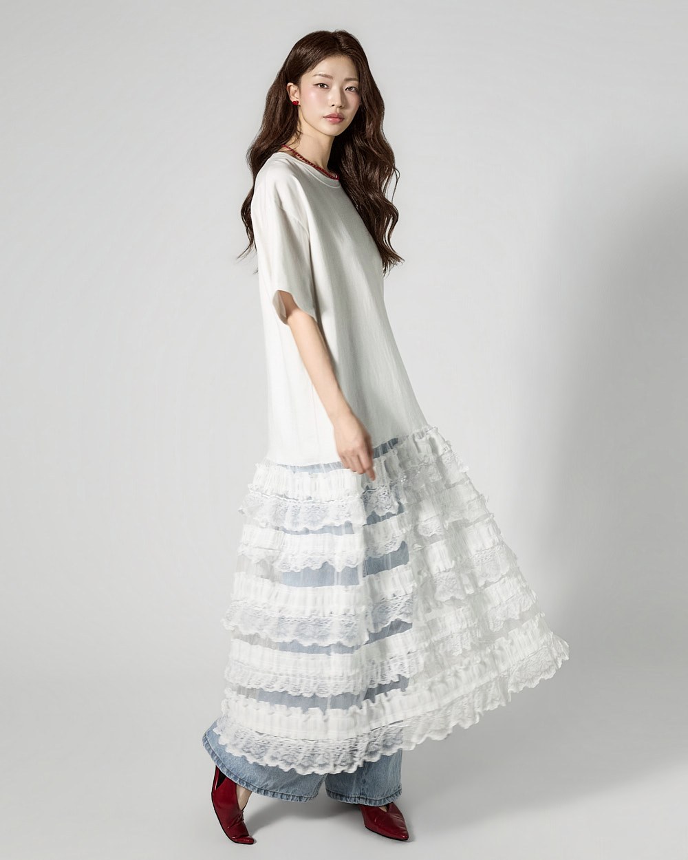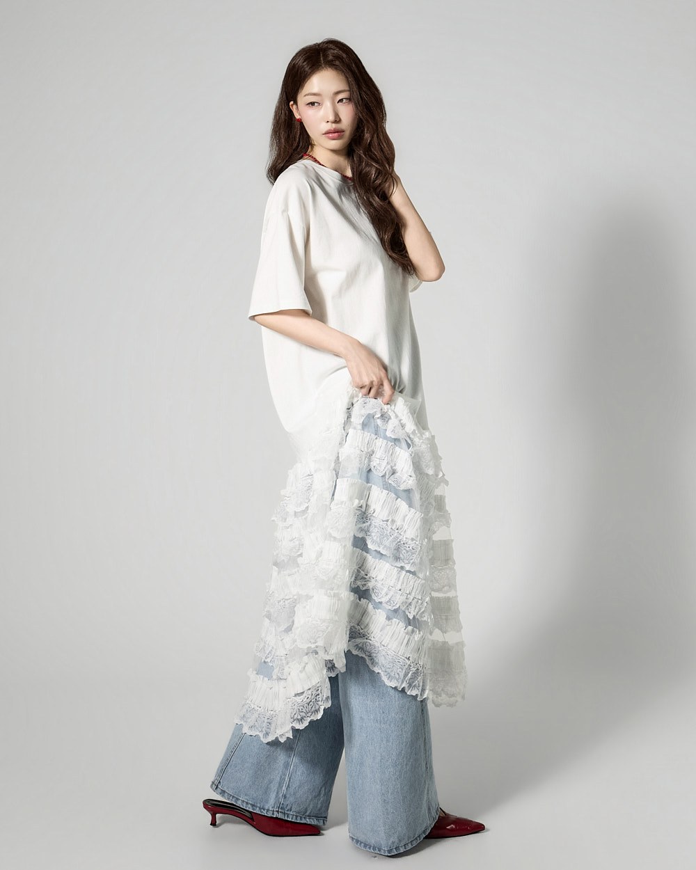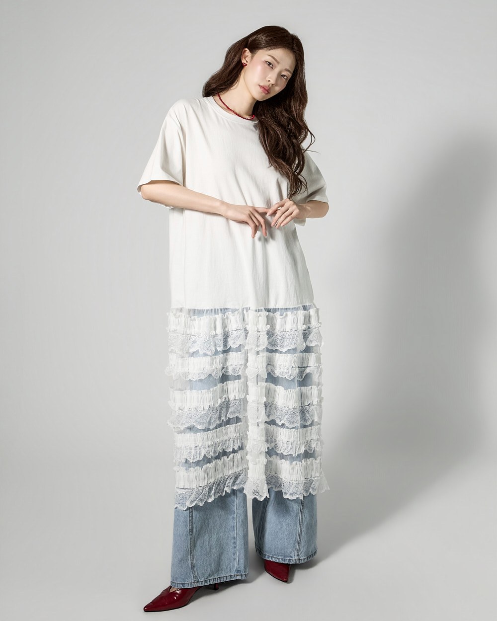 밑단에 더해진 레이스 디테일이 포인트가 되어